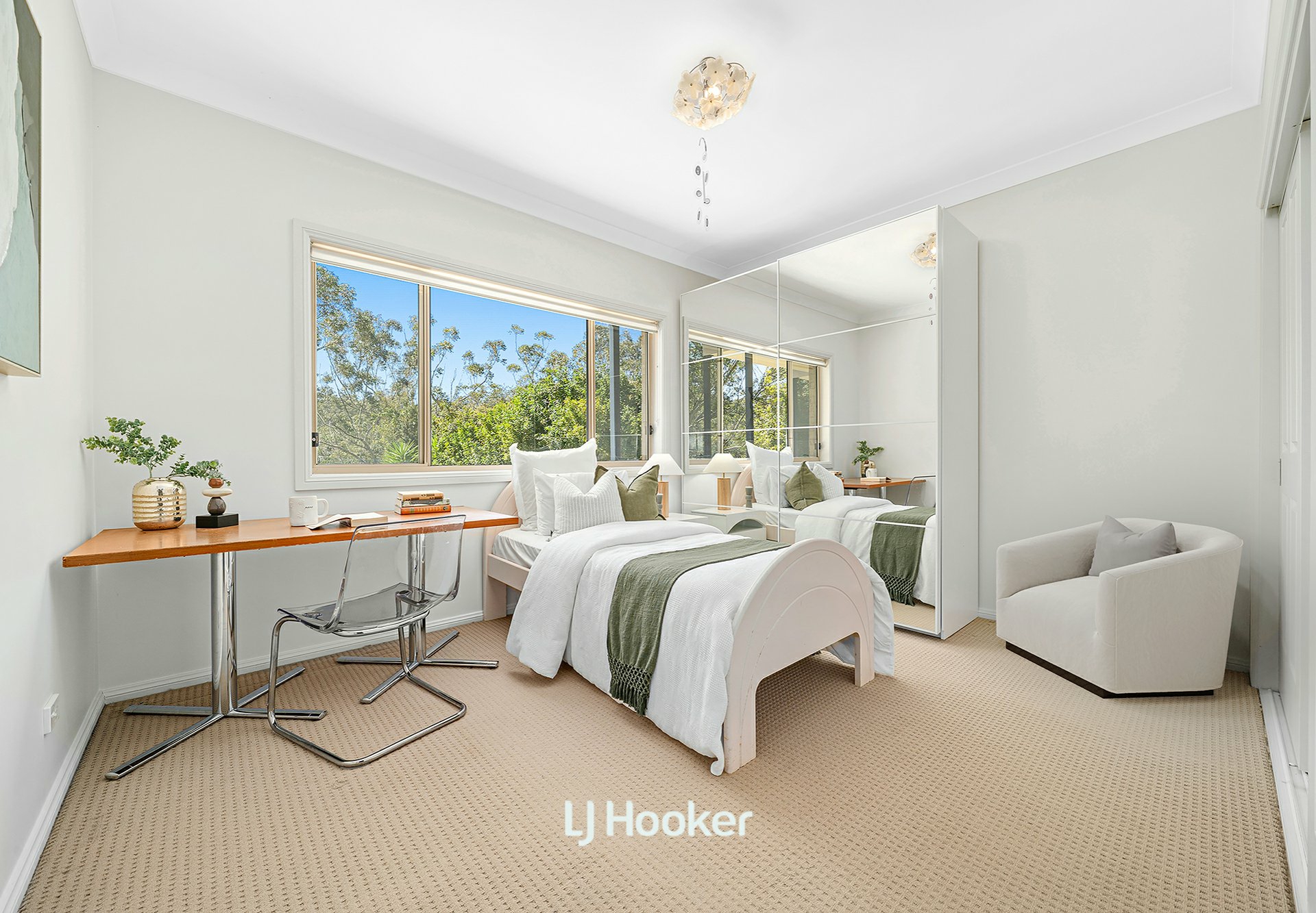 The main level brings together a choice of living and dining spaces, with a formal lounge and dining area, a welcoming family room and casual meals area. At the heart of the home, the generous kitchen provides abundant storage, expansive benchtops, and a breakfast bar, all opening onto an elevated terrace that takes in sweeping leafy views, perfect for entertaining or simply enjoying the serenity.