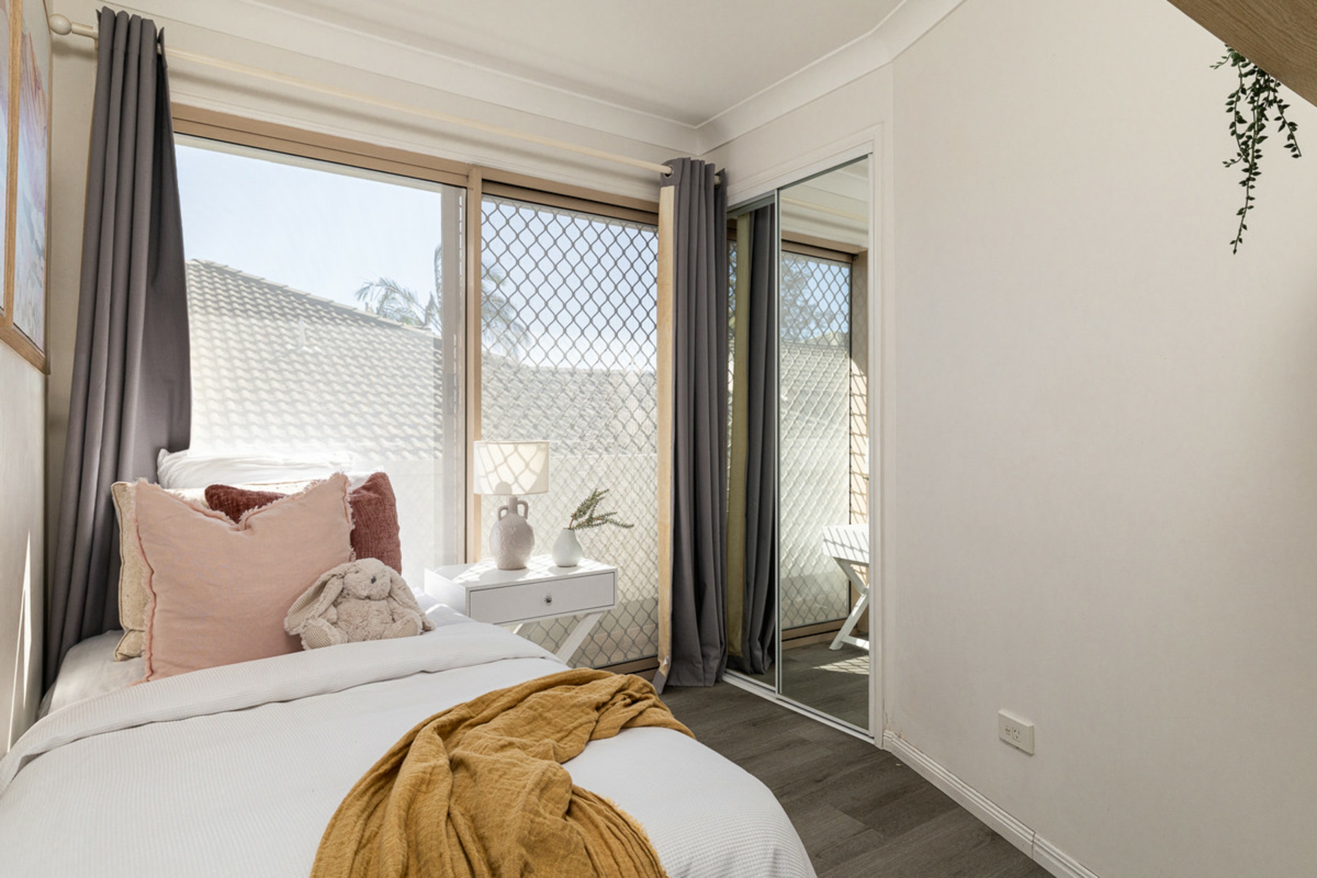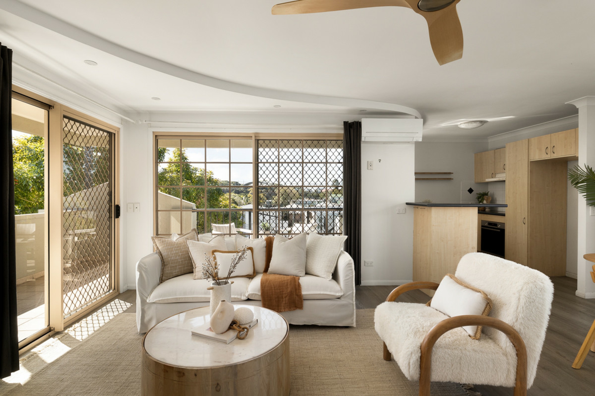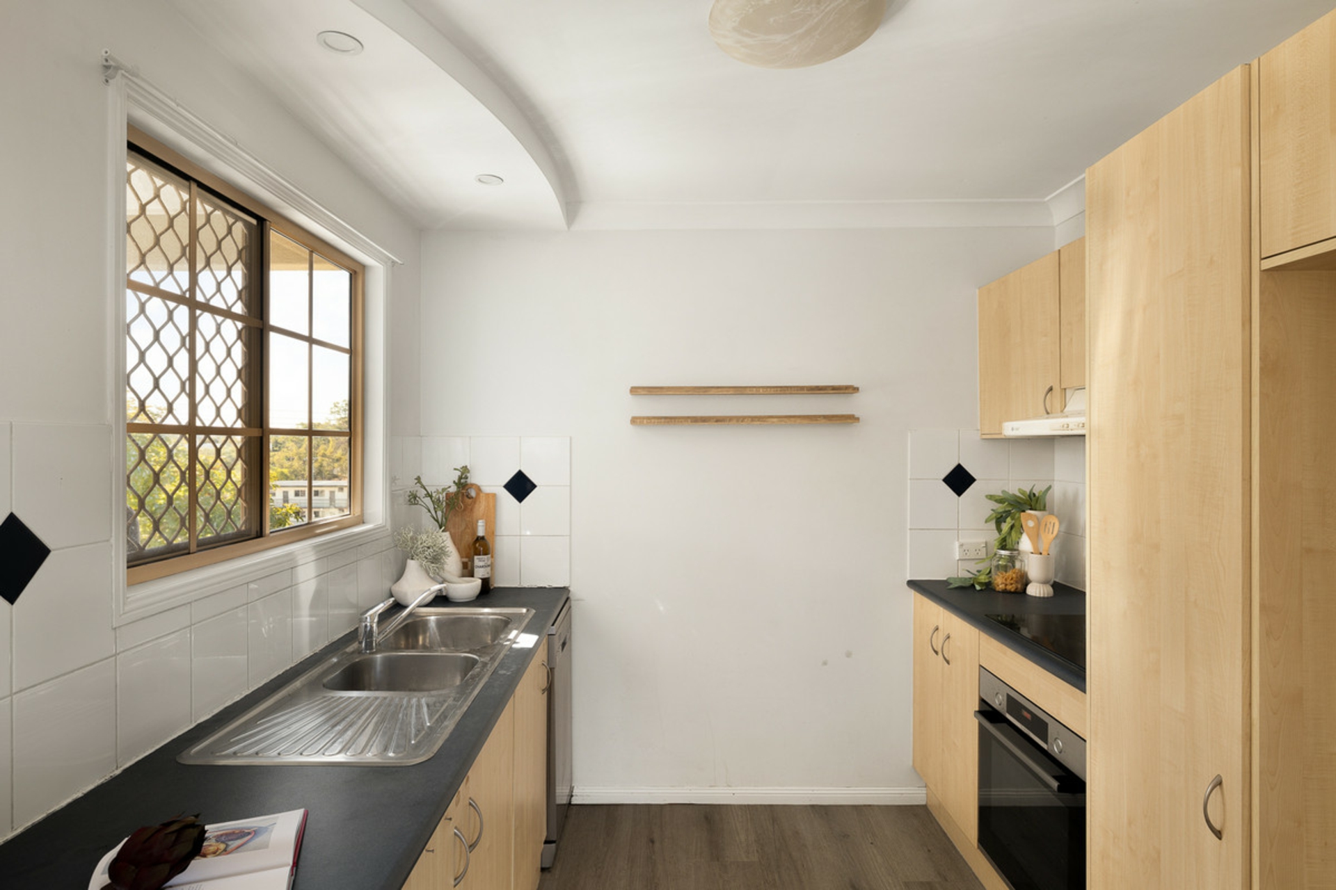 Orientation is perfect for year-round entertaining. The connectivity of the interior and exterior means there is a generous flow between indoor and outdoor spaces. Enjoy a suburban view and elevated breezes. Situated on the service road, you have easy access into the complex, and a convenient position walking distance to the Kedron Brook.