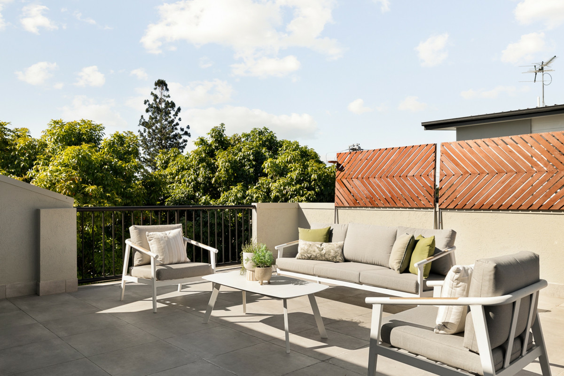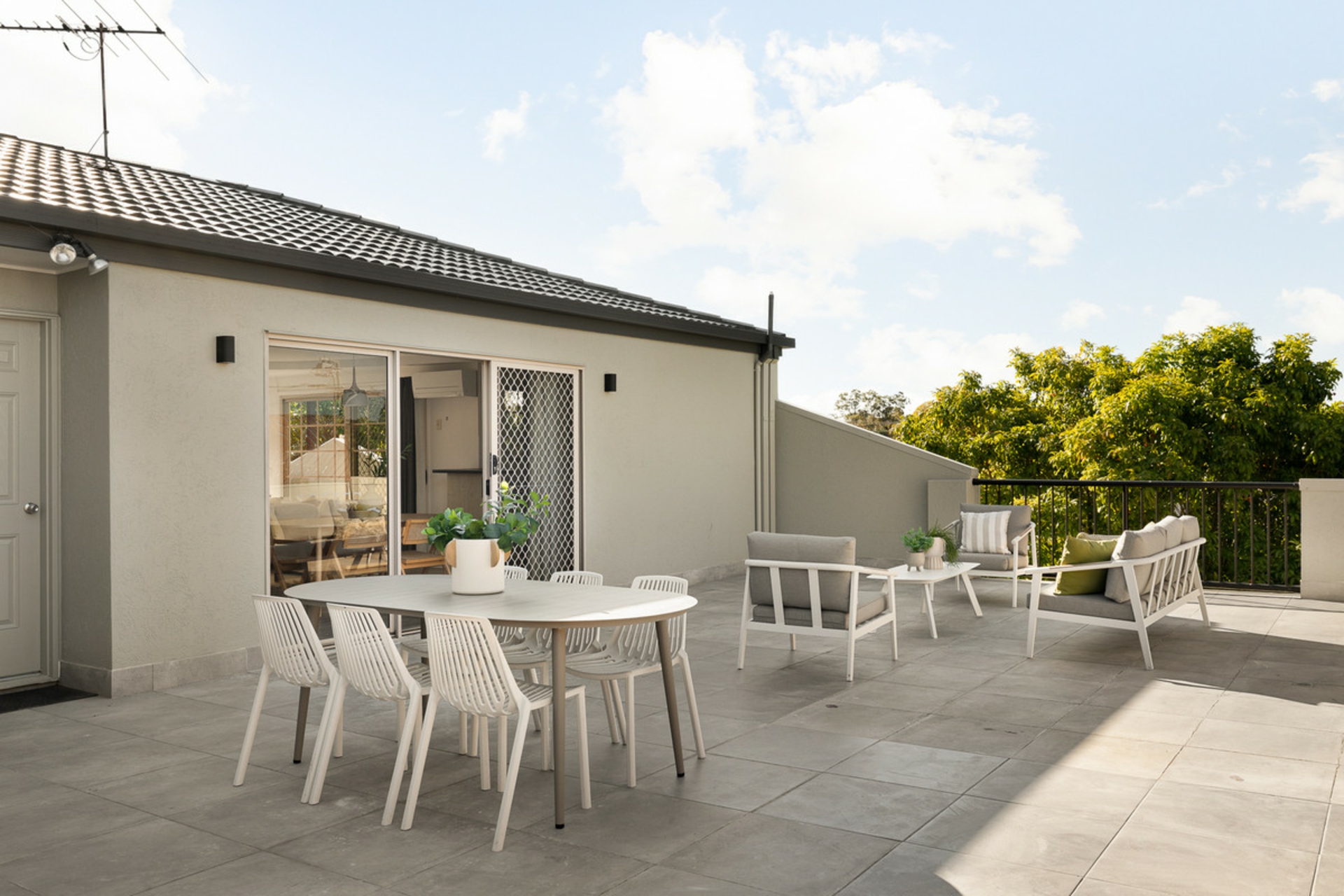 Three separate outdoor spaces provide light, space, air, and a range of openings that enhance the internal floorplan. The main terrace can be utilised through countless configurations, with planter boxes already suppling a green backdrop.