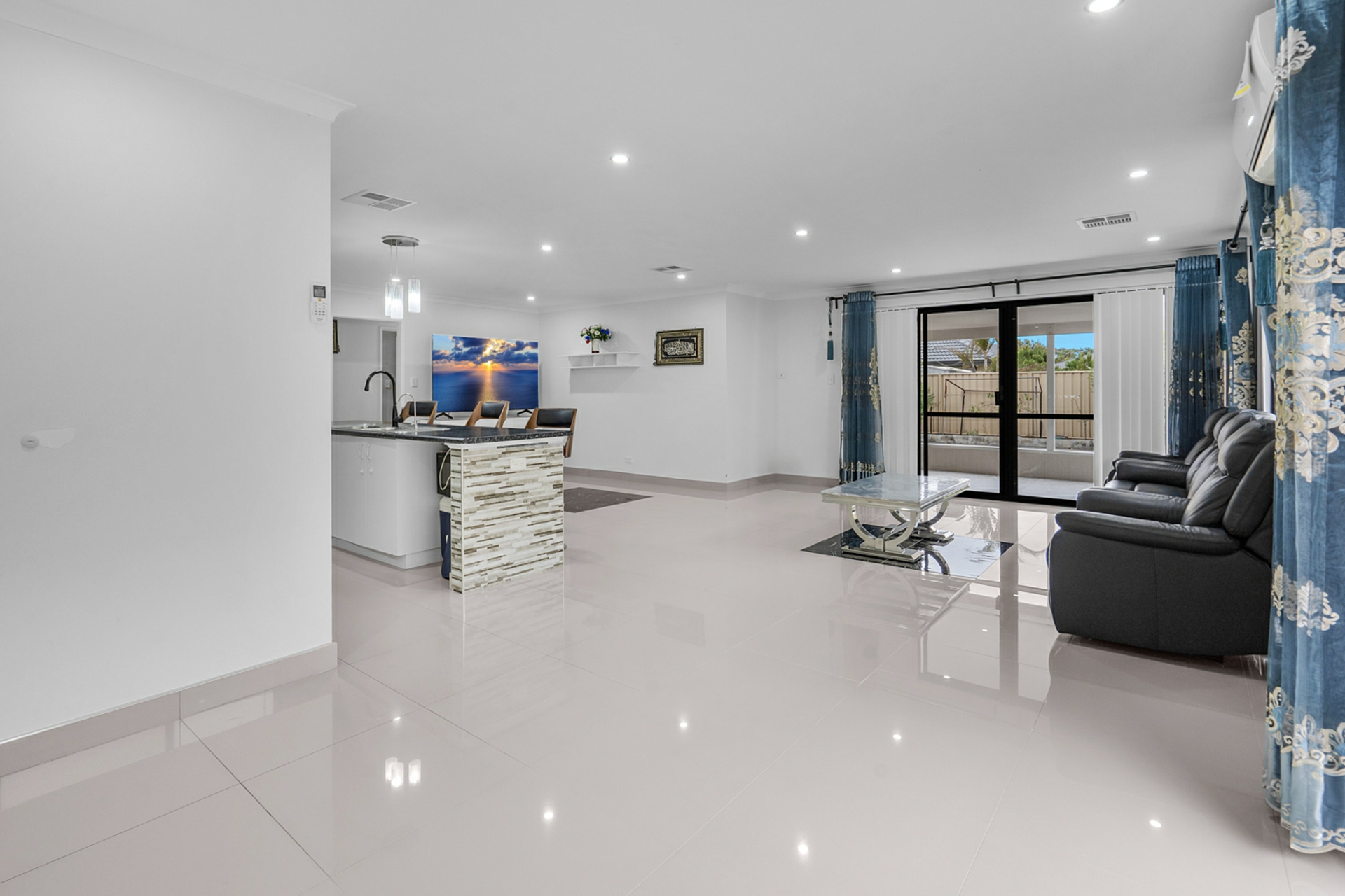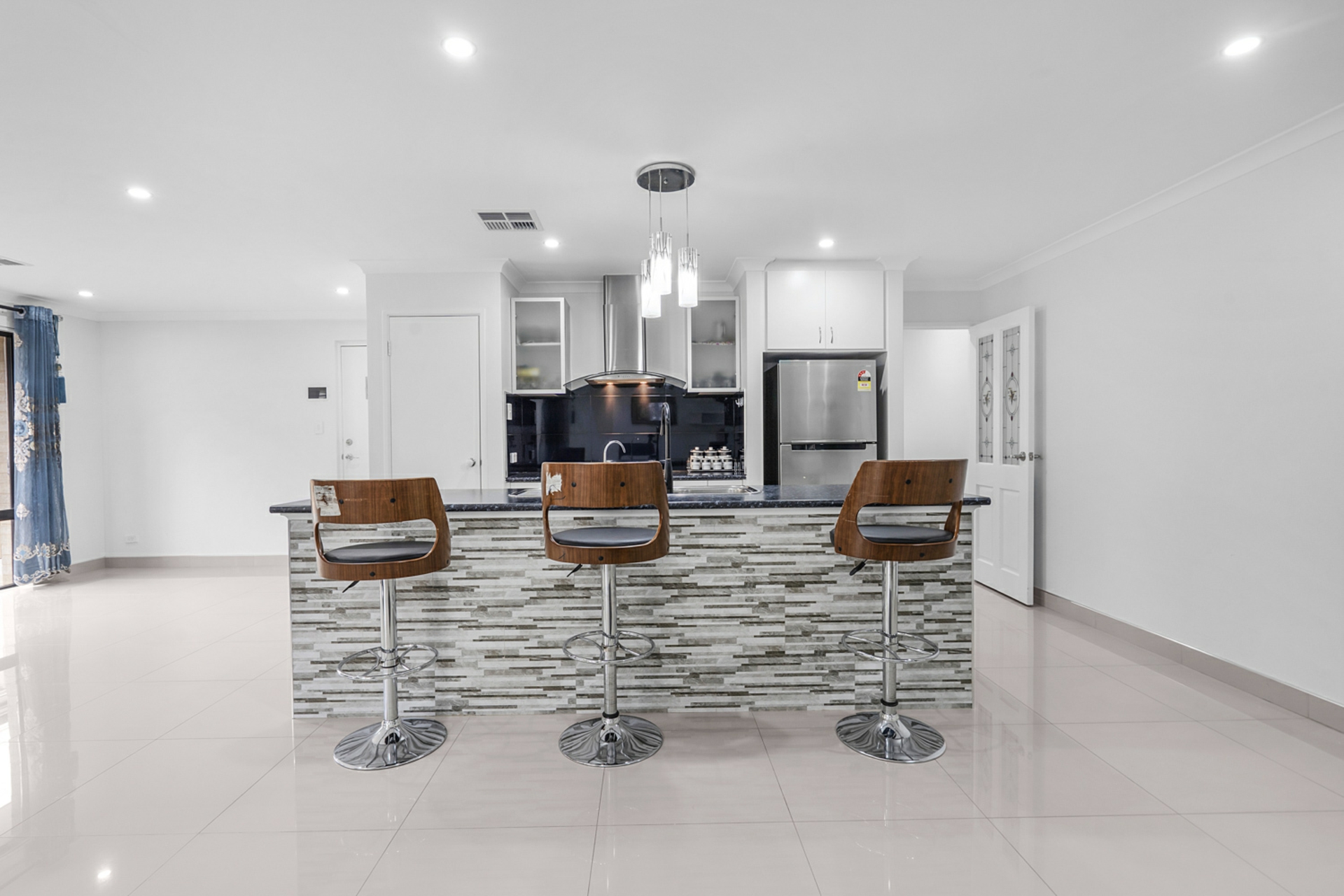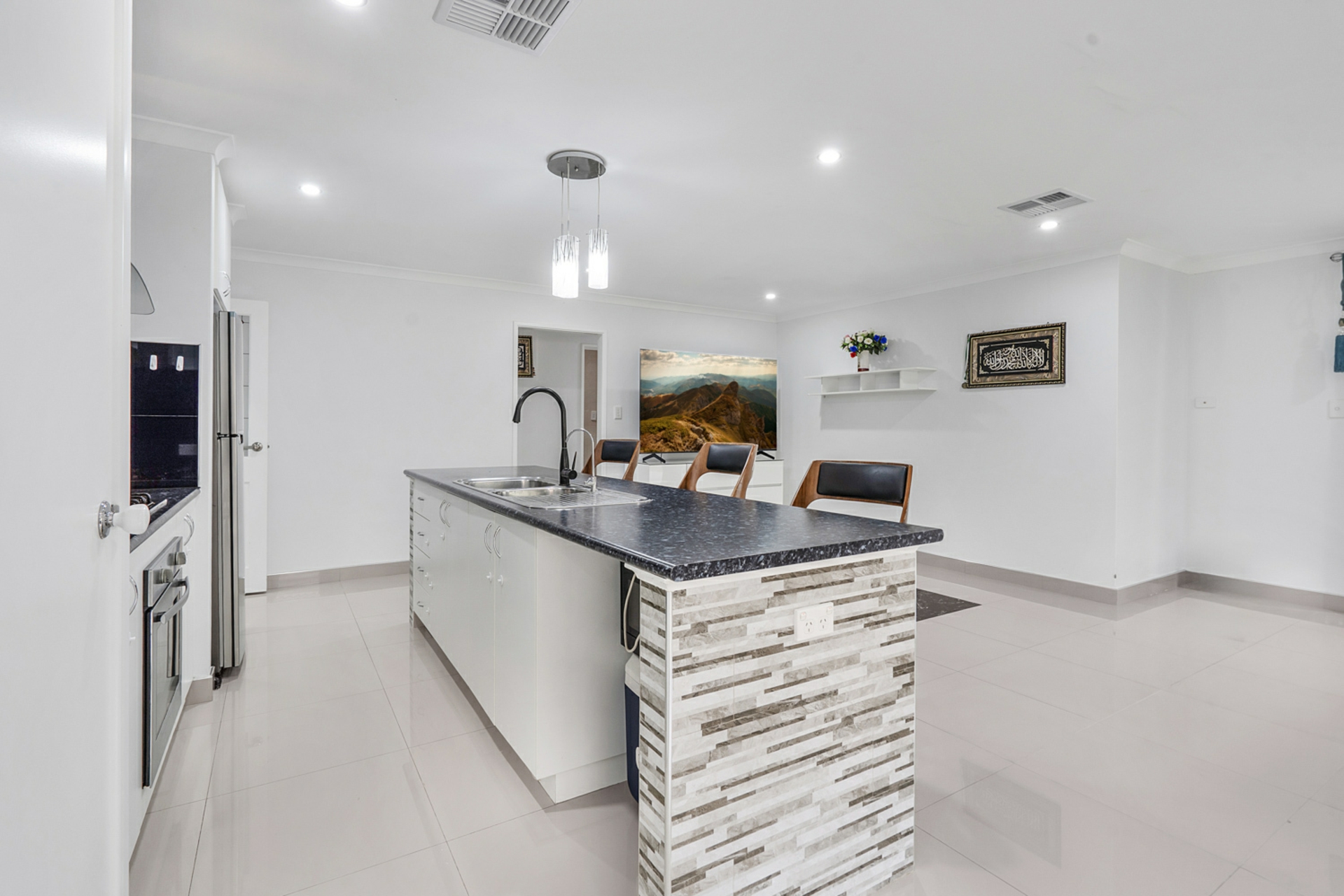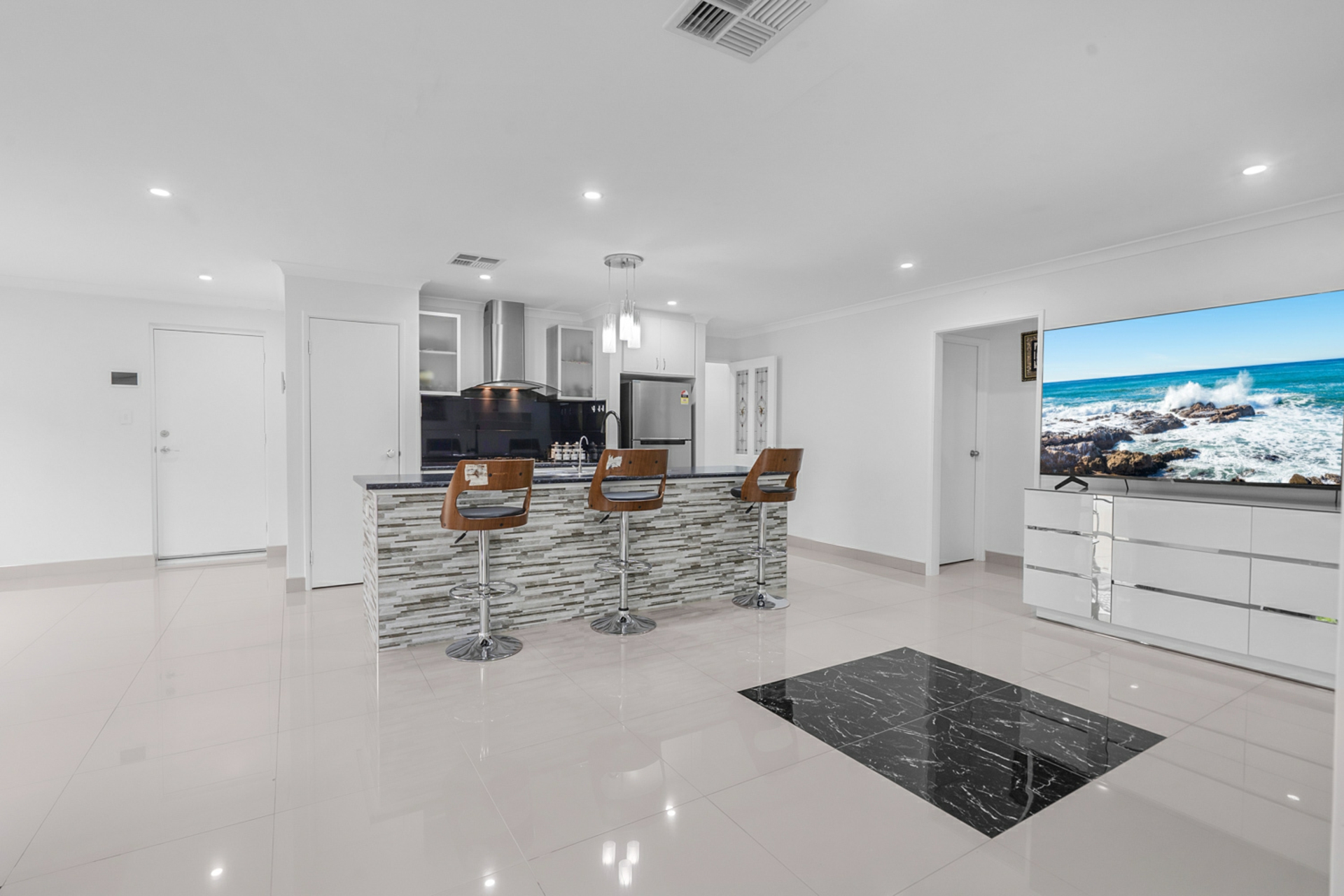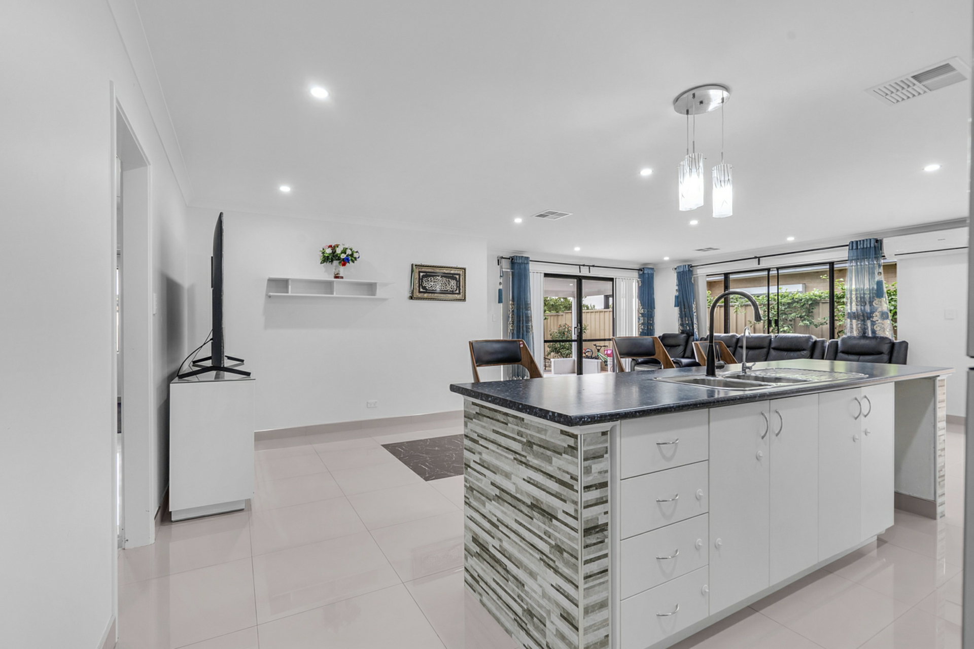 Flooded with natural light and finished in modern neutral tones, the home delivers a warm and inviting atmosphere throughout. A separate front lounge provides flexibility for quiet relaxation, while the spacious open-plan living and dining zone forms the heart of the home, seamlessly connecting to a well-appointed kitchen designed for everyday convenience and entertaining alike.