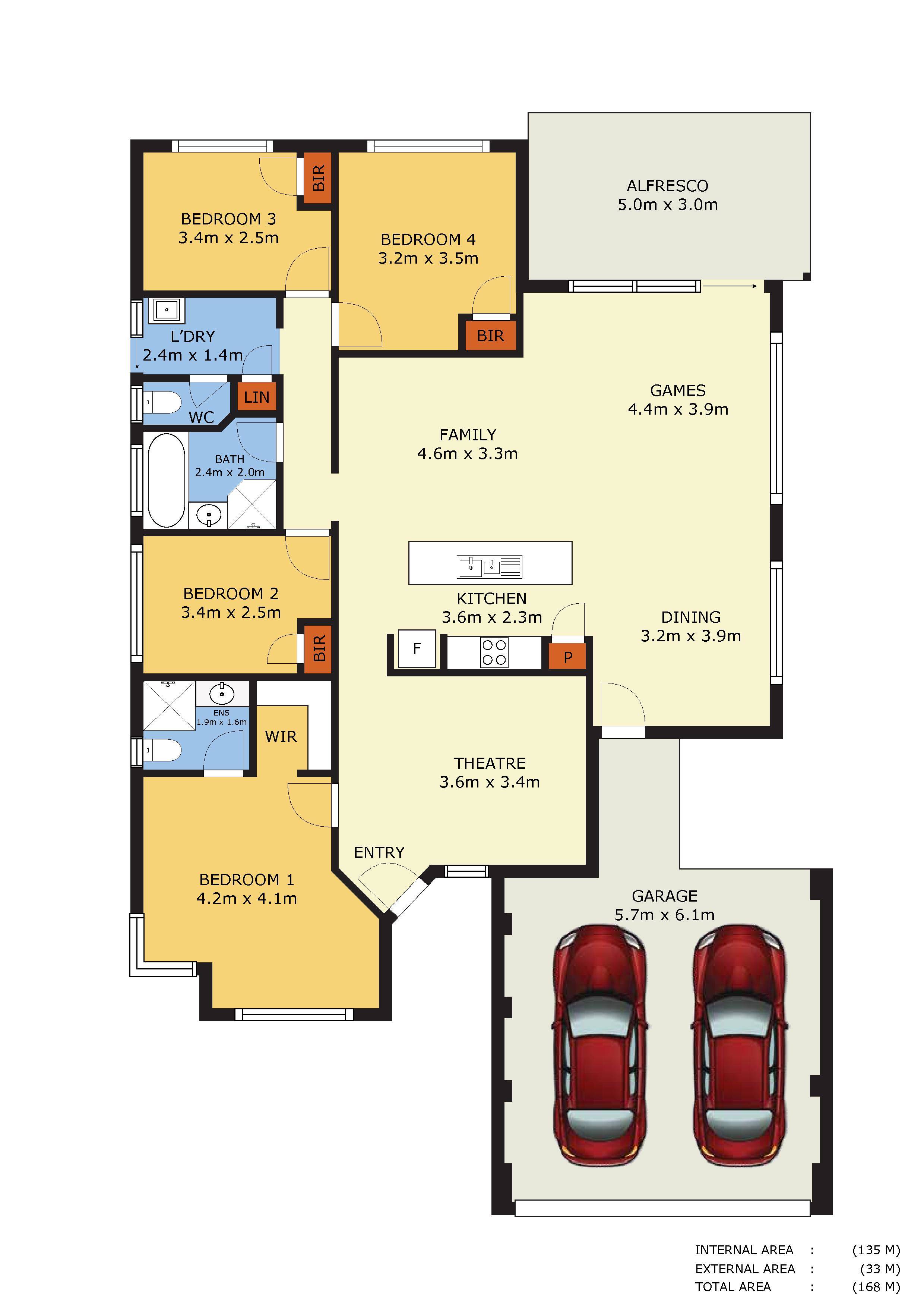 The master suite is privately positioned at the front of the home and features a walk-in robe and ensuite, while the three secondary bedrooms are generously sized and fitted with built-in robes, ensuring comfort for the whole household.