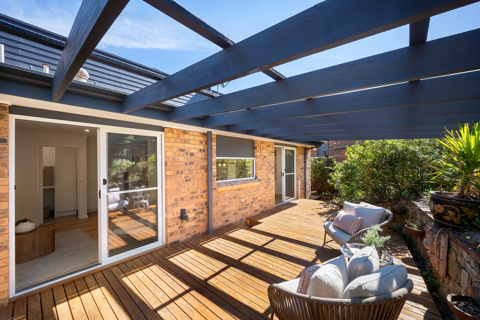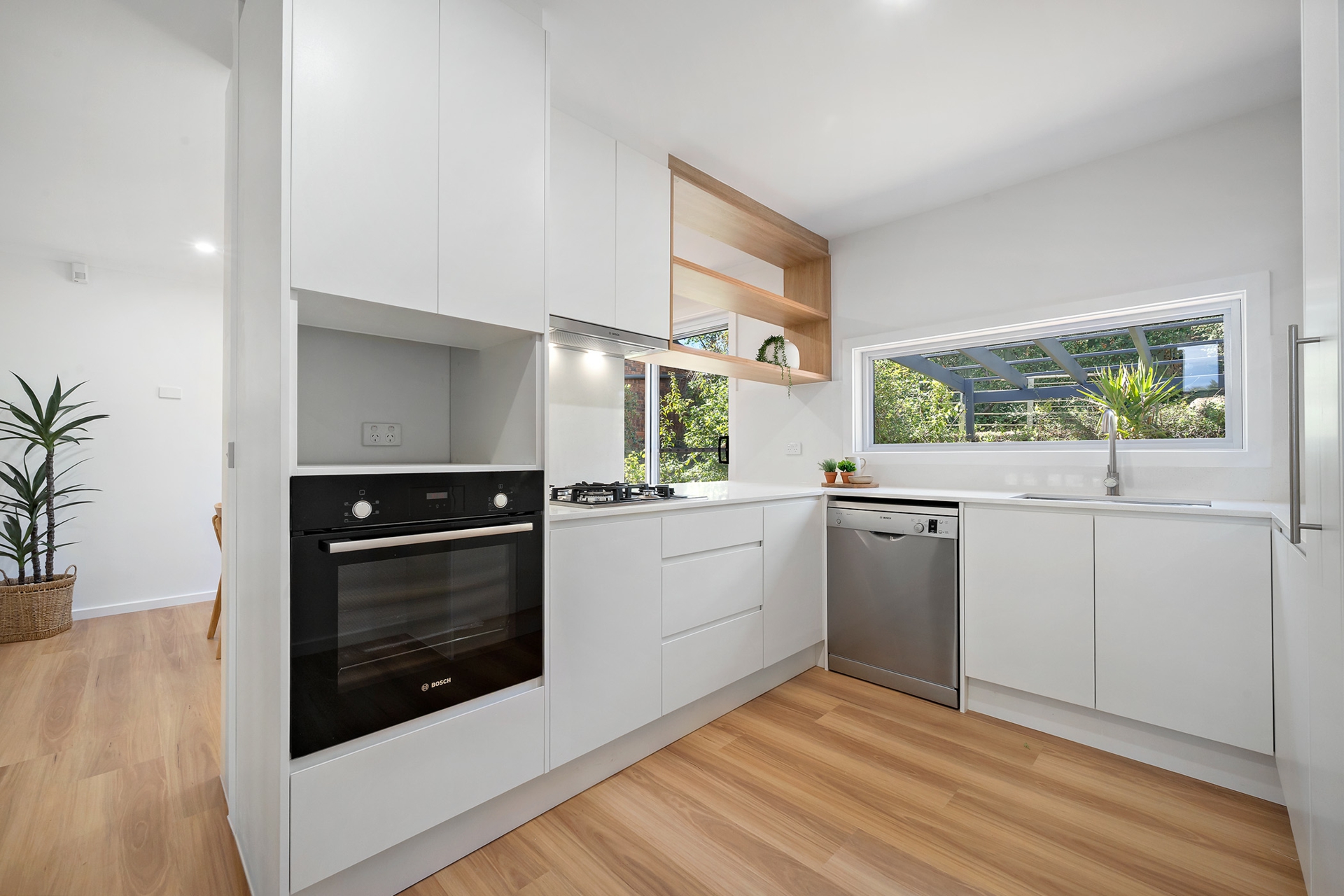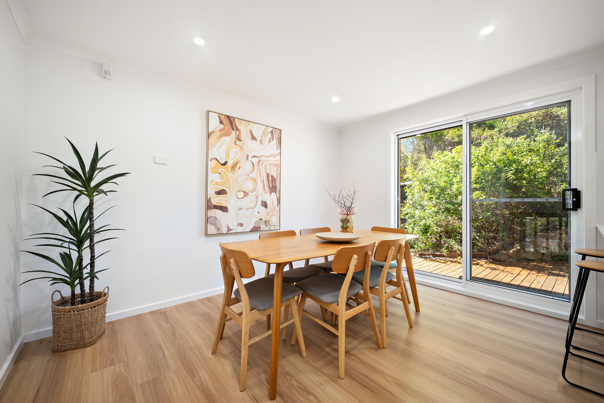 At the heart of the home is a large, beautifully renovated kitchen featuring quality Bosch appliances including a four-burner gas cooktop, oven and dishwasher, along with an abundance of storage and a functional layout. The adjoining dining area also enjoys direct access to the deck, making everyday living and entertaining feel seamless.