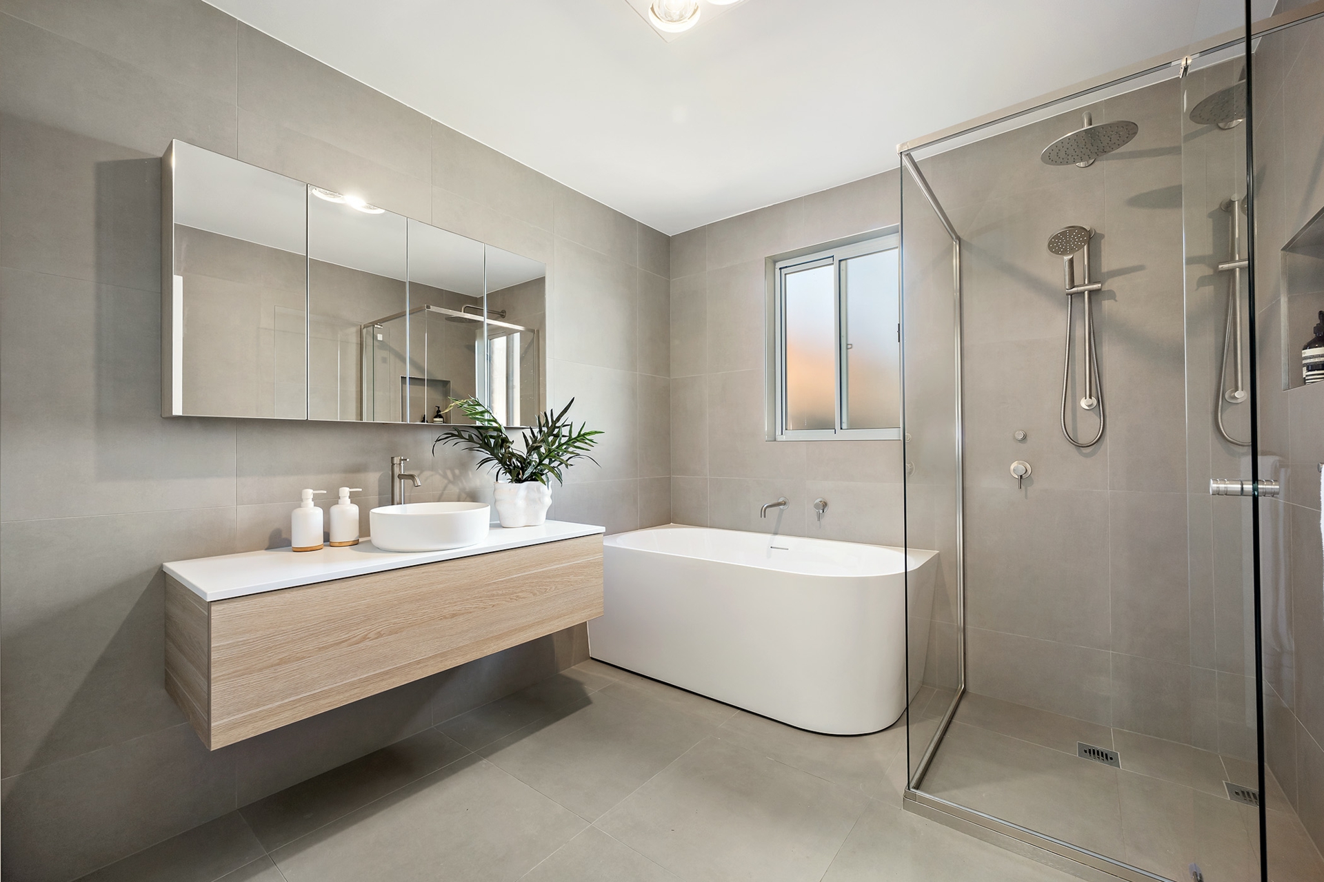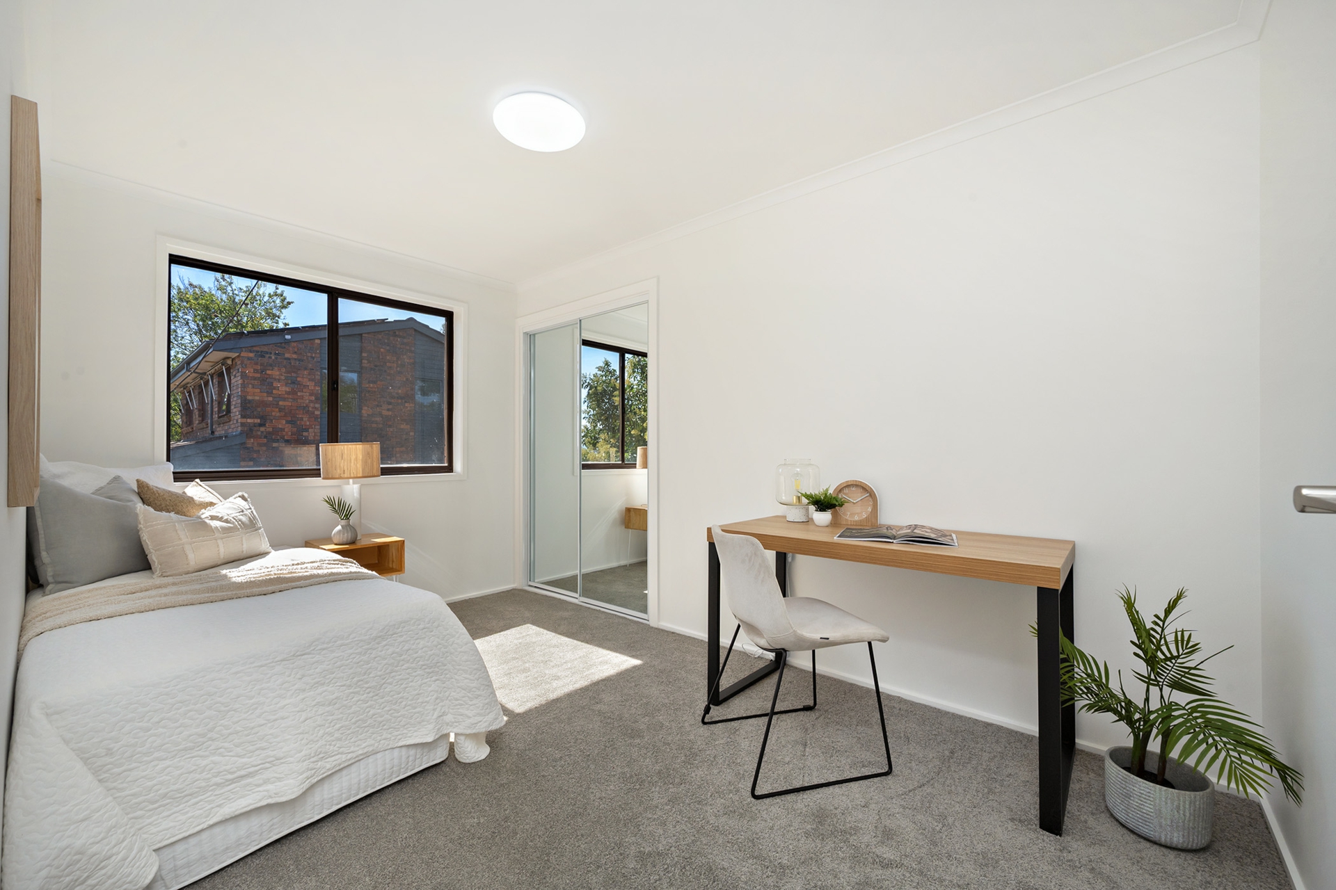 • Floor coverings: hybrid timber flooring in living areas, carpeted bedrooms, tiled bathrooms