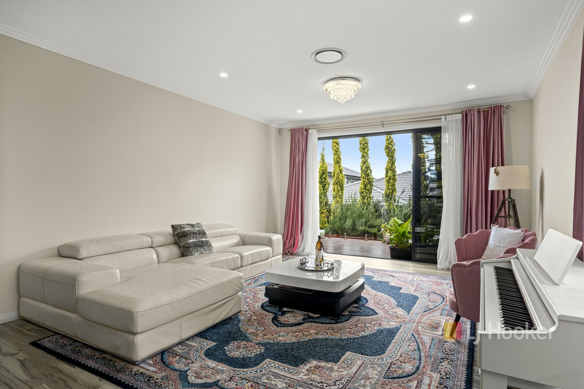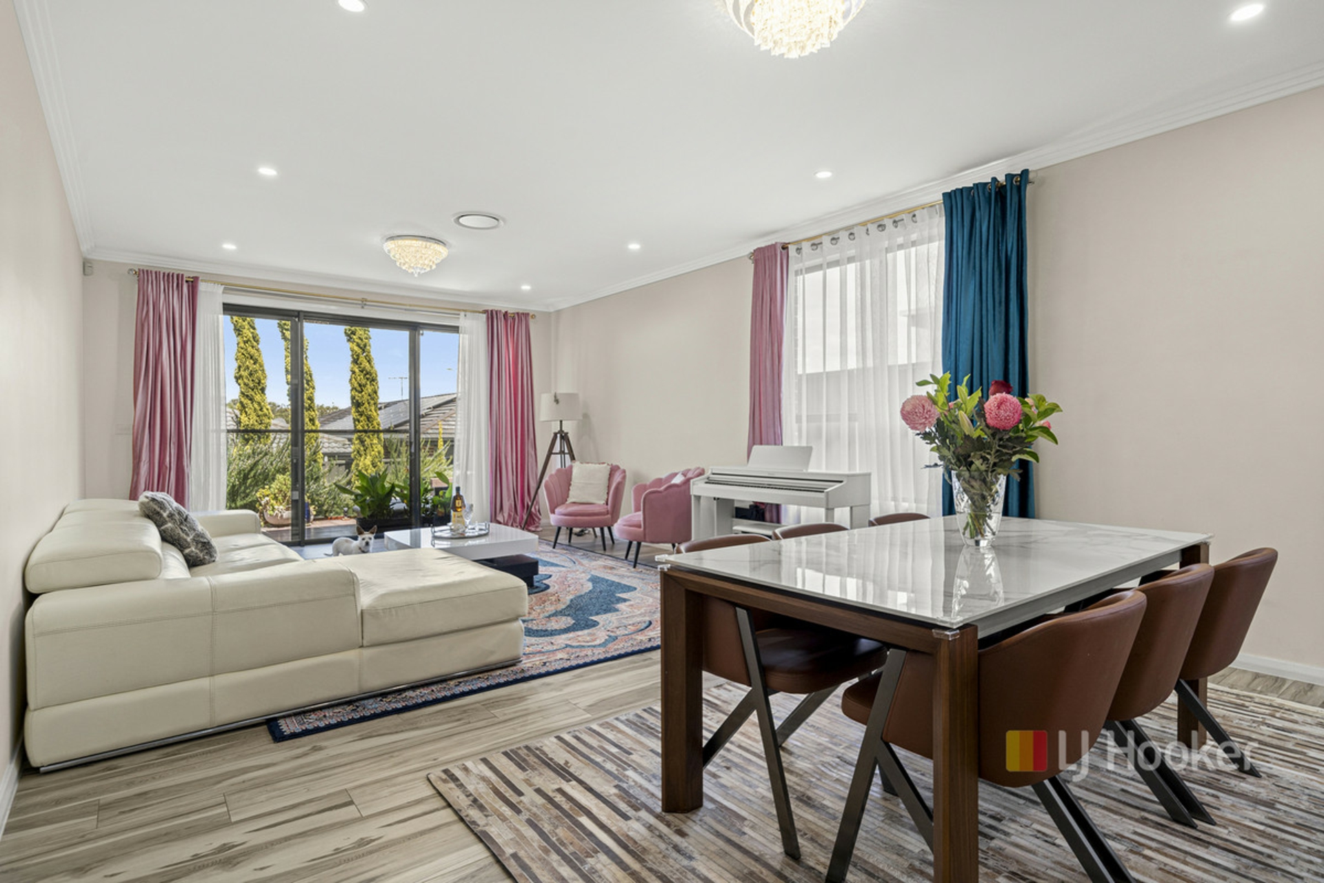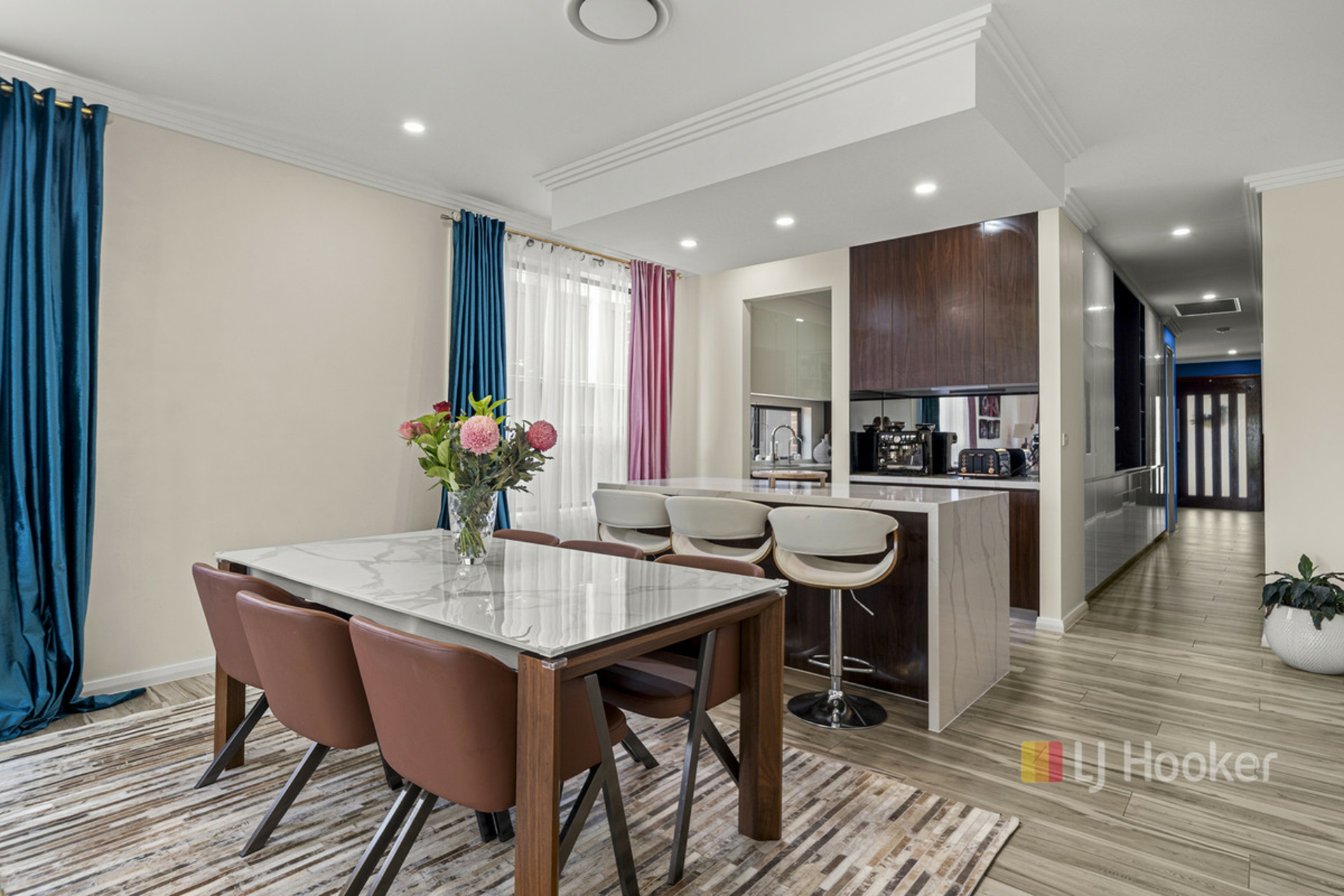 From the moment you step inside, you are welcomed by a formal lounge positioned at the front of the home, complete with a stunning chandelier that adds a touch of sophistication. The expansive open-plan living and dining area forms the heart of the home, flowing effortlessly to an outdoor decking area and low-maintenance backyard with garden beds - ideal for entertaining or enjoying time with the family.