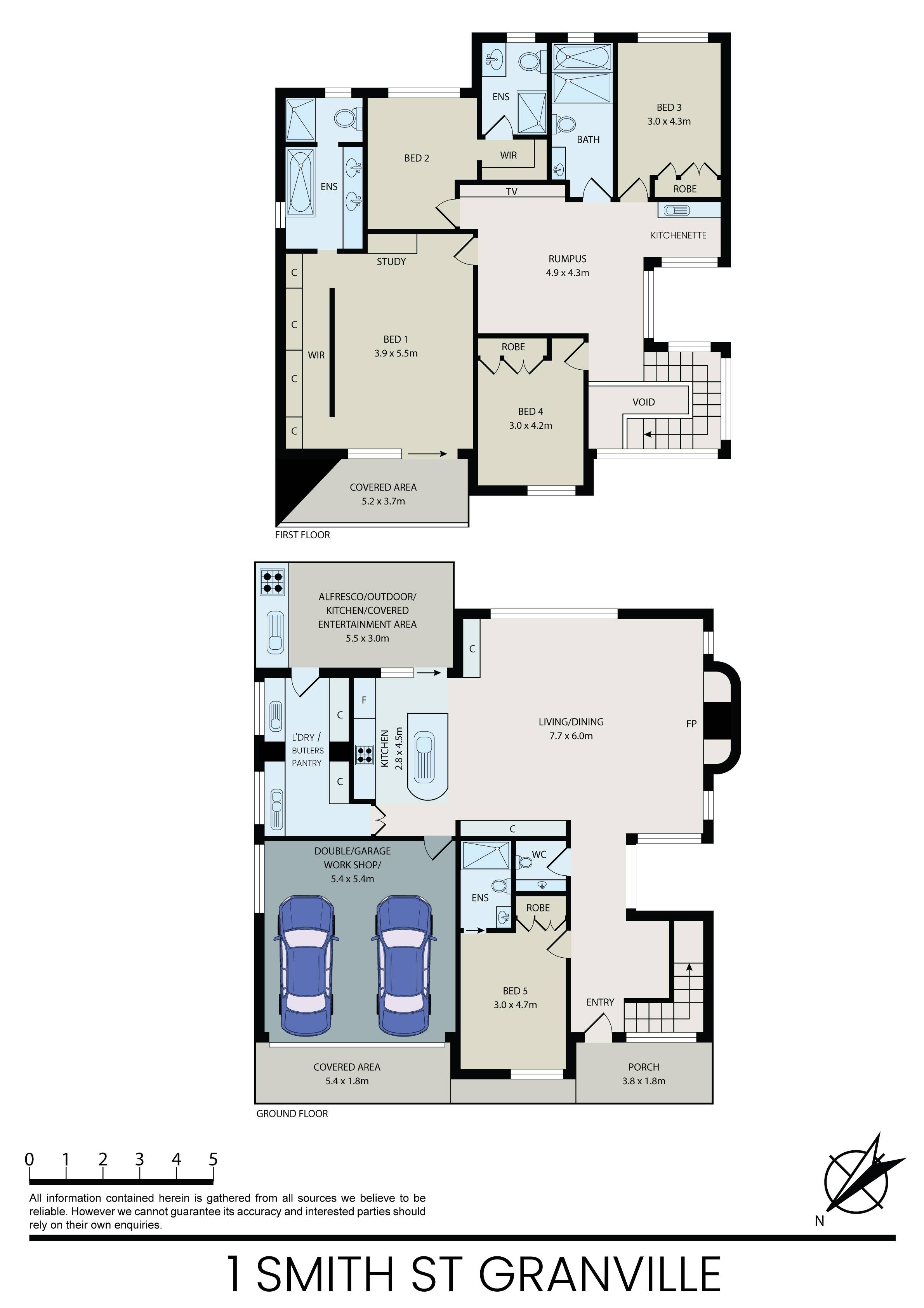 • 5 generous bedrooms, including 3 master suites with walk-in wardrobes and ensuites