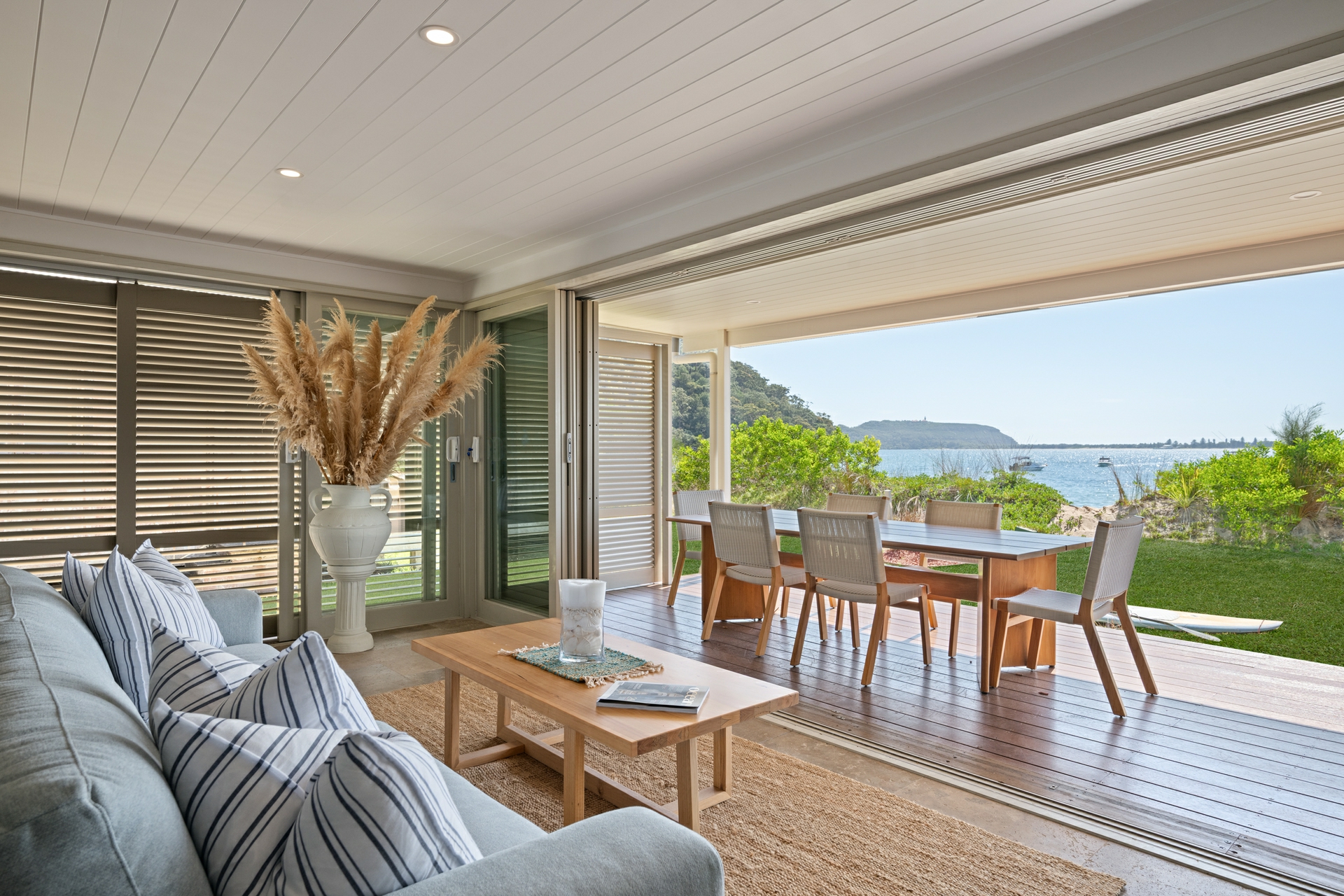 A refined beachfront sanctuary, this exceptional residence delivers an enviable lifestyle in one of Pittwater's most tightly held locations. Accessible only by boat, yet just moments from the vibrancy and sophistication of Palm Beach, this rare waterfront community offers a pace of life that feels wonderfully removed. With no roads and no through traffic, days unfold to the rhythm of ferry arrivals, shifting tides and the movement of light across the water-while cafés, restaurants, boutiques and surf beaches are just a short Pittwater crossing away.