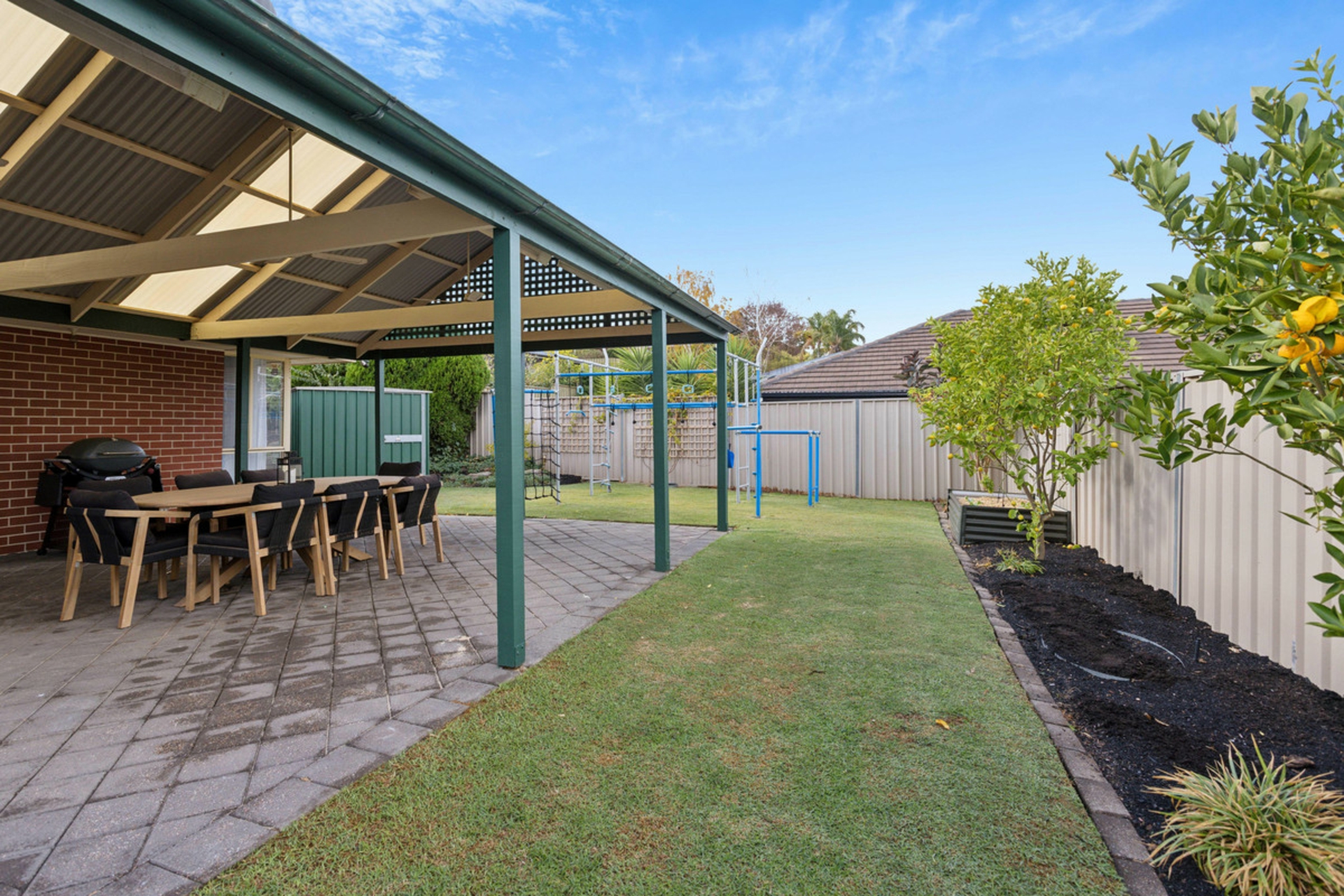 •Expansive undercover entertainment area, the ideal spot for the family BBQ, lawn area and several fruit trees including lemon, lime, orange, mulberry and passionfruit
