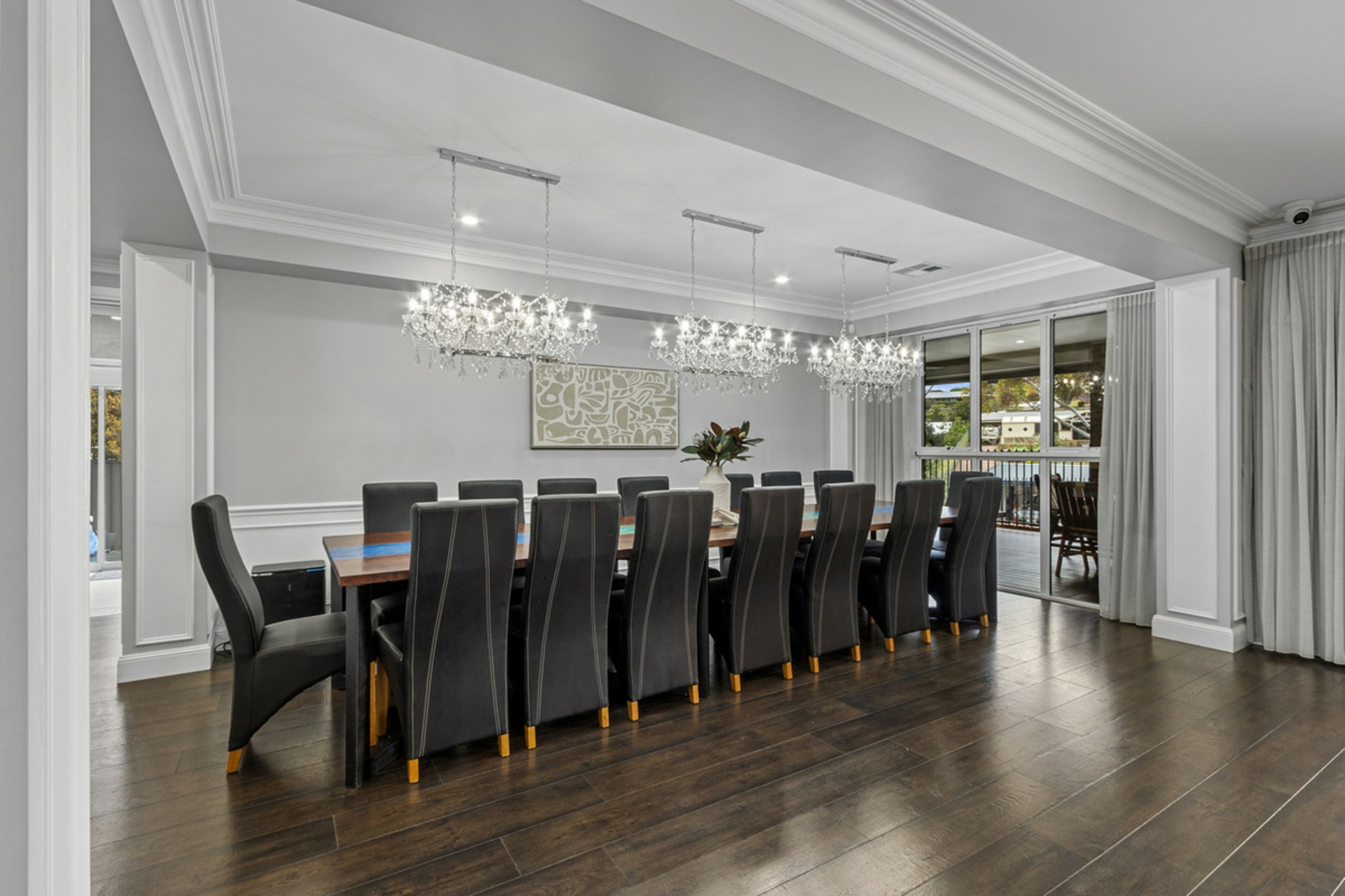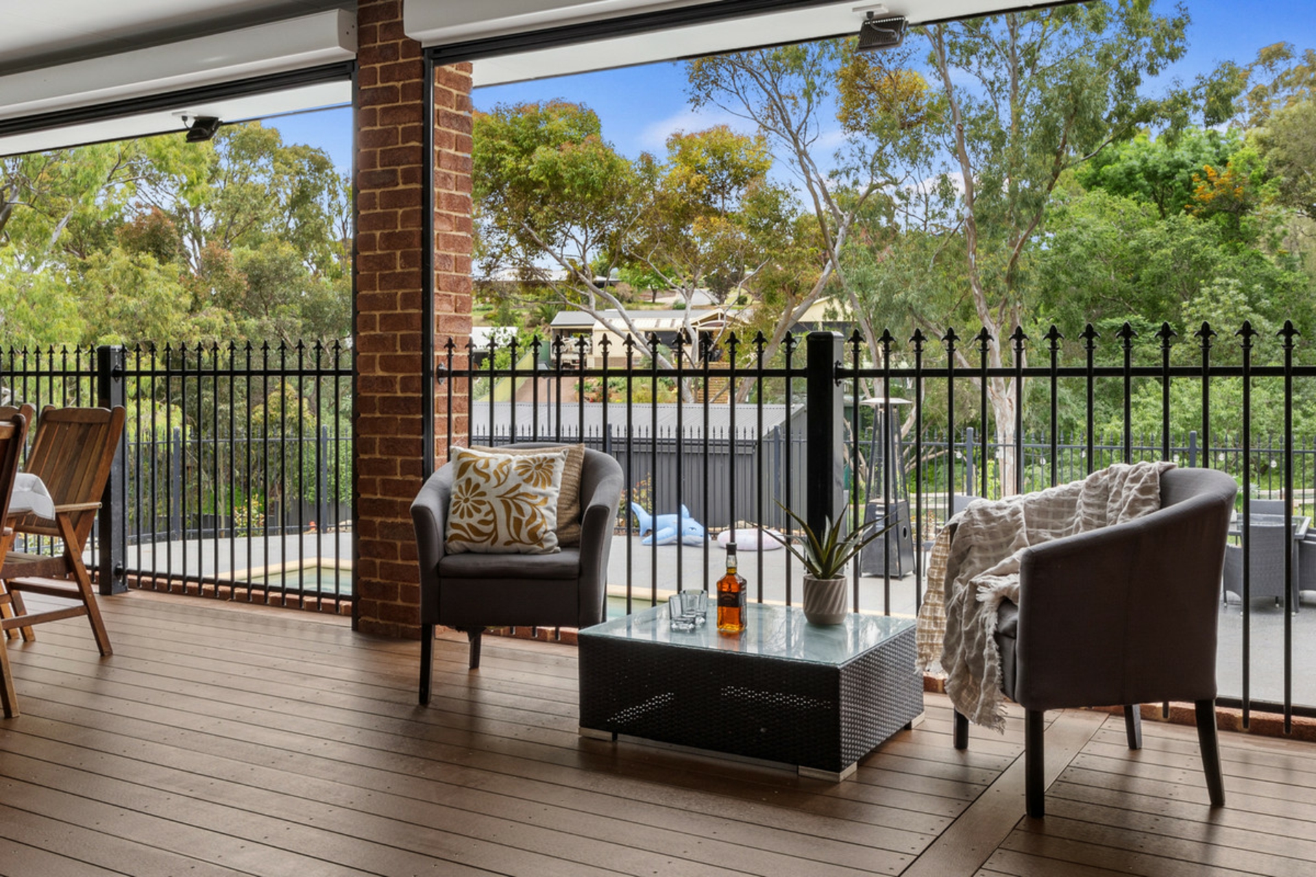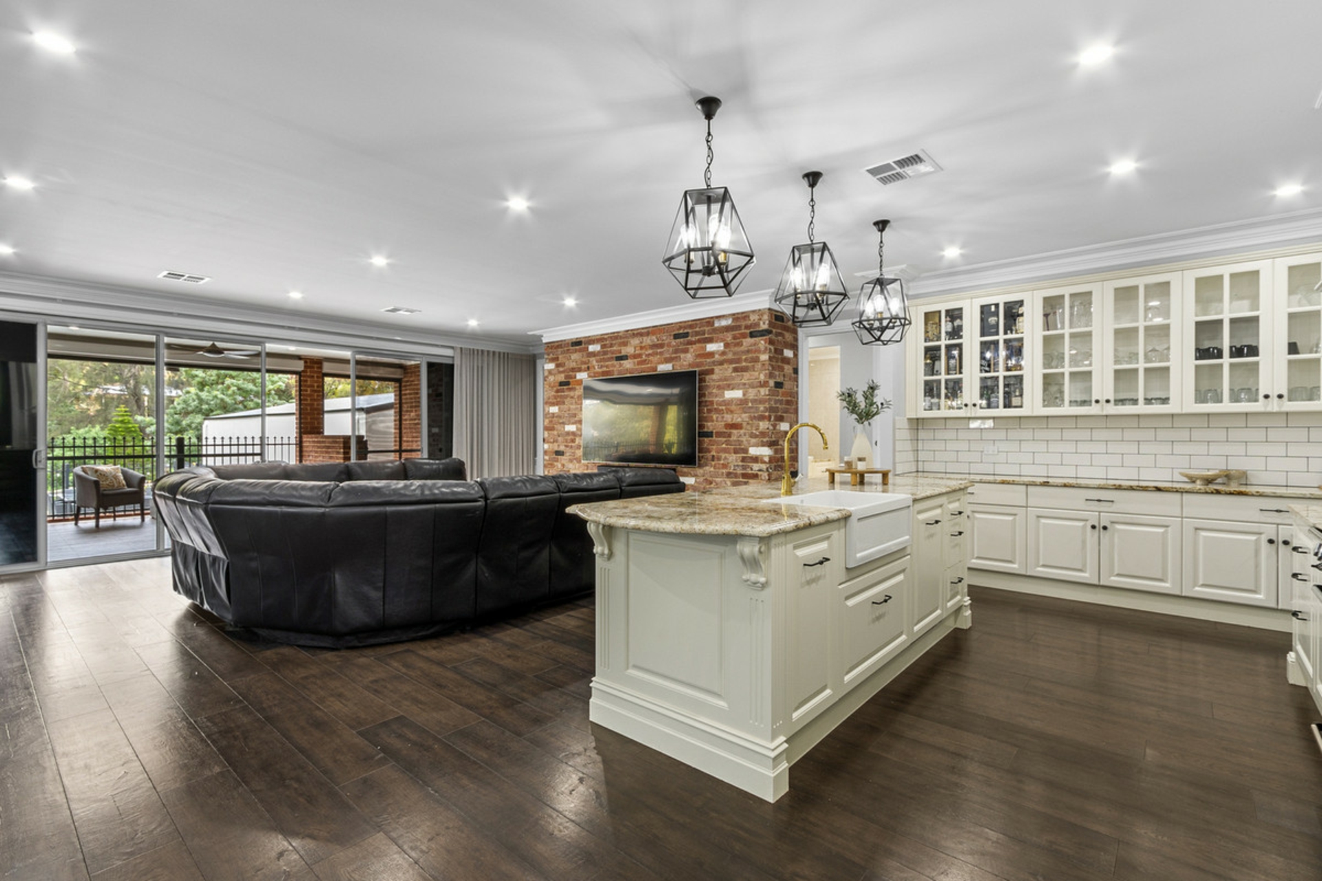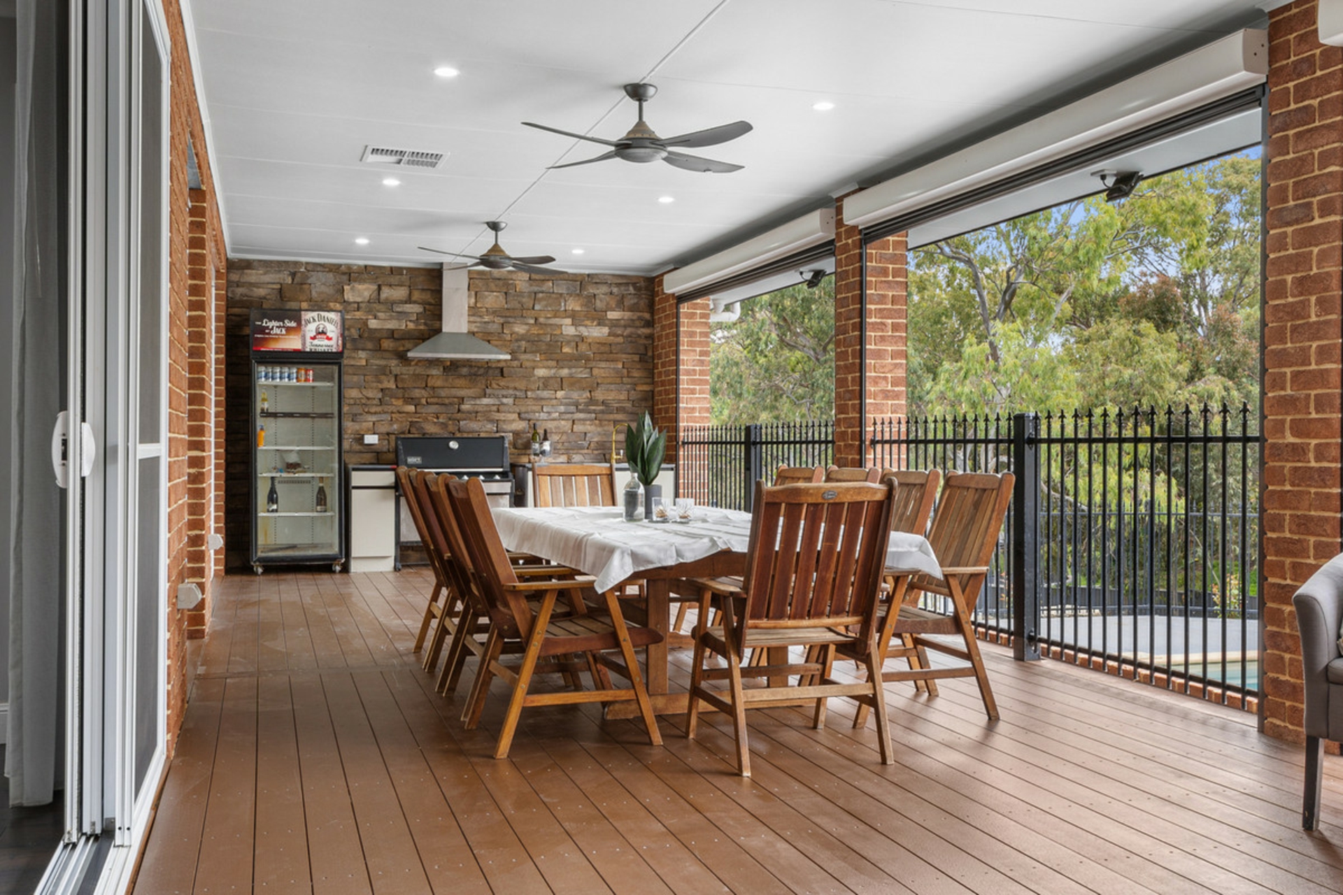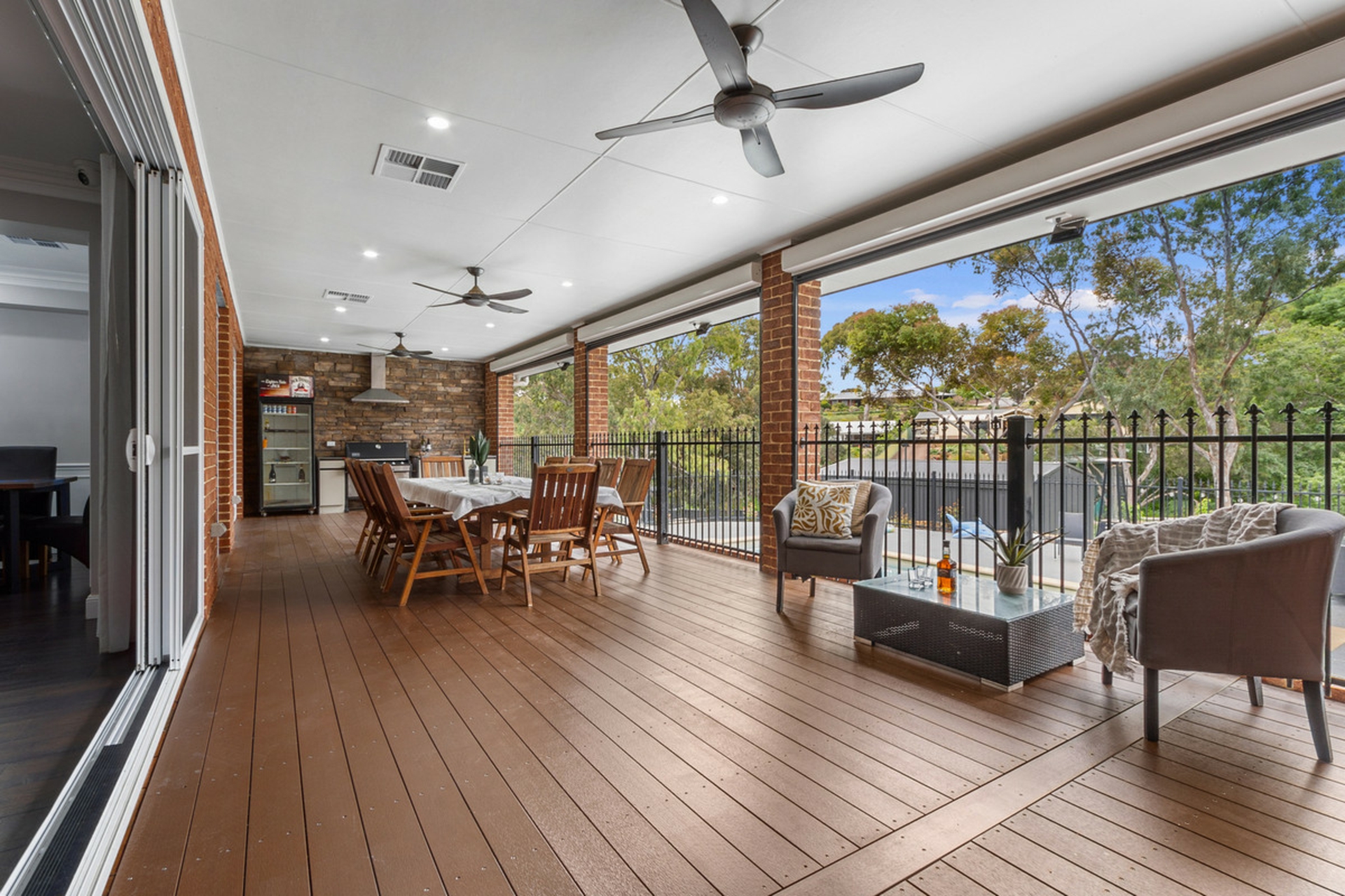 • Huge alfresco entertaining area complete with electric café blinds, outdoor kitchen, ceiling fans & decking.