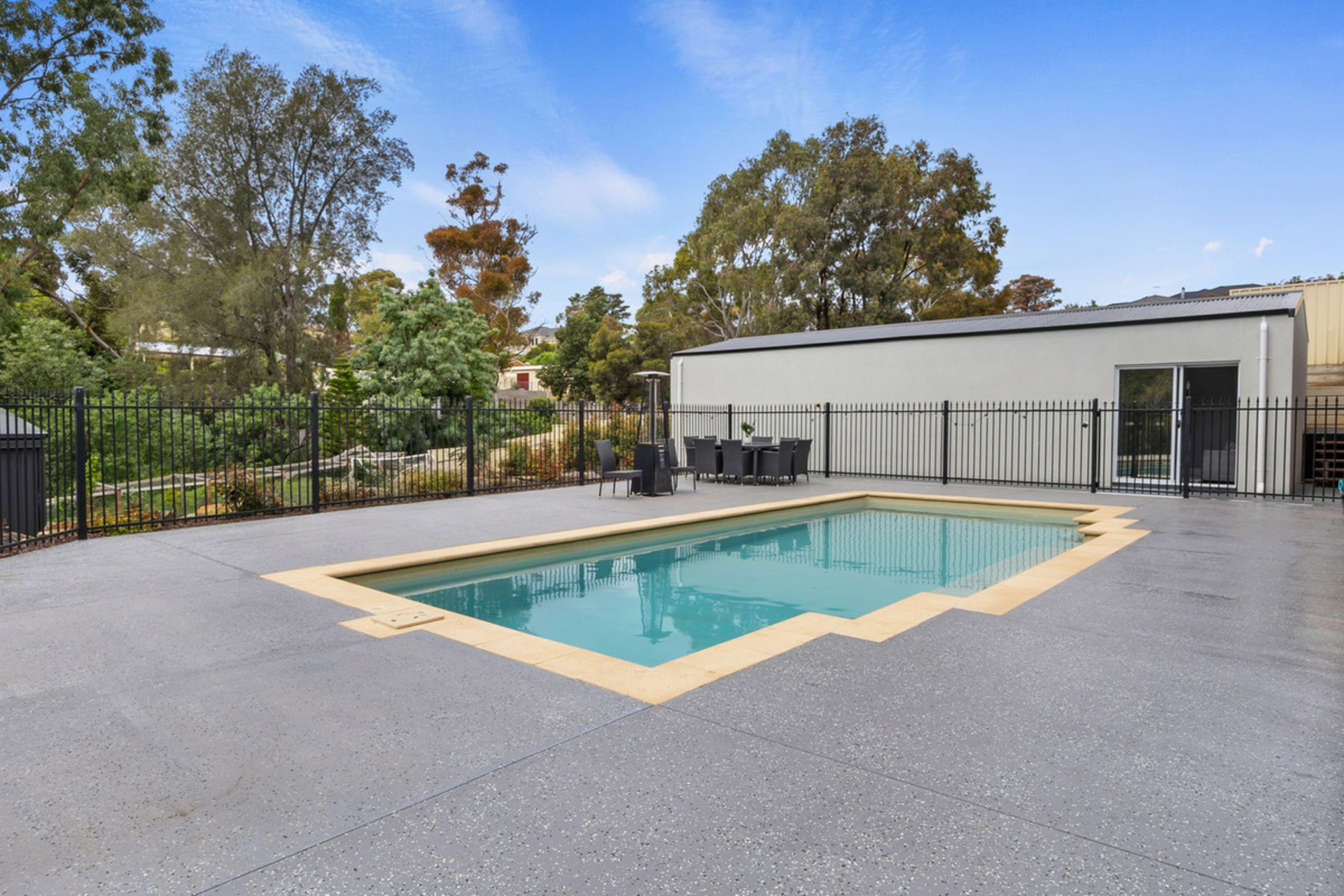 • In ground swimming pool with concrete surround.