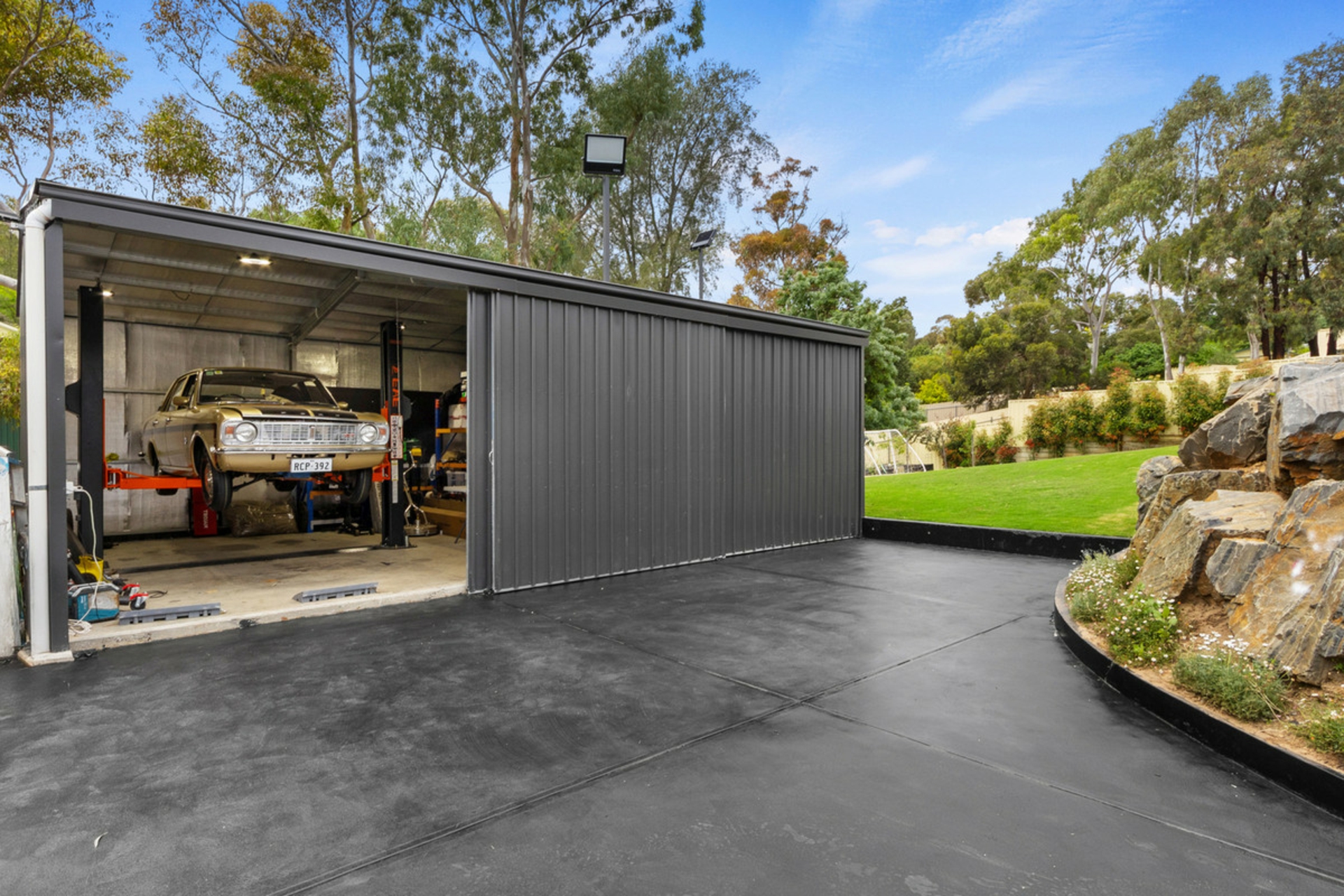 • Side access to 3 bay shed with 3 phase power, concrete floor & car hoist.