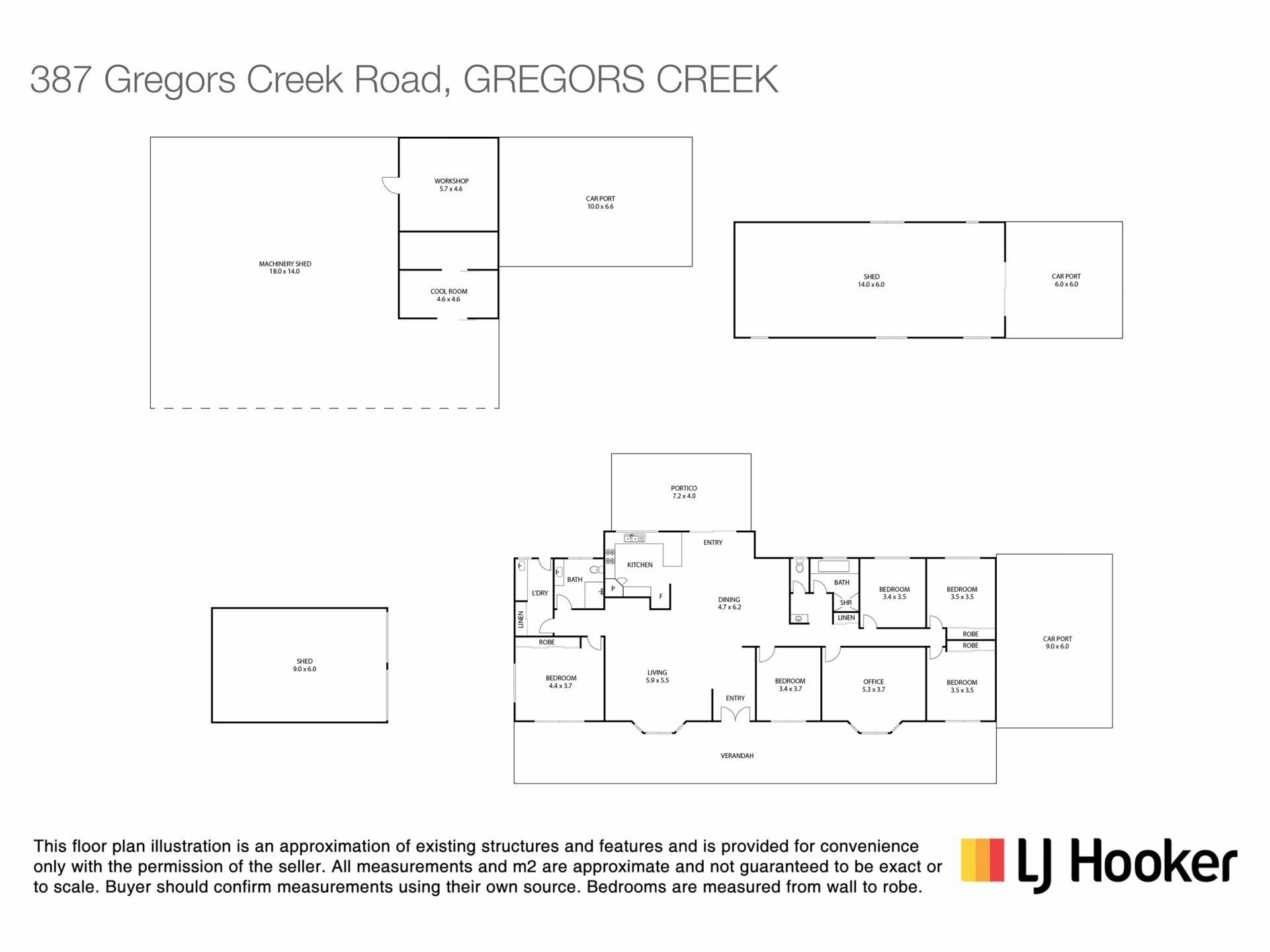Shed 2. Enclosed and fully lockable 14 metres x 6 metres with 6 metre x 6 metre carport.