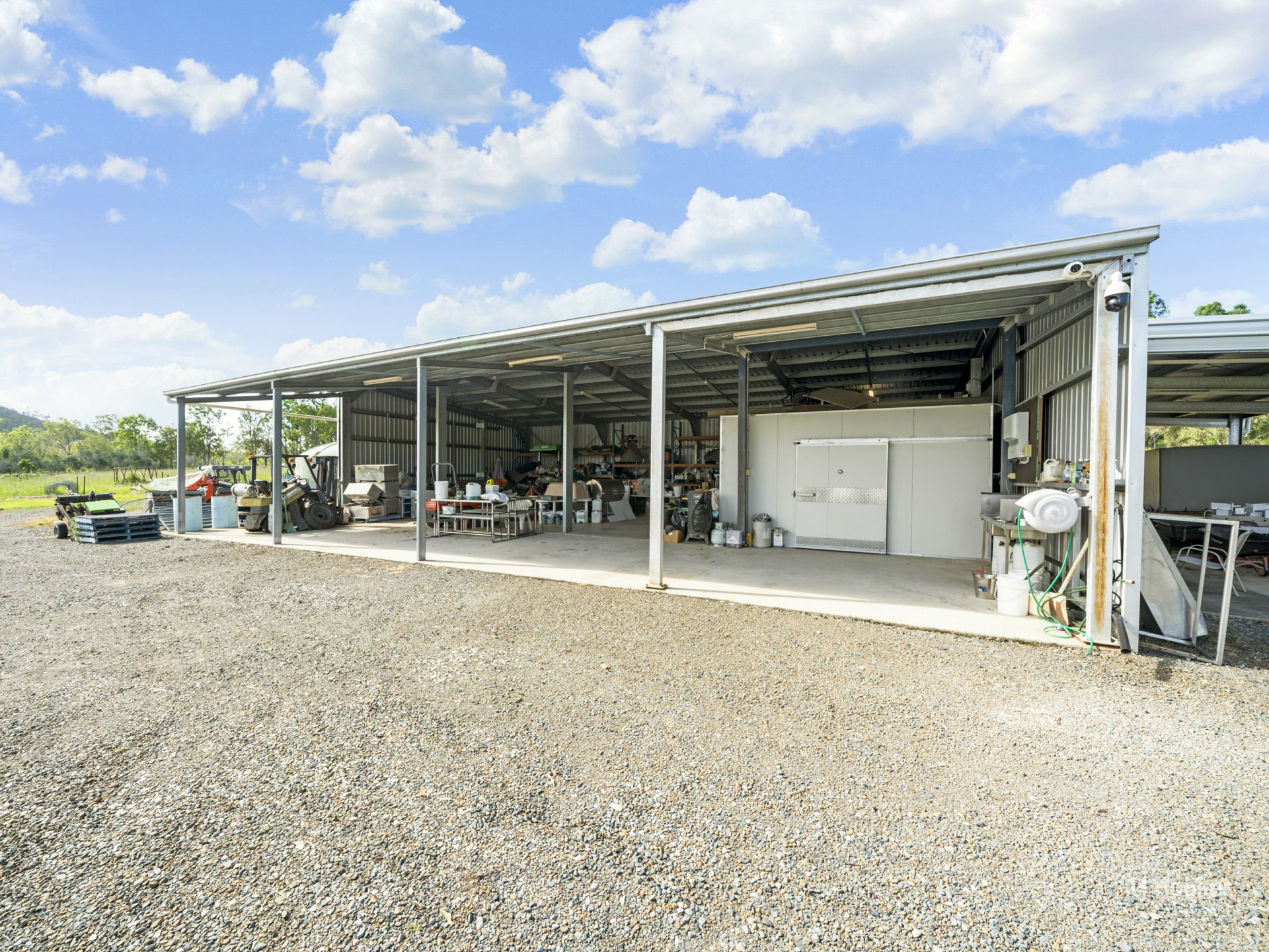 Shed 1. 18 metres x 14 metres with 10 metres x 6 metre carport and large 2 room cold room