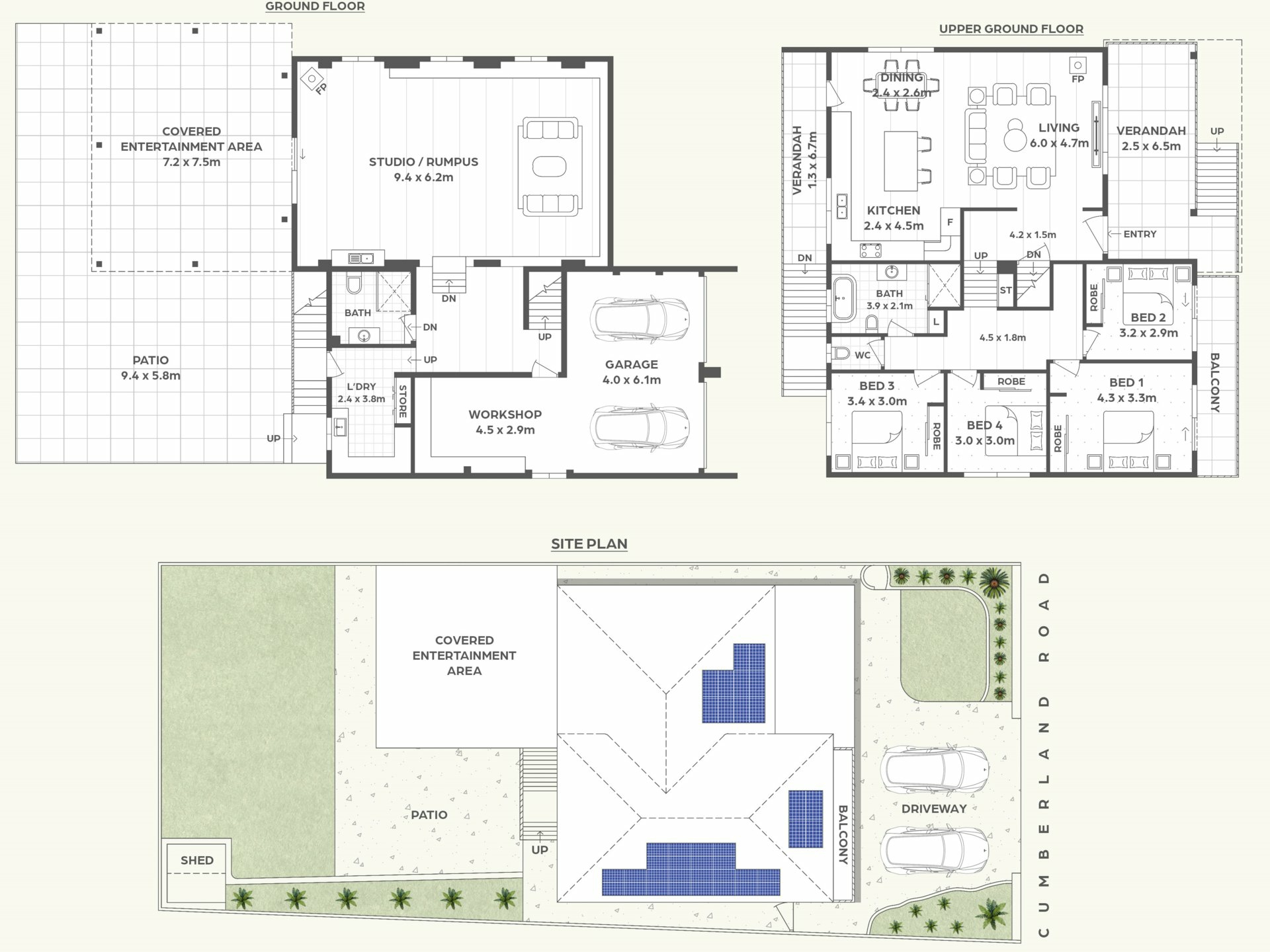 • Upstairs 4 generous bedrooms all with built in robes, carpet and ceiling fans
