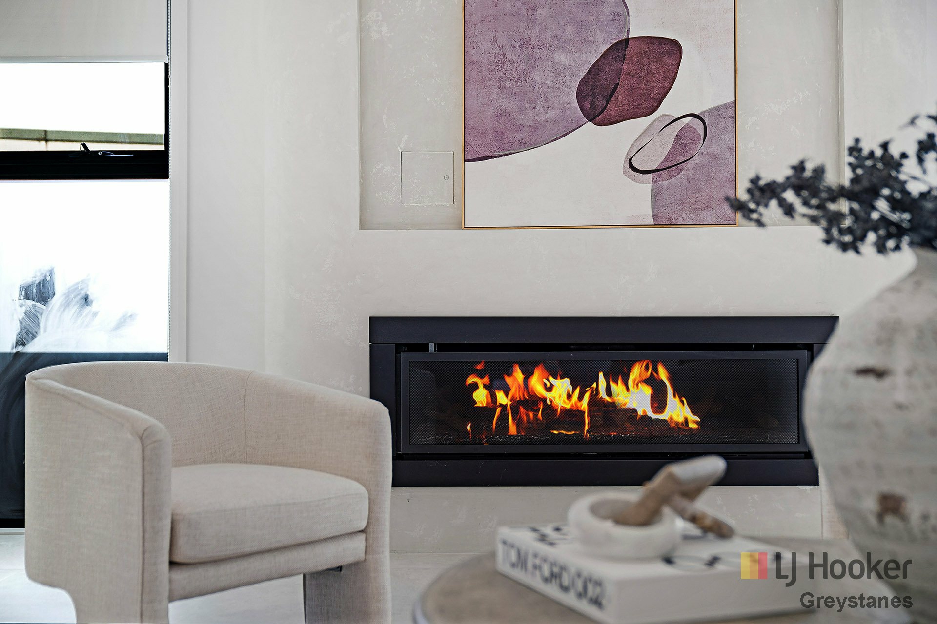 • Step down to massive open plan living and dining with 3.3m ceilings and gas fireplace