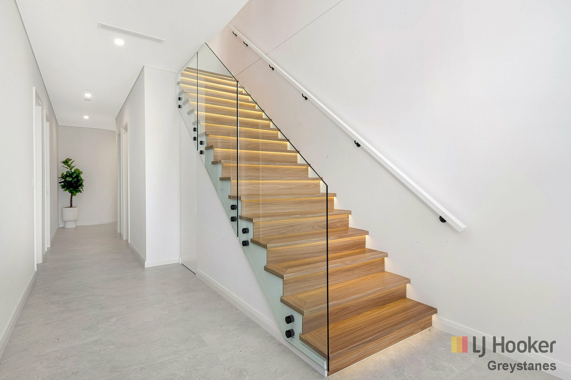 • Upstairs hybrid timber flooring, staircase with LED lighting