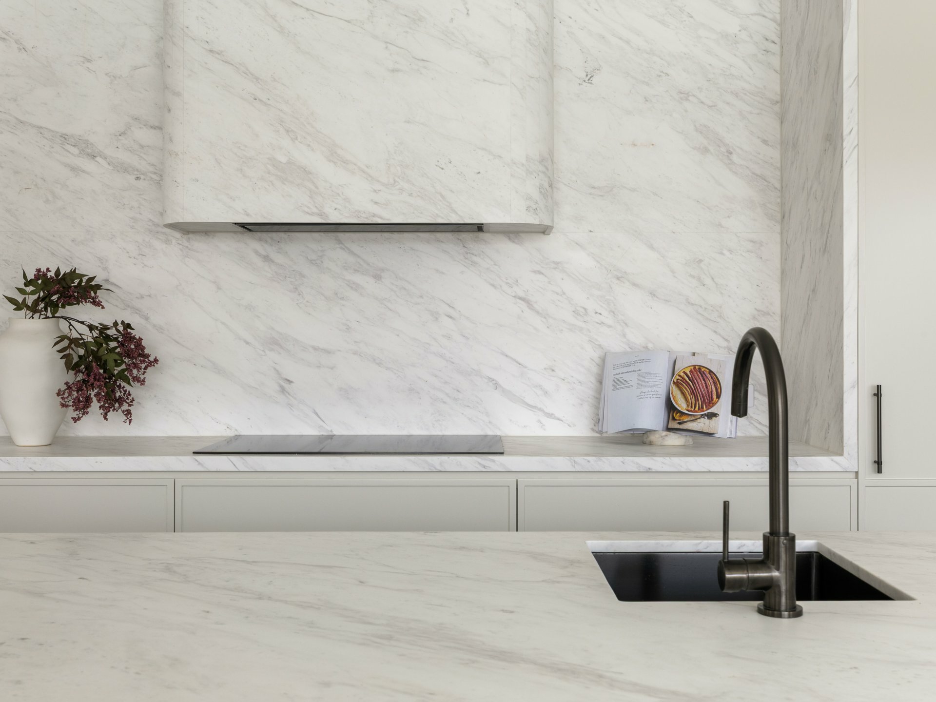• Danae Galaxy marble kitchen imported from Greece with striking bespoke finishes