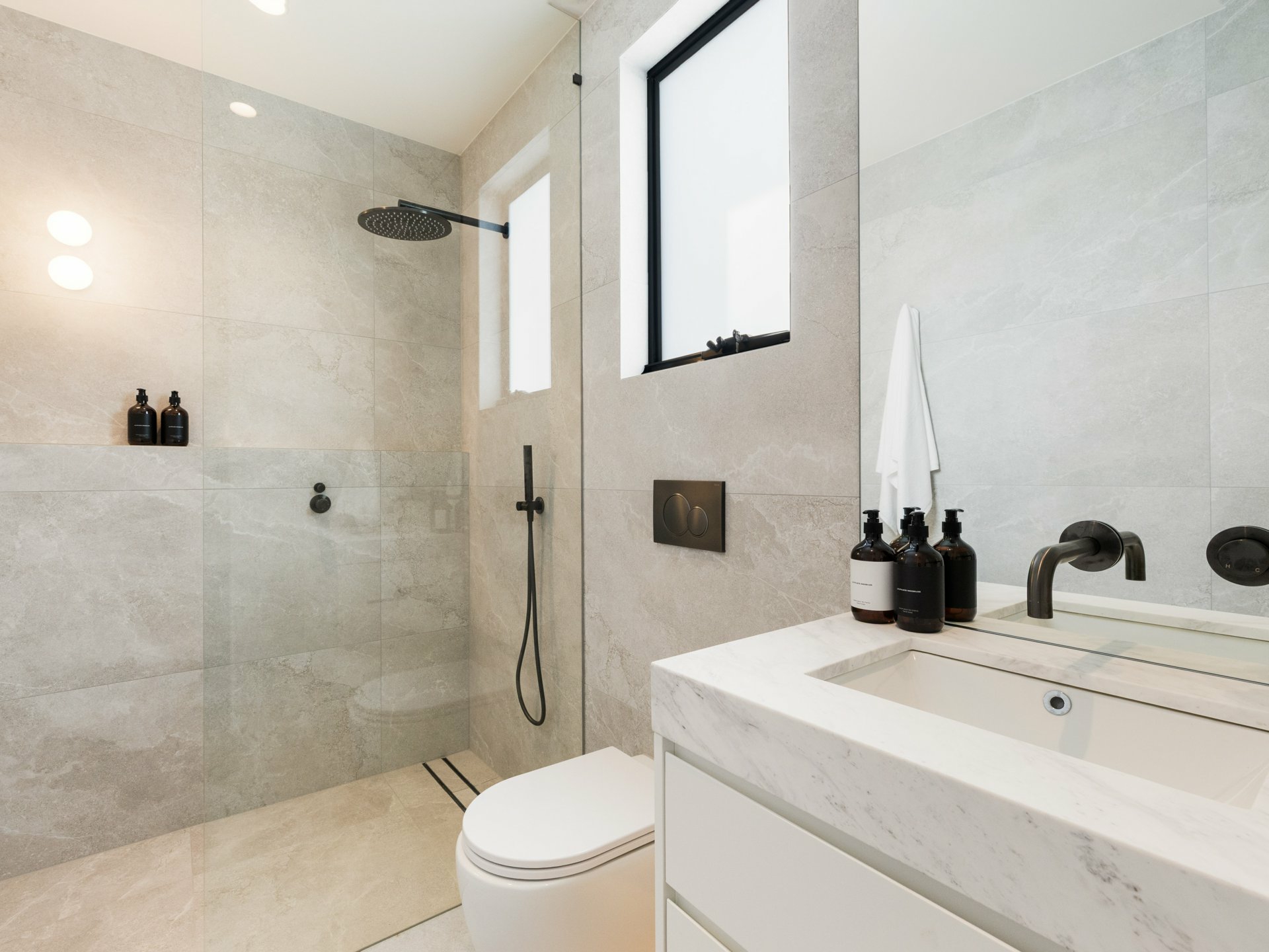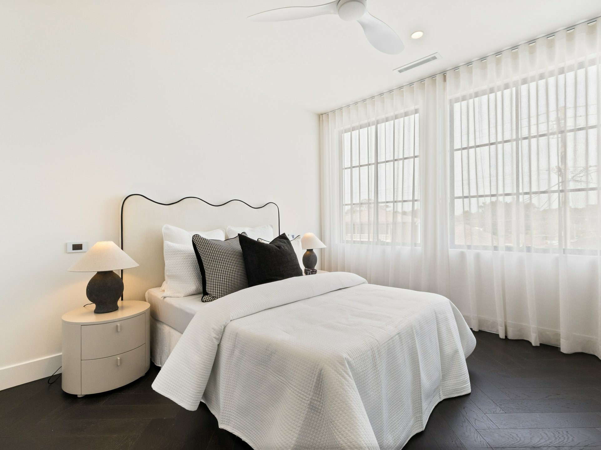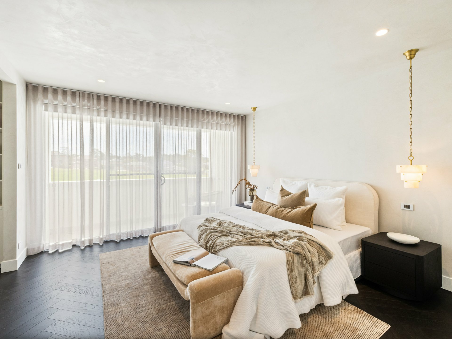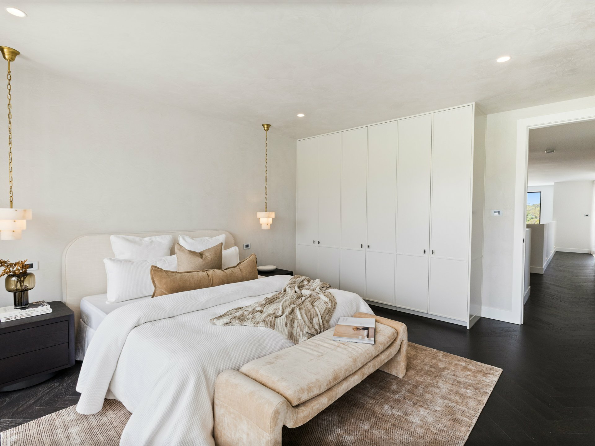 • Fully Venetian-plastered main bedroom for timeless elegance and texture