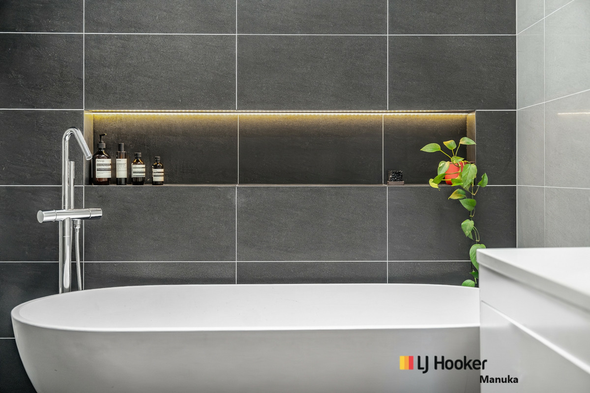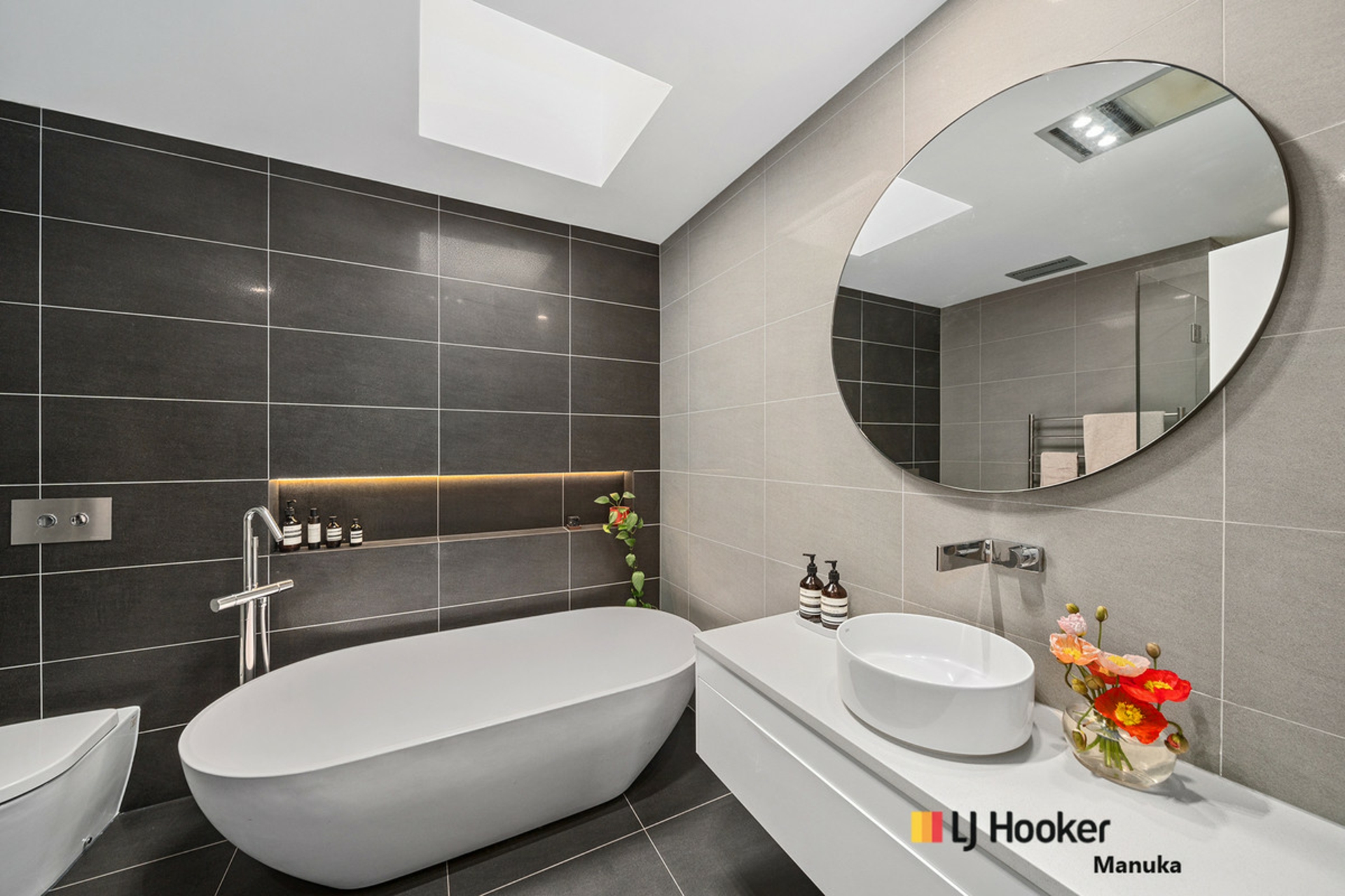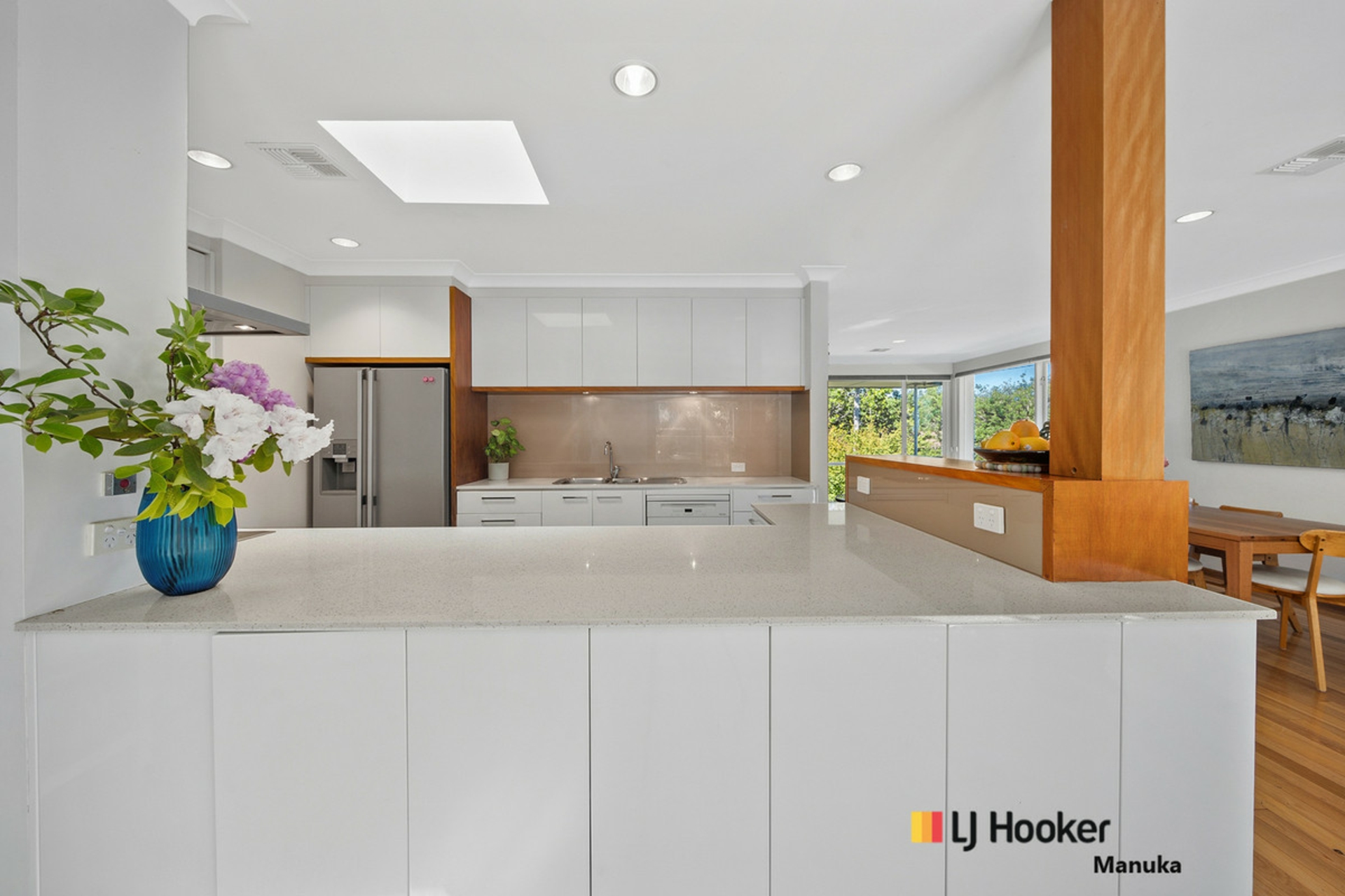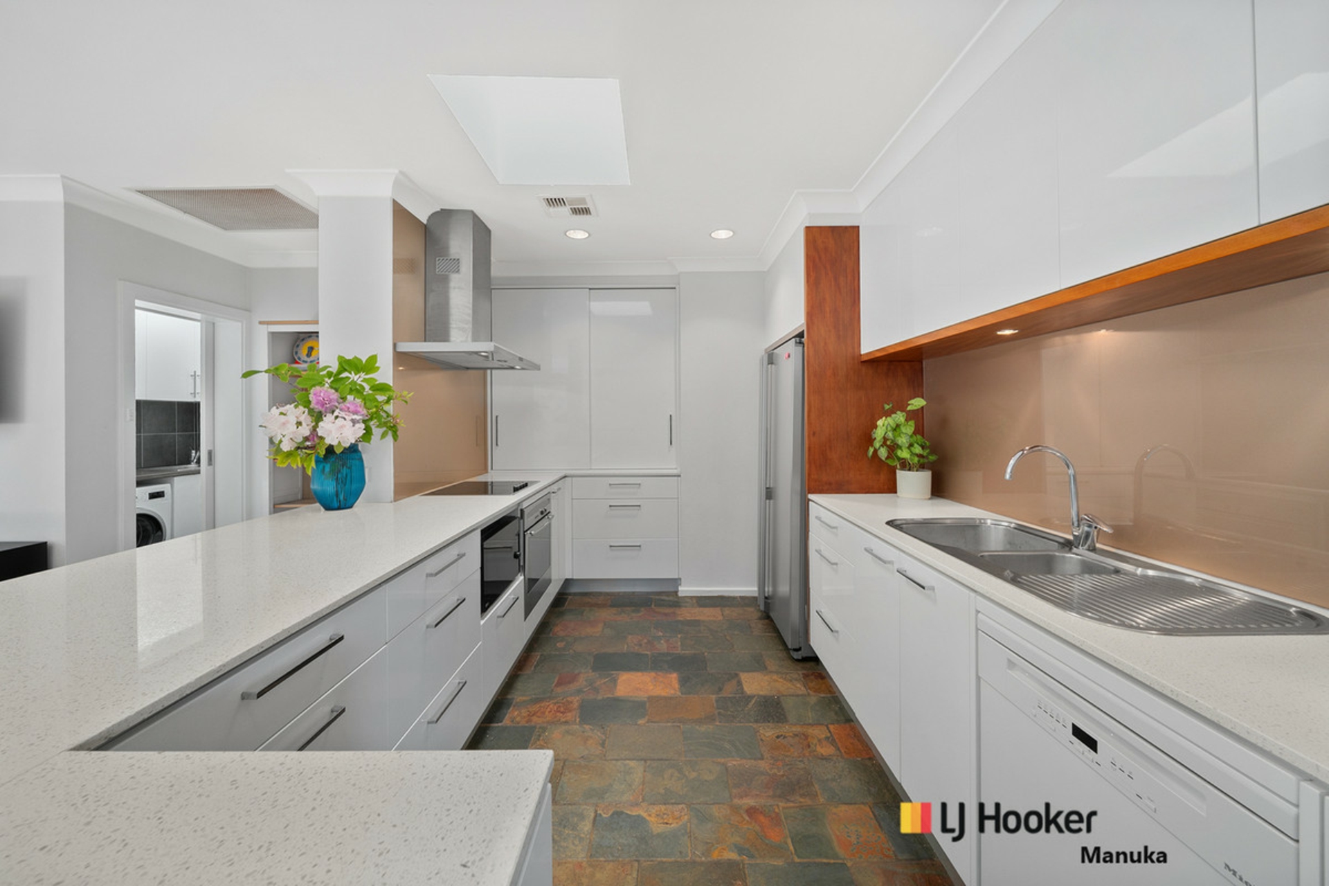 At the heart of the home, the beautifully appointed kitchen impresses with Caesarstone benchtops, soft-close cabinetry, timber accents, premium Bosch and Miele appliances and a skylight that floods the space with natural light. The home's thoughtful updates continue through the laundry that is complete with generous storage and its own skylight as well as the main bathroom, which features full-height tiling and a luxurious freestanding stone bathtub, adds a sense of sophistication and indulgence to the home