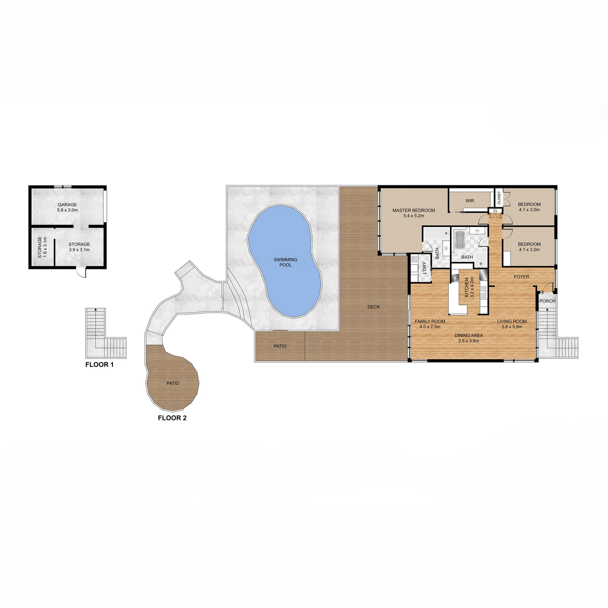• Expansive timber deck overlooking pool