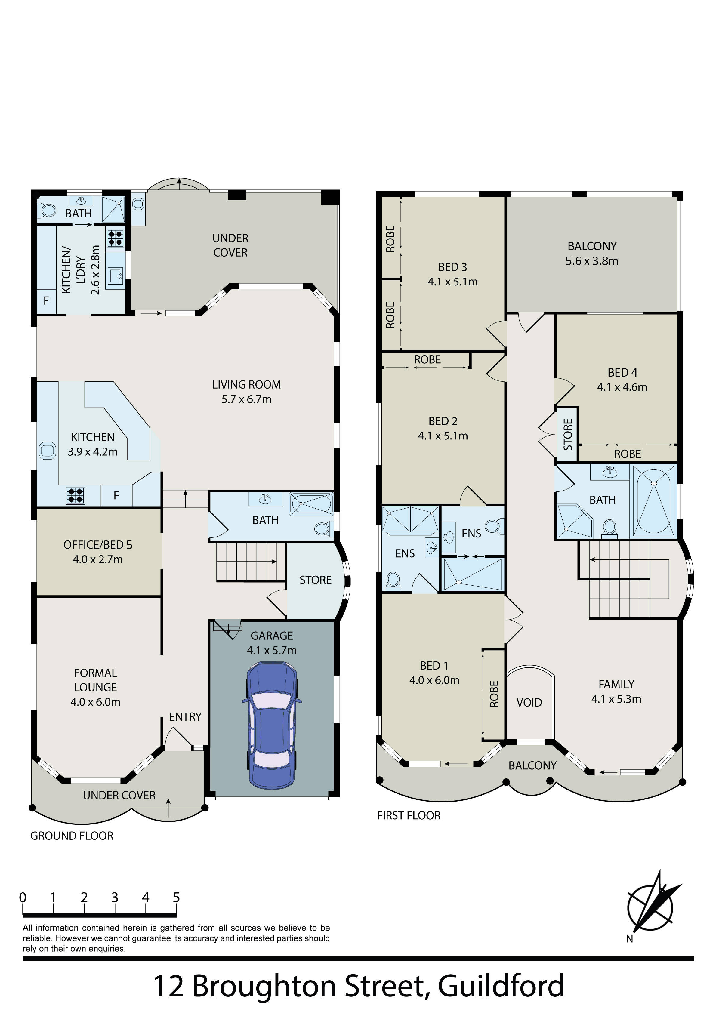 • 5 spacious bedrooms, including 2 master suites with ensuites