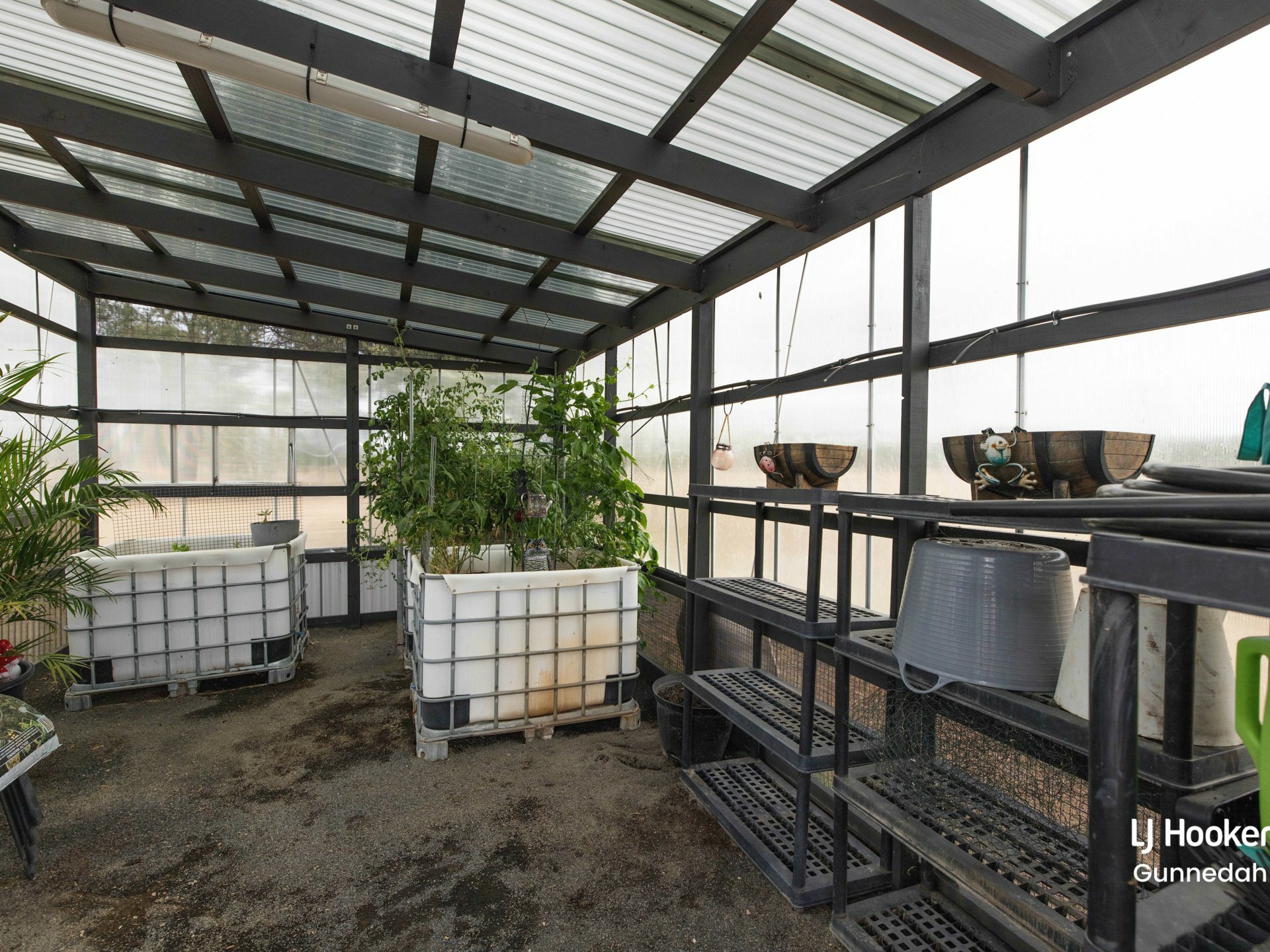 - Beautiful greenhouse set up with lights, power and watering system