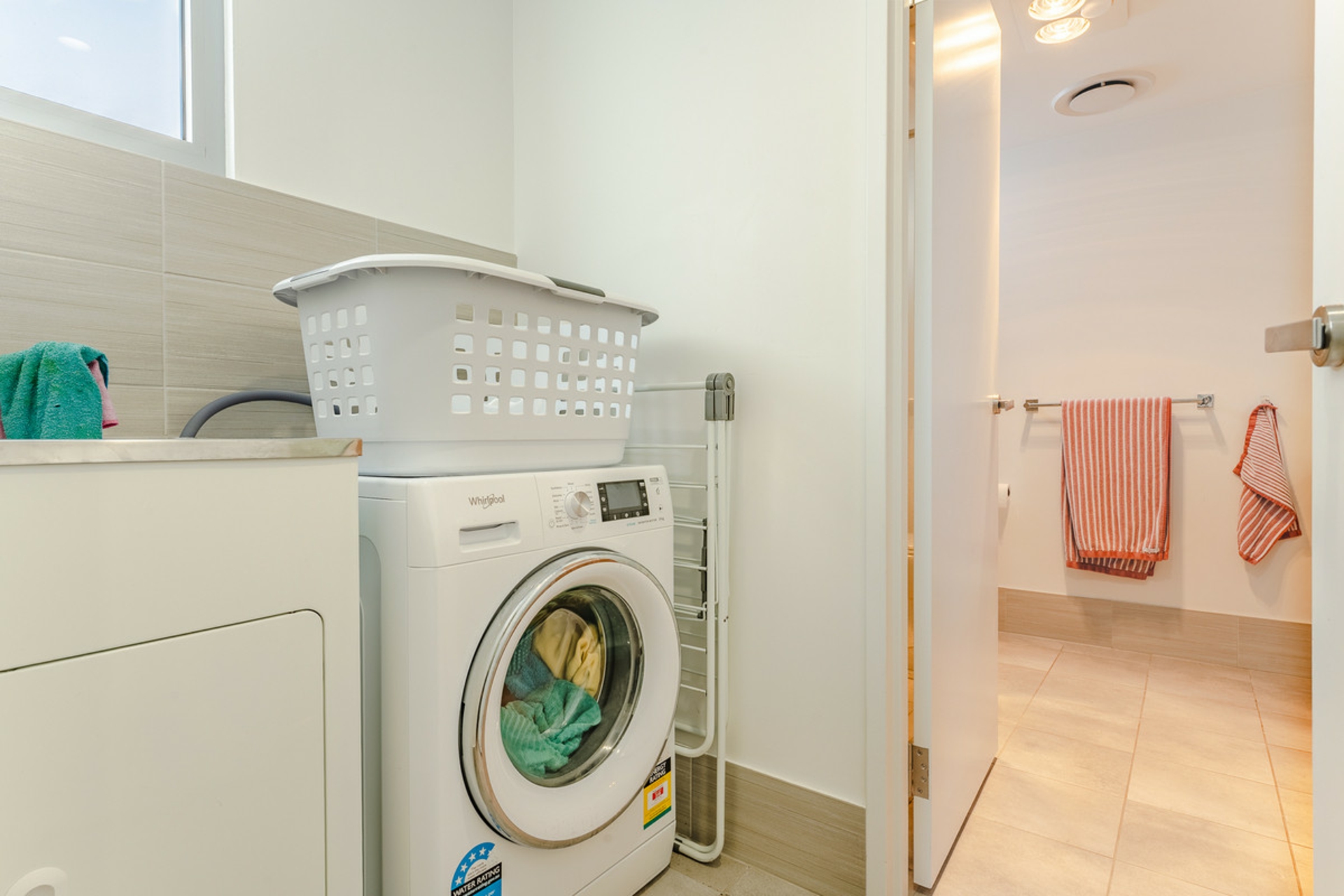 •Separate laundry with ample linen storage