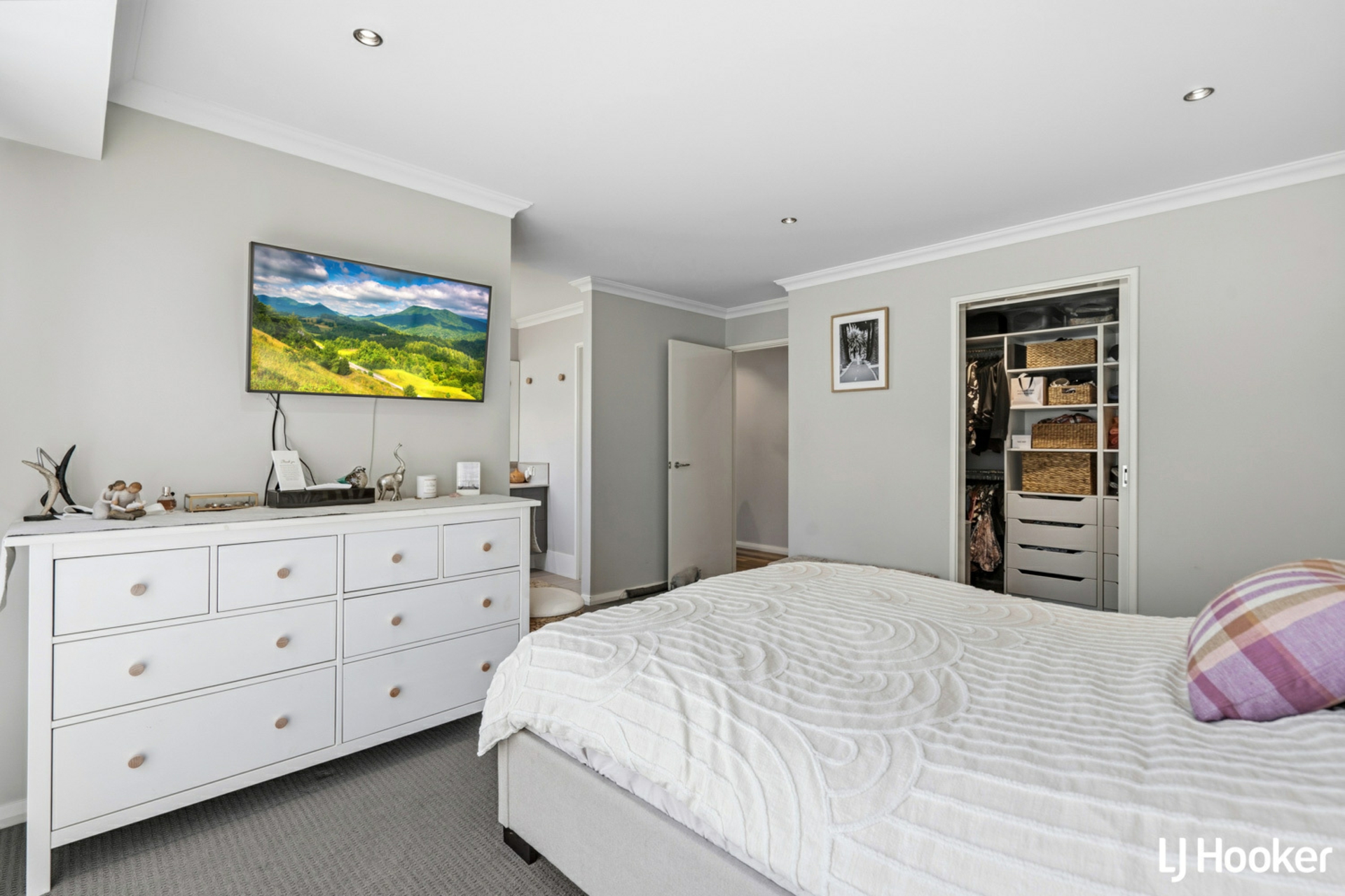 The king-sized master suite offers a luxurious retreat featuring pendant lighting, TV point and a large walk-in wardrobe with custom cabinetry. The beautifully designed ensuite is complete with stone benchtops, double vanities, spacious shower and a separate WC, creating a true hotel-style experience.