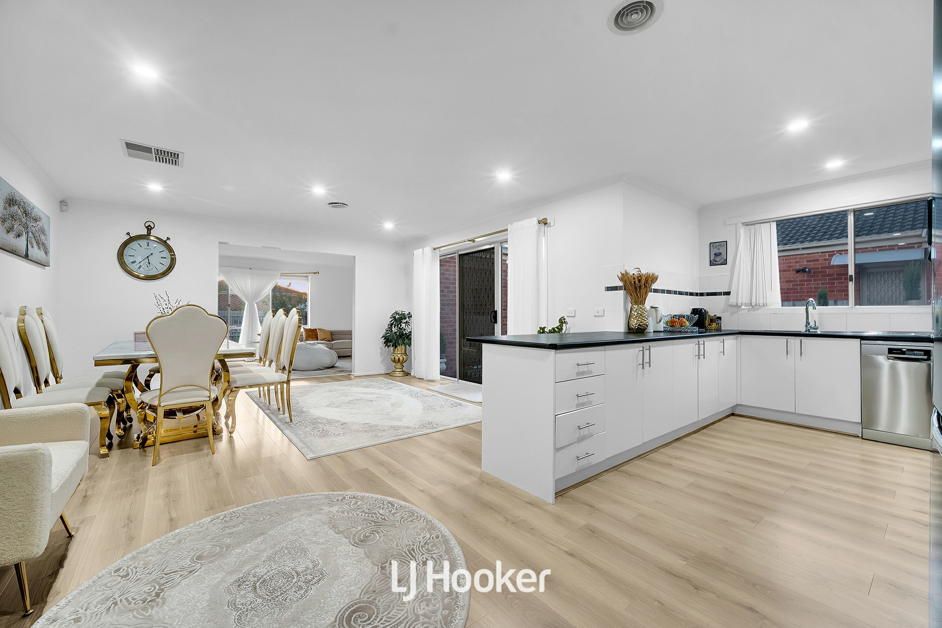 Upon entry, you are welcomed by a spacious formal lounge, creating a warm and inviting first impression. Moving through the home, the expansive open-plan family and dining area forms the heart of the residence, seamlessly connecting to a well-appointed kitchen featuring quality appliances, ample cabinetry, and a practical layout designed for effortless everyday living and entertaining.