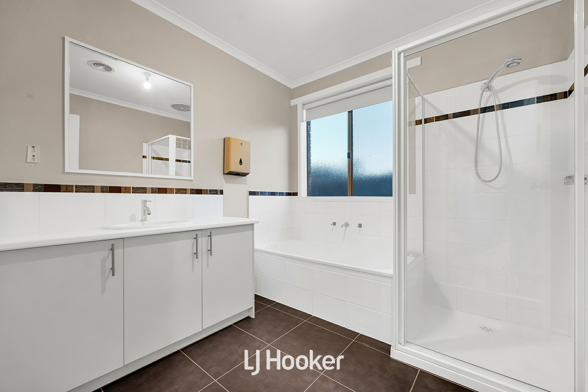 -Two sleek bathrooms