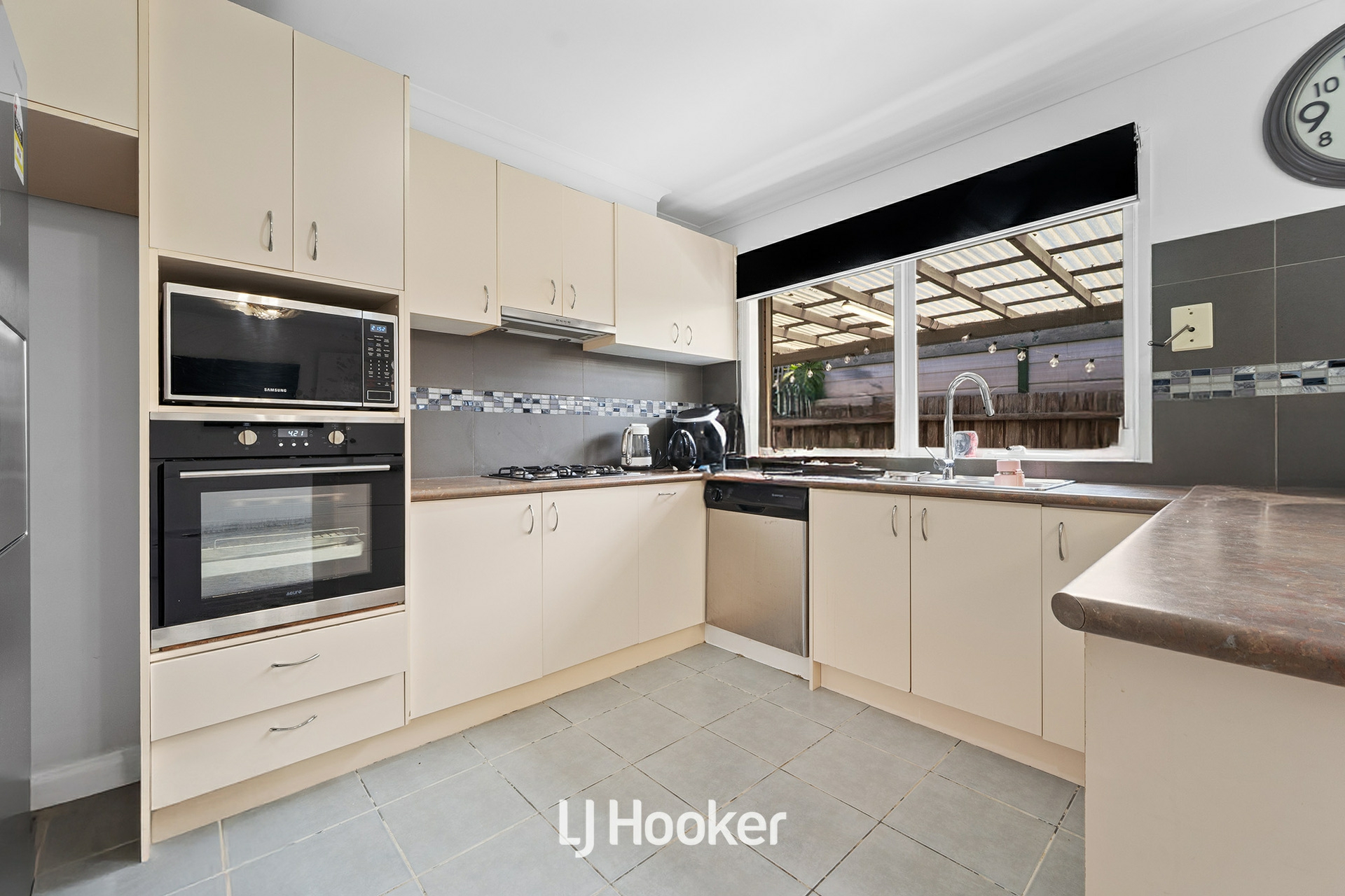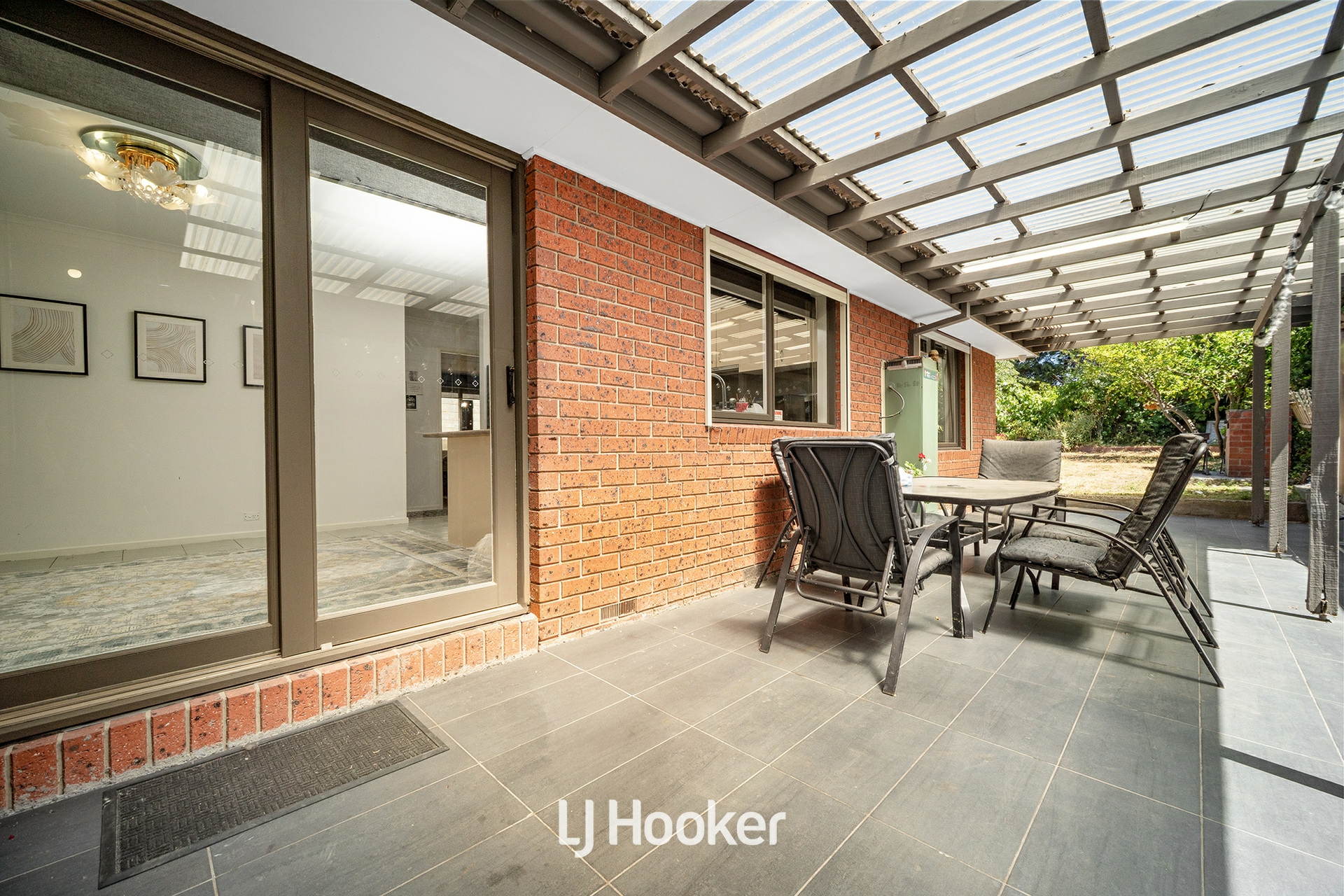 Stepping outside, the covered alfresco area provides an ideal setting for outdoor entertaining, overlooking a generous backyard complete with water tanks, garden space and a shed-perfect for families, pets or those who enjoy outdoor living.