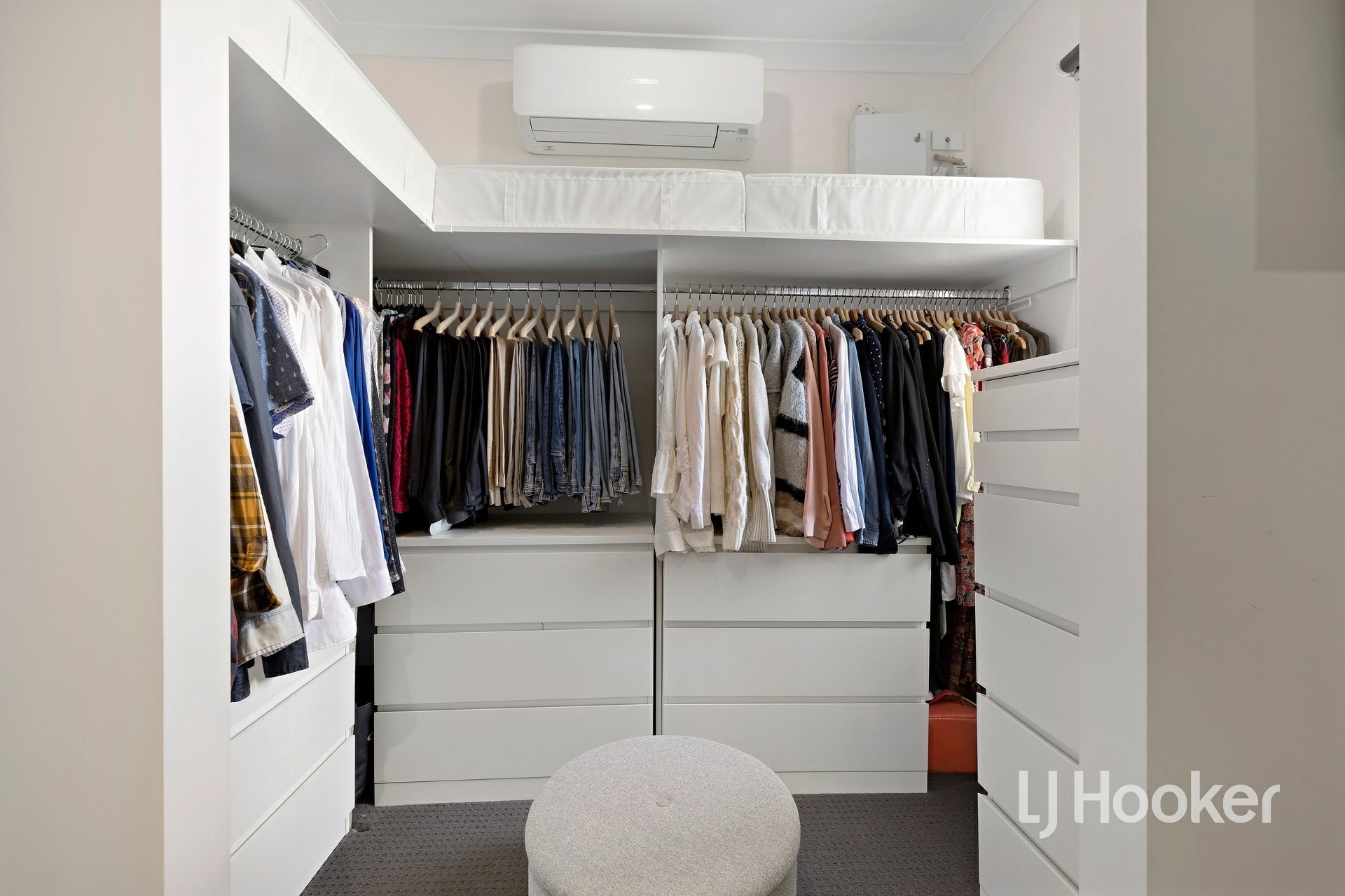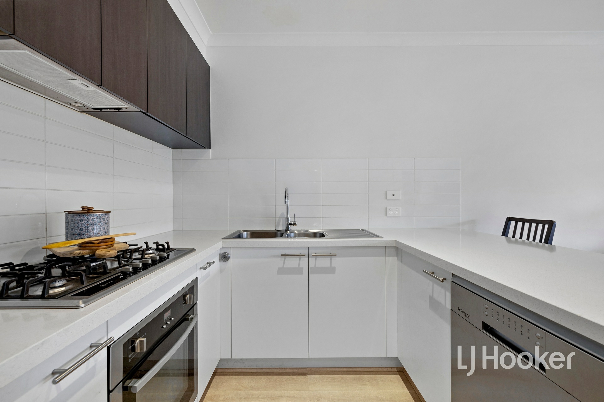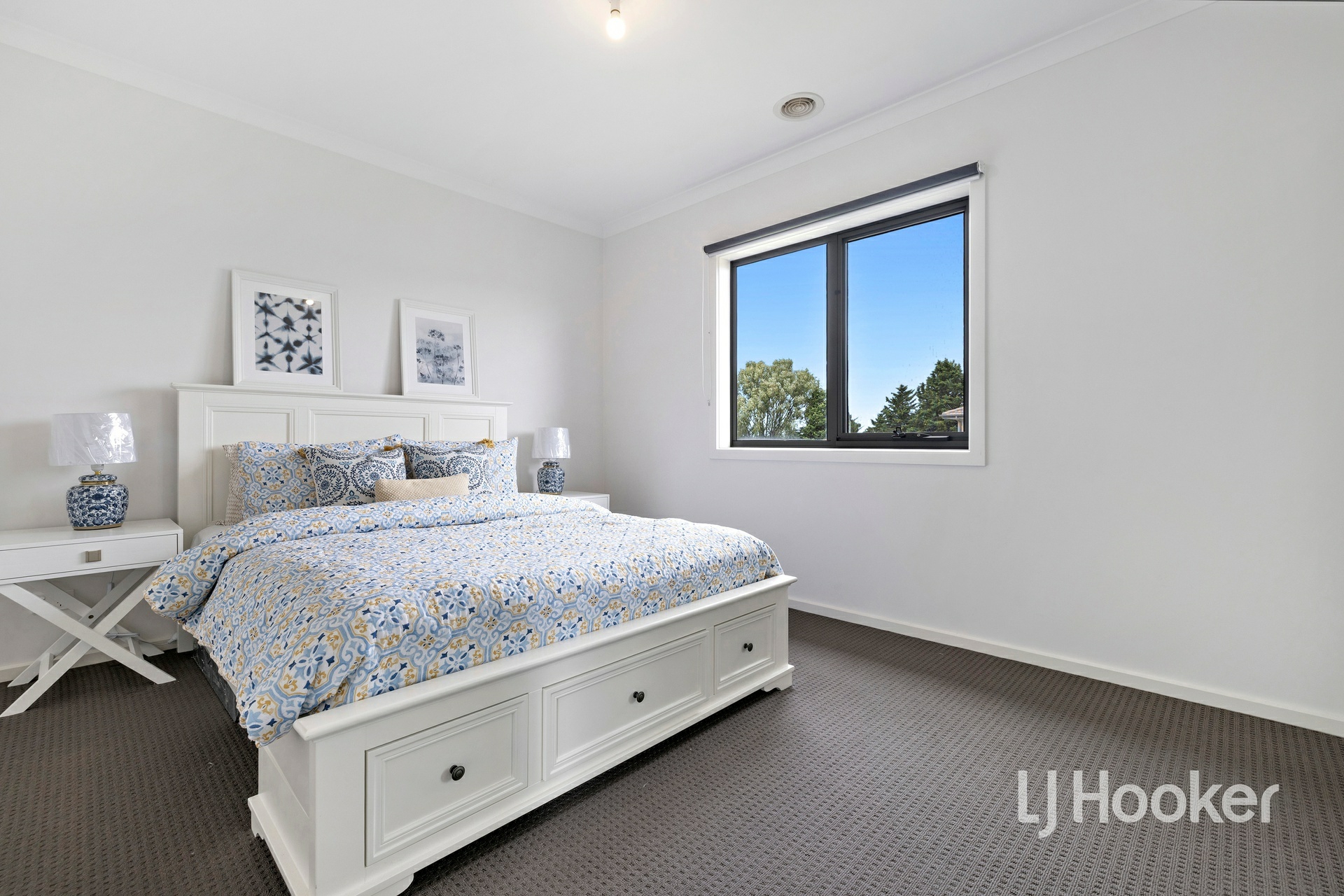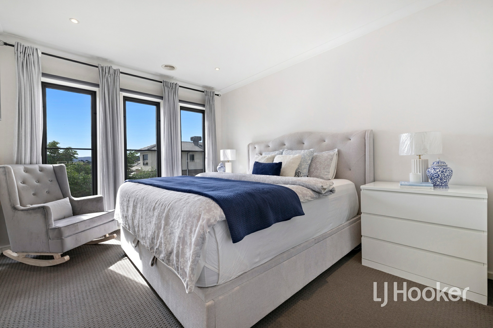 Upstairs, there are two well-sized bedrooms, each fitted with mirrored built-in robes, serviced by a large central bathroom complete with a skylight that fills the space with natural light and 40mm stone benchtops. The master bedroom is a true retreat, offering a full ensuite with his and hers vanity, a skylight, 40mm stone benchtops, a large walk-in robe, and a split system for added comfort. Enjoy a lovely outlook towards the Dandenong Ranges from the master.