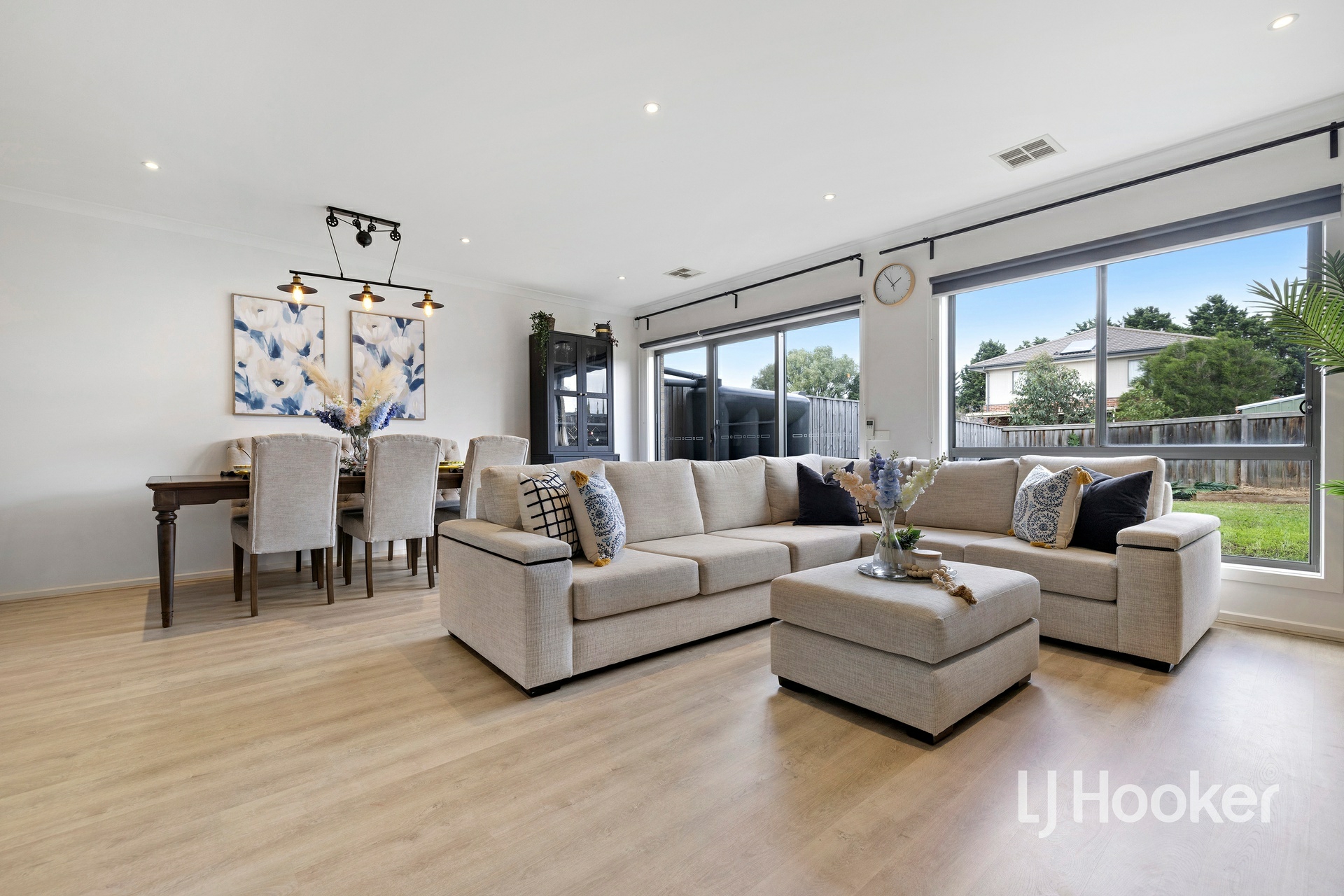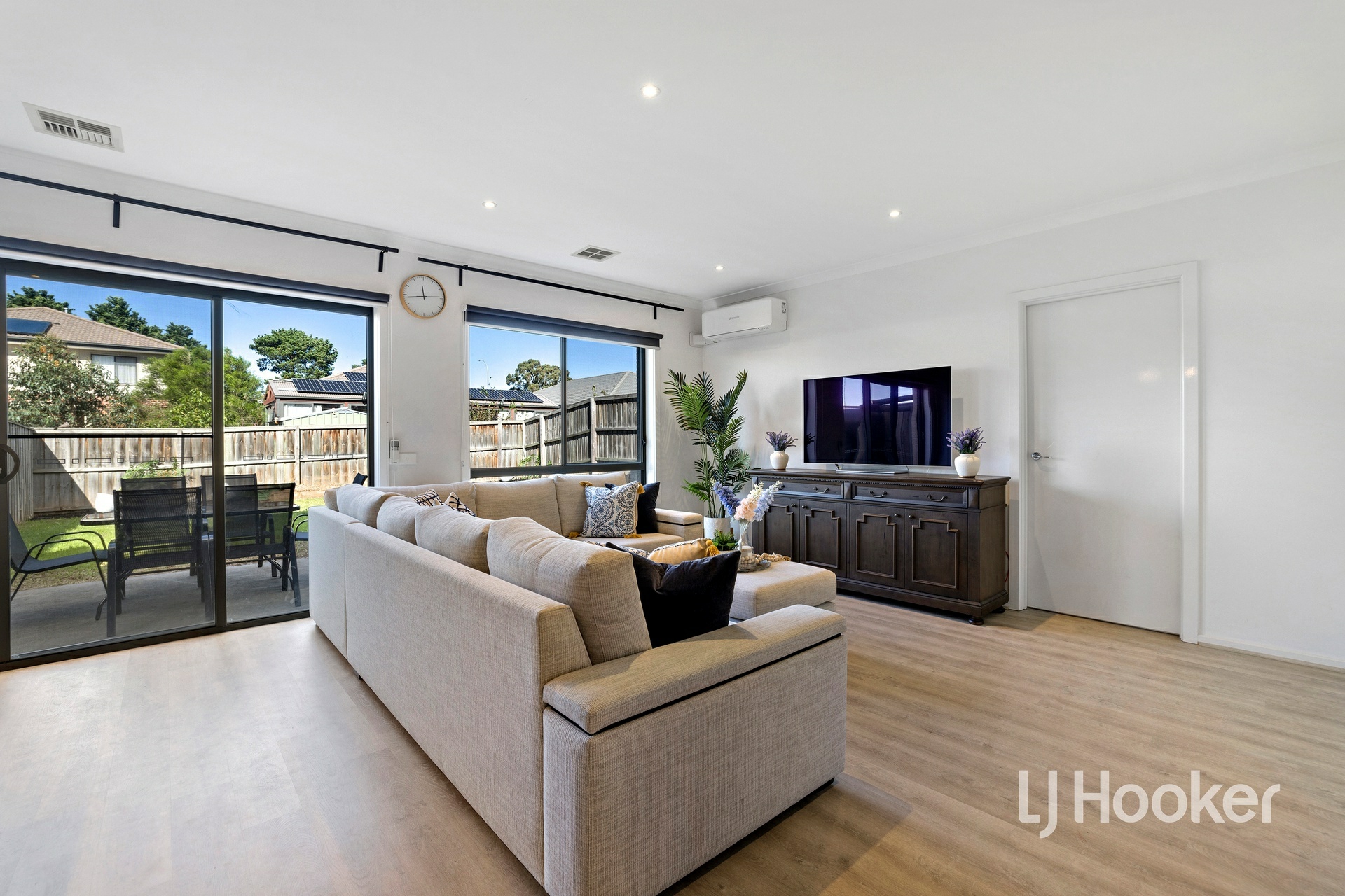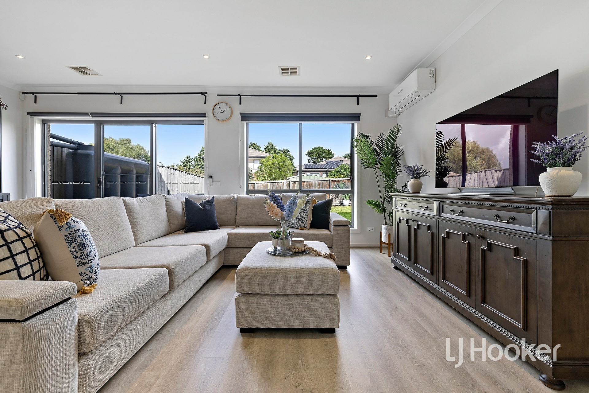 Outside, the home continues to impress with a large backyard, perfect for kids to play, along with a concrete patio area for outdoor entertaining and a water tank for added practicality.