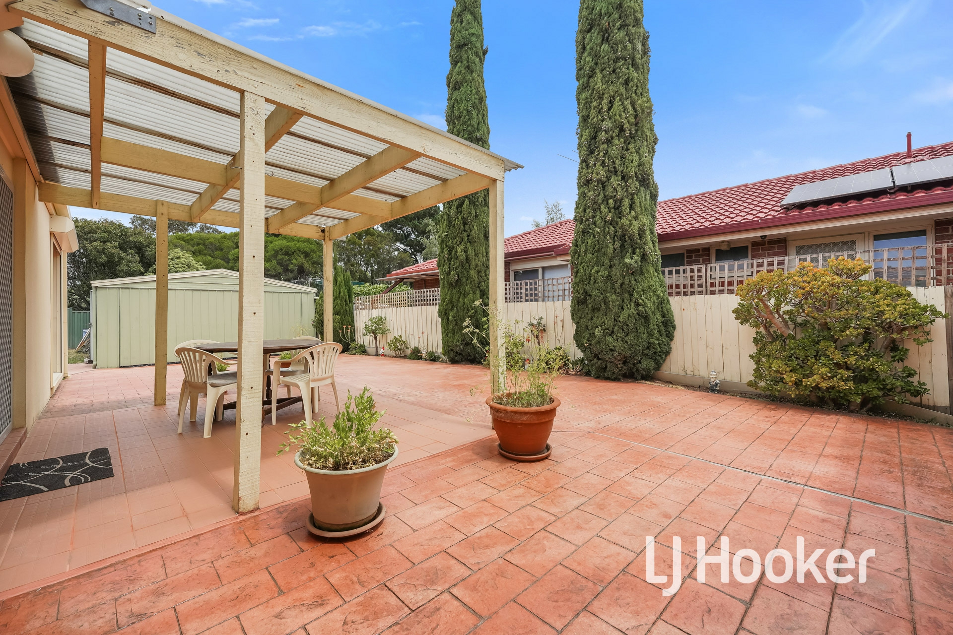 Comfort is assured all year round with ducted heating, air conditioning, alarm system and stylish floorboards throughout. Step outside to the covered pergola, ideal for outdoor entertaining, while roller shutters add extra security and peace of mind.