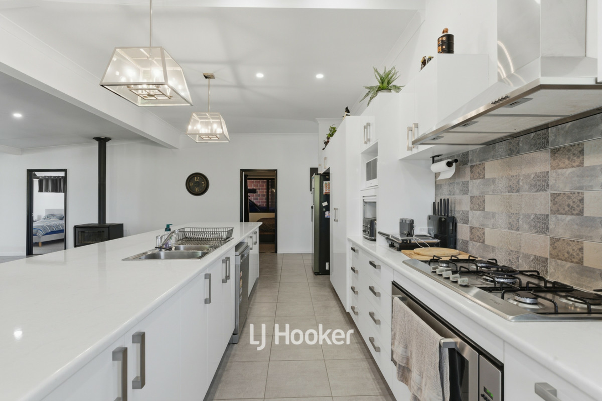 This beautifully presented home is packed with comfort, space and thoughtful upgrades, offering everything you need for relaxed family living and effortless entertaining. Inside, you'll find multiple reverse cycle air conditioners - even WiFi controlled from your phone - along with ceiling fans, quality blinds and a cosy wood fire to keep you comfortable all year round. The generous kitchen is the true heart of the home, featuring a massive double fridge recess, huge double-door pantry, double sink, dishwasher and impressive 900mm appliances, all overlooking the tiled living and dining areas. Bedrooms are well appointed with plush carpets, built-in comfort and great separation, while the master suite enjoys its own walk-in robe, private ensuite and direct outdoor access.