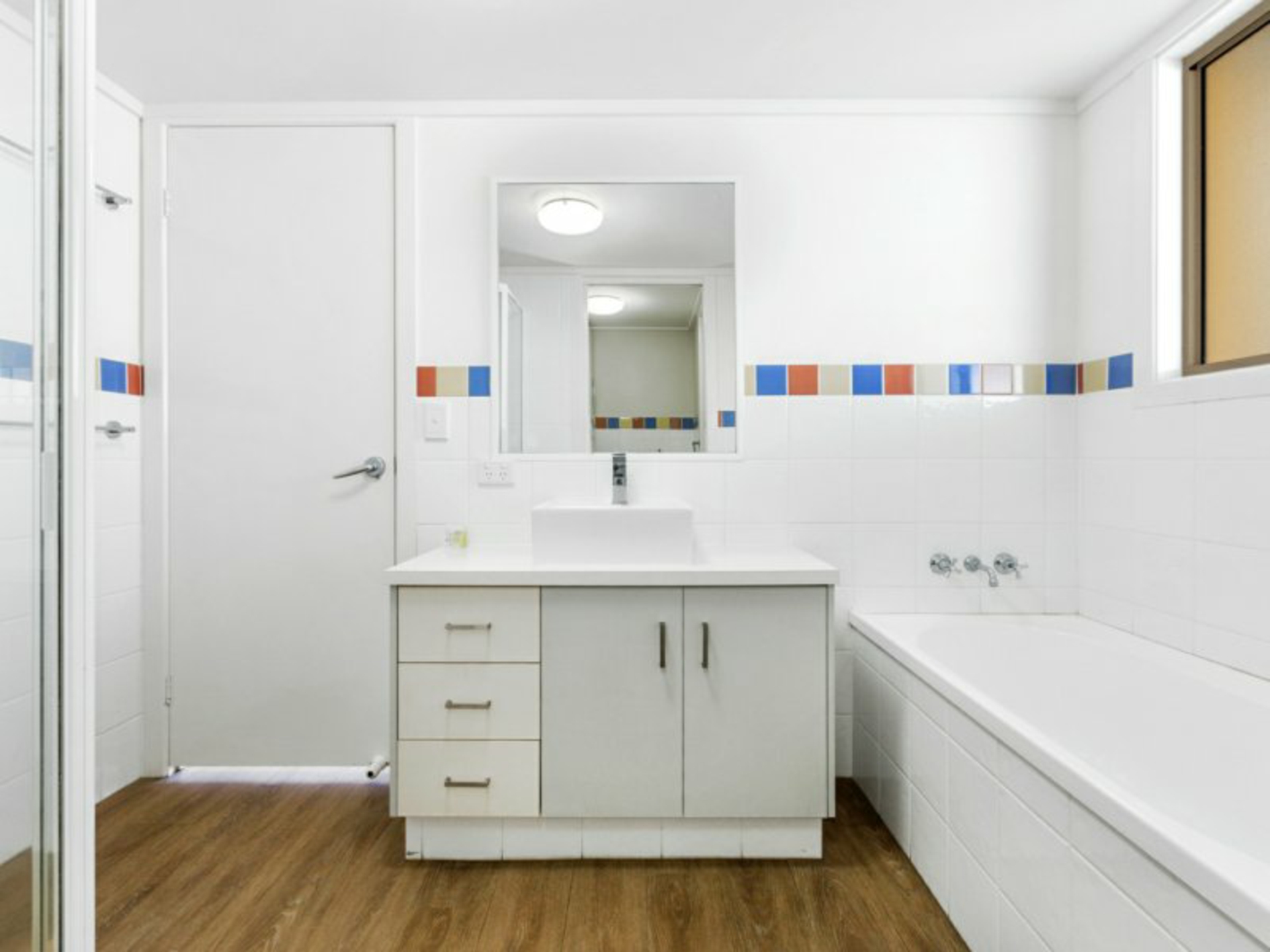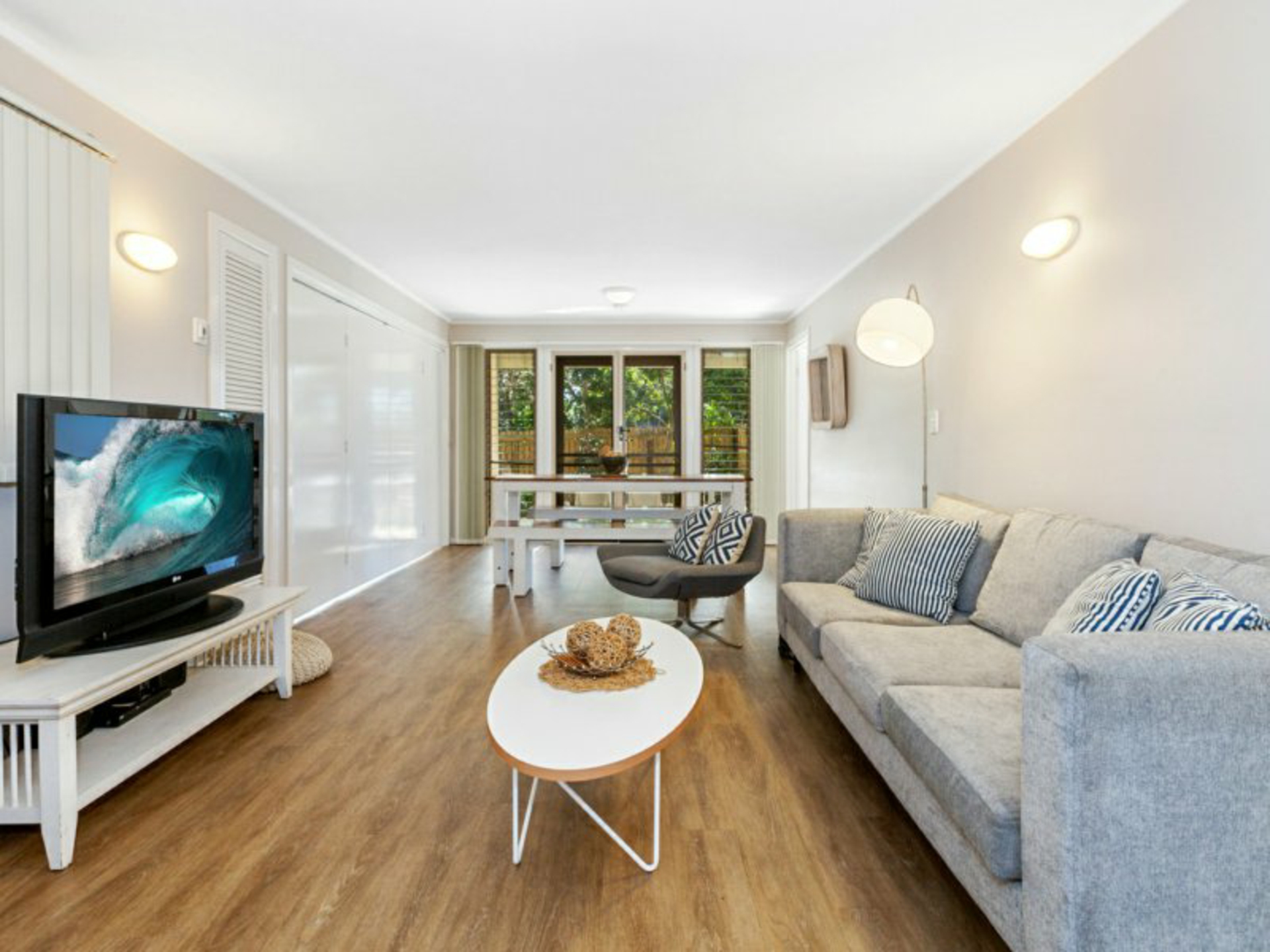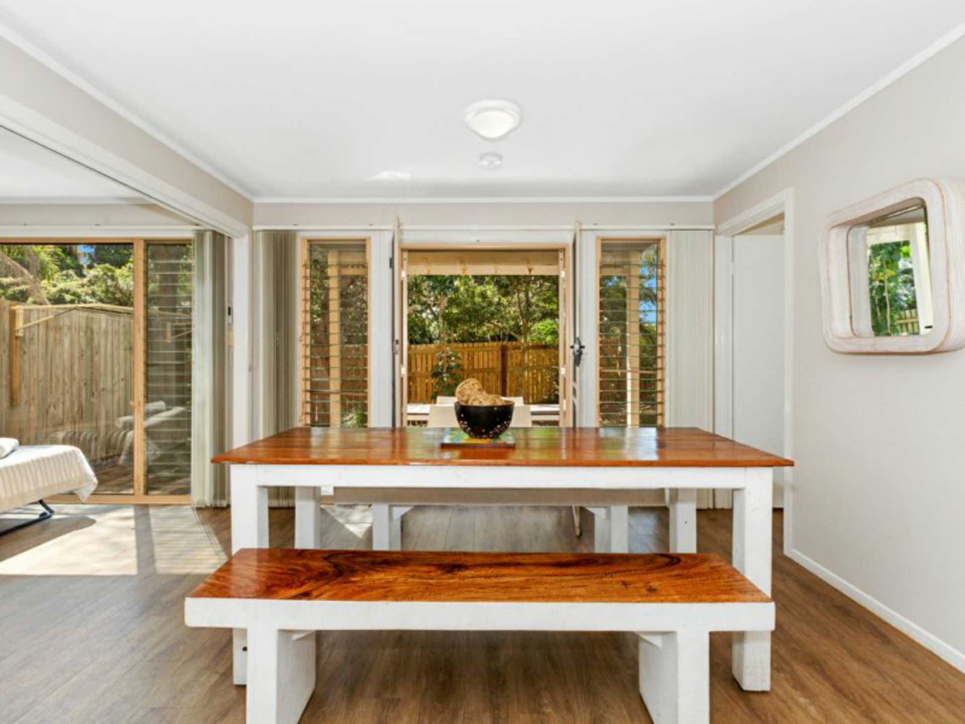 - Hybrid timber flooring to living and bedrooms