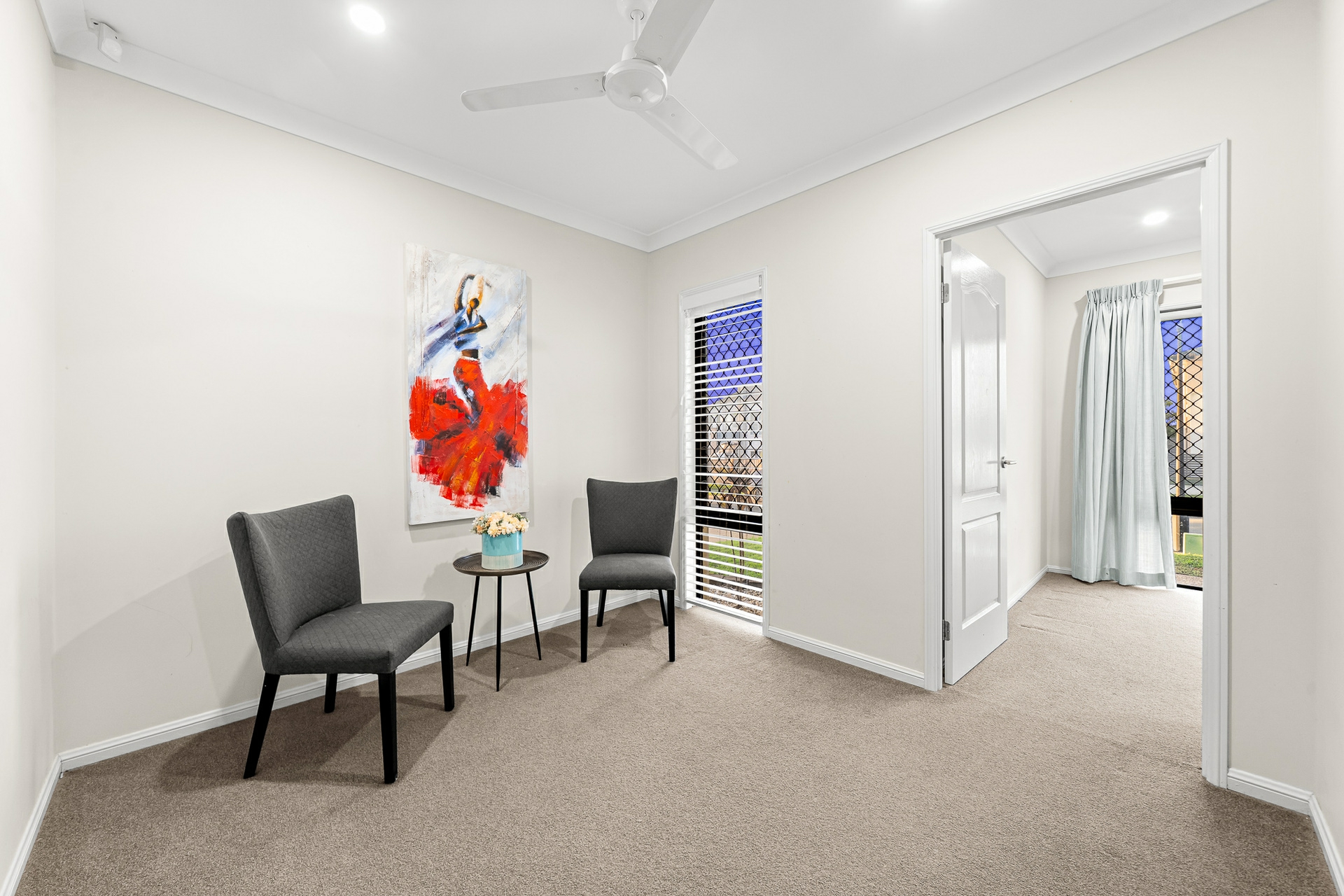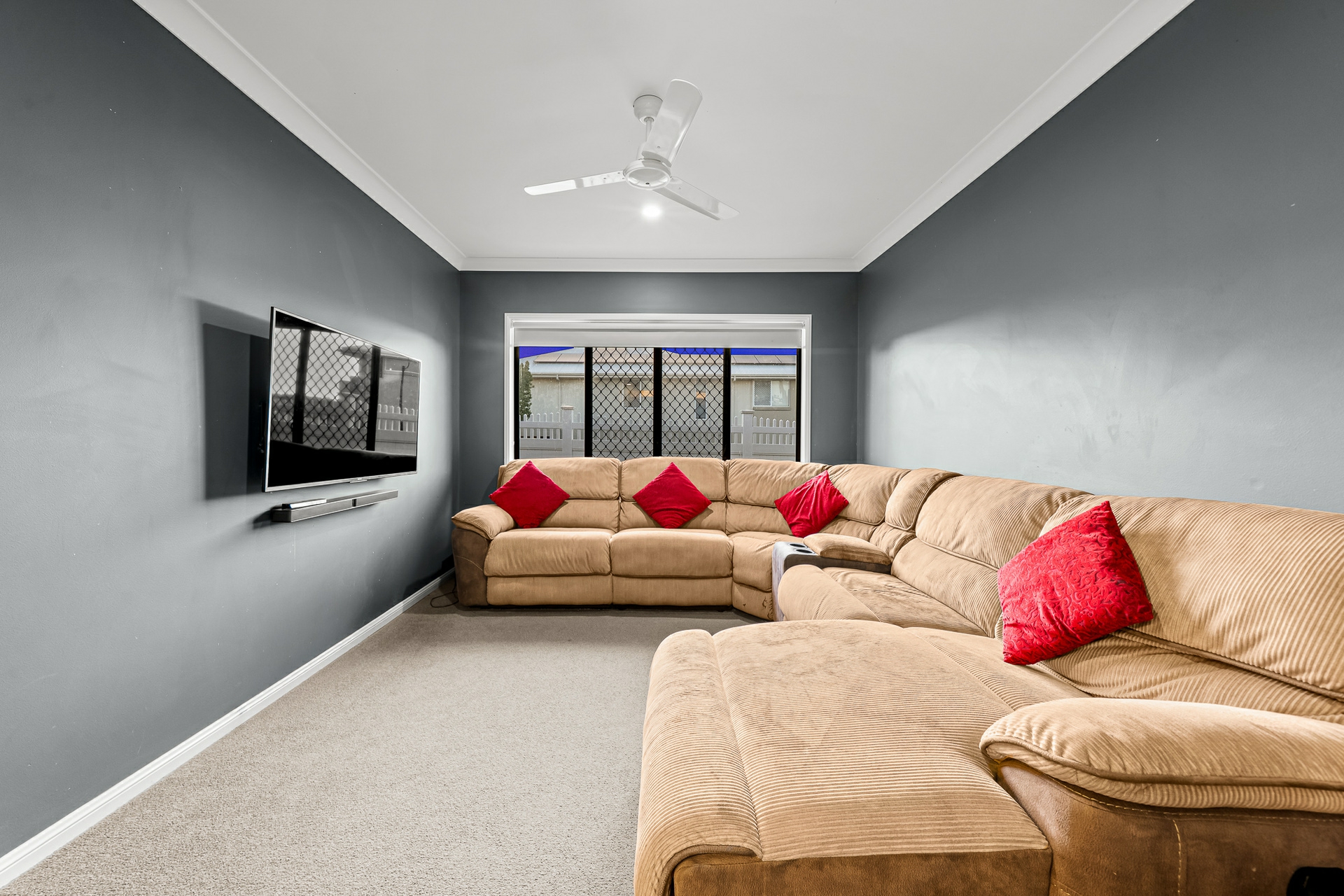 Designed for comfort year-round, the home includes split system air conditioning, with units in the master bedroom and main living area, as well as ceiling fans throughout all bedrooms. Large stacker doors extend the living space out to a tiled alfresco area, creating the perfect setting for outdoor gatherings.