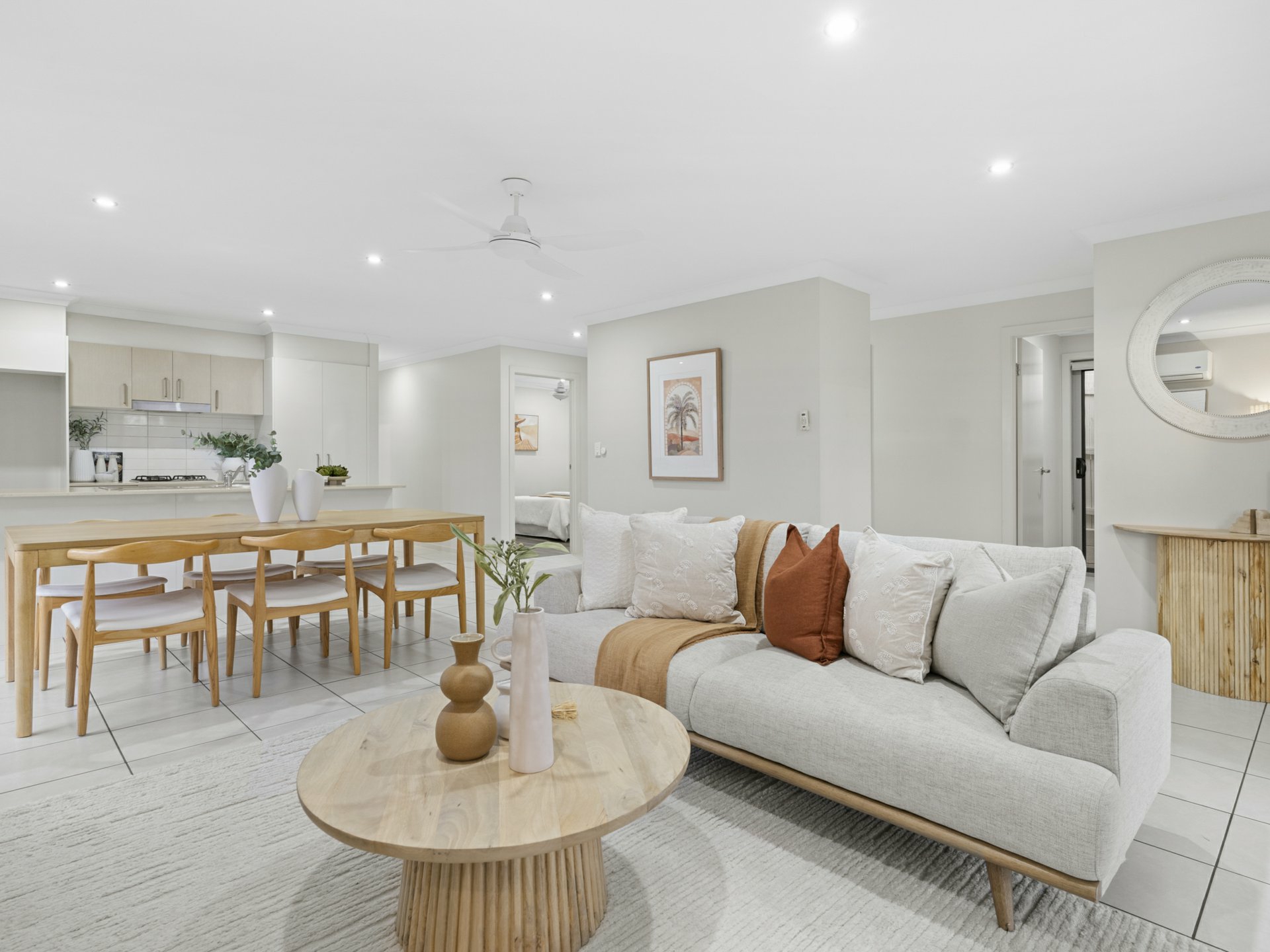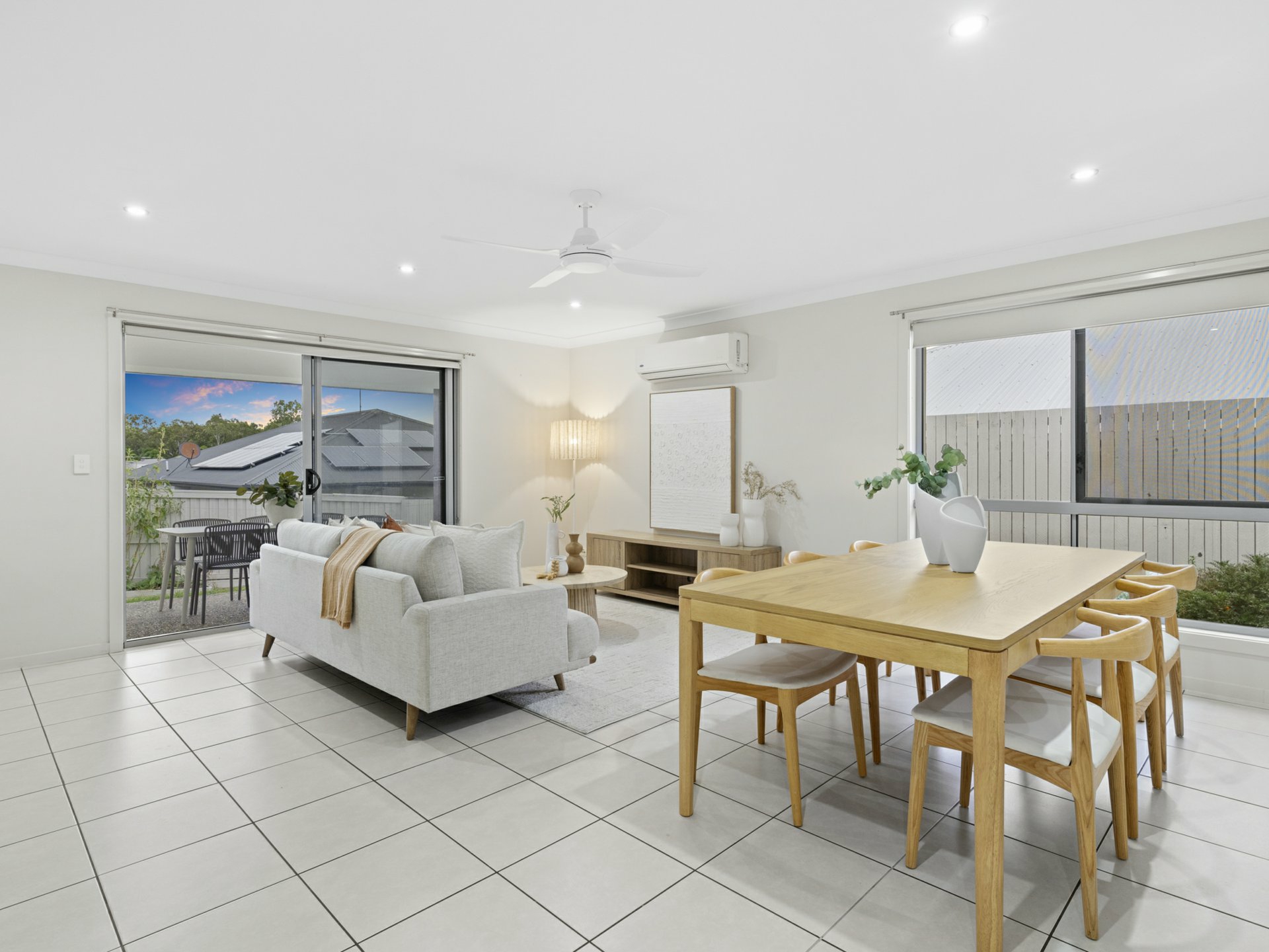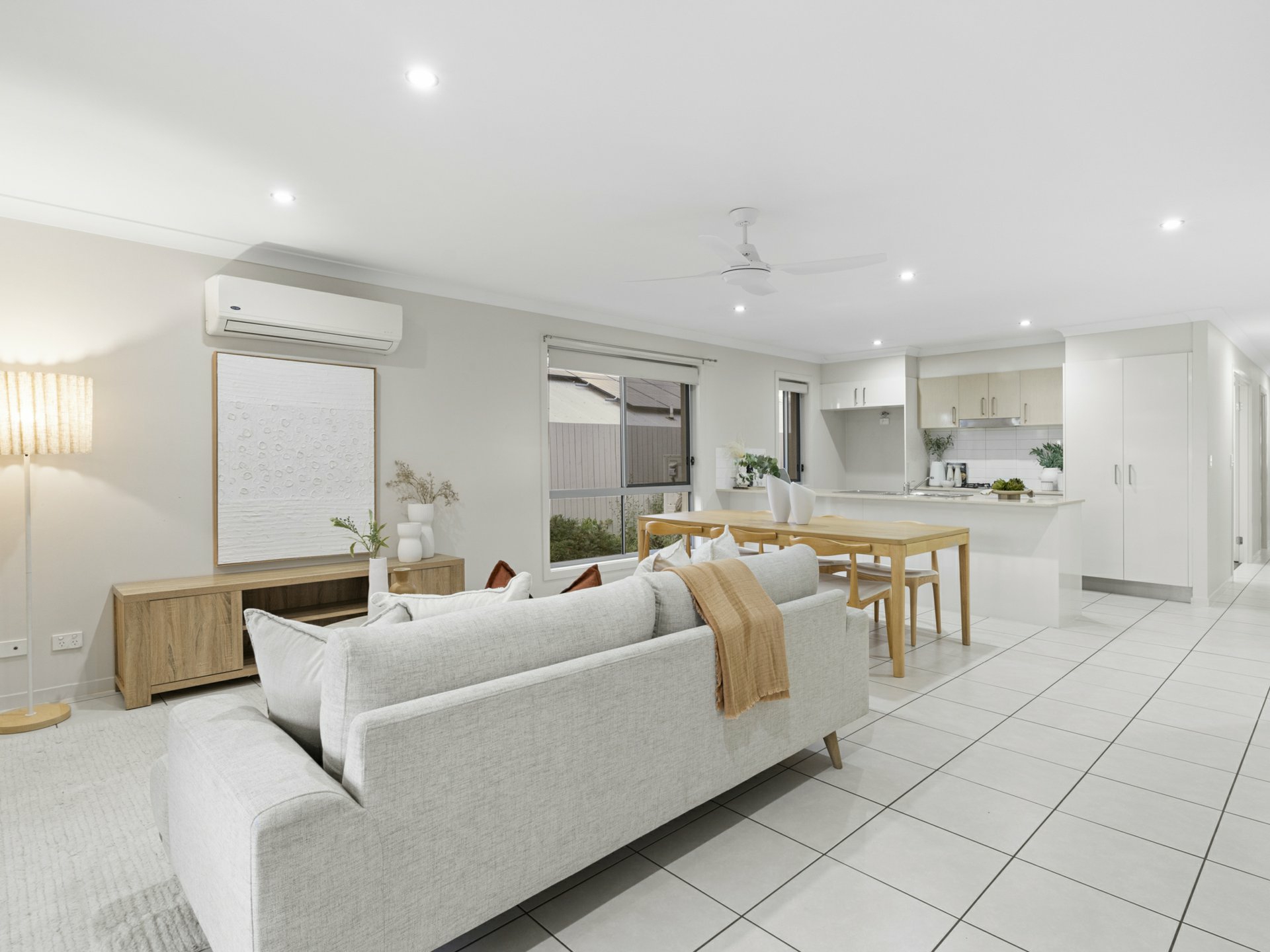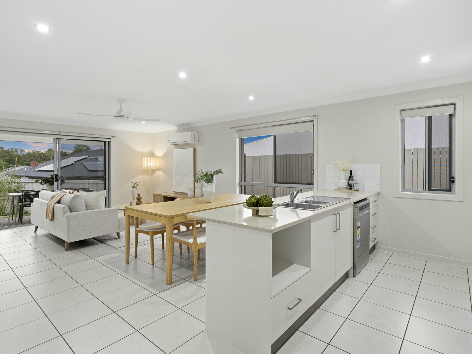 Open-plan kitchen, dining and family area with air-conditioning