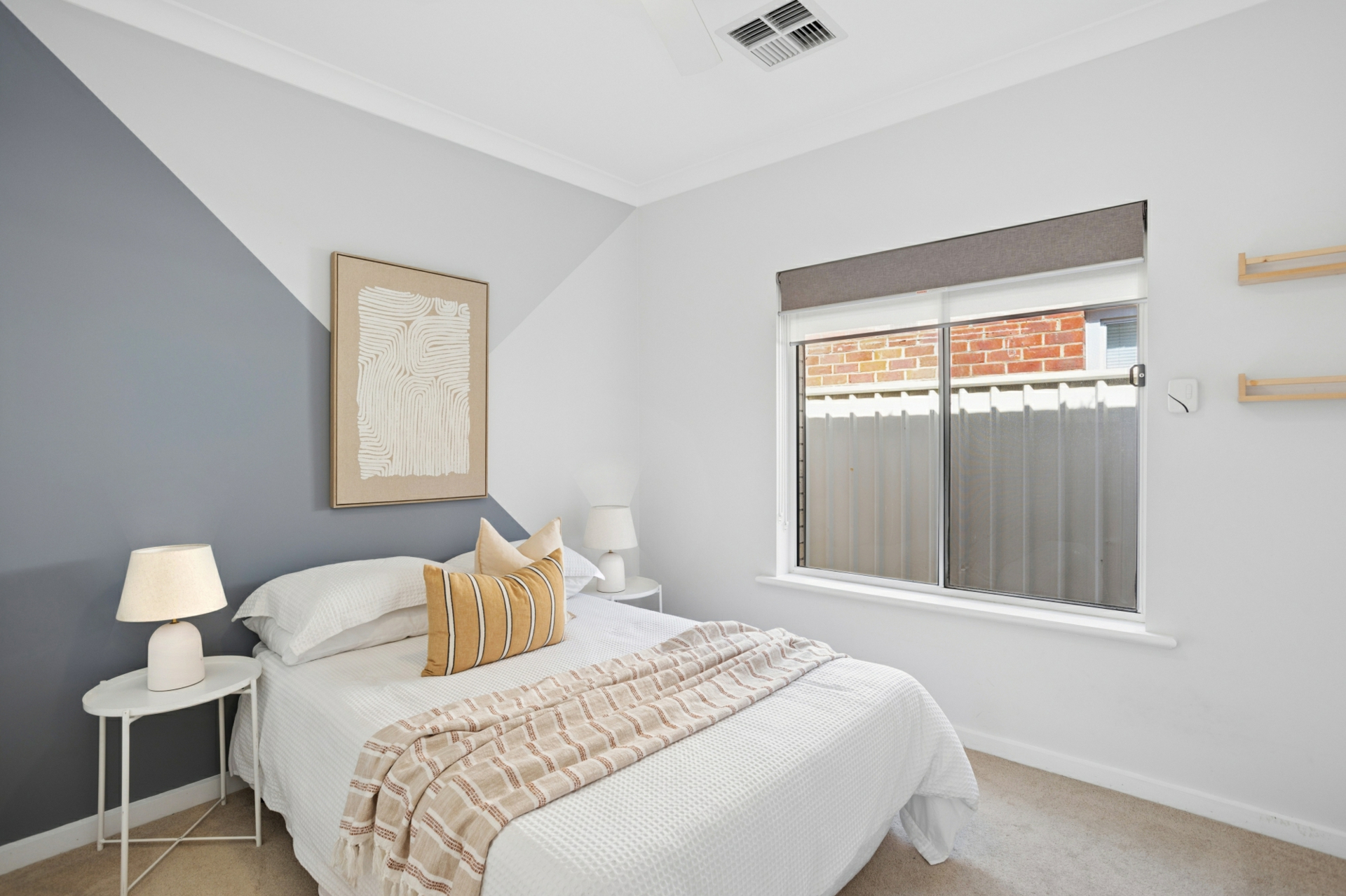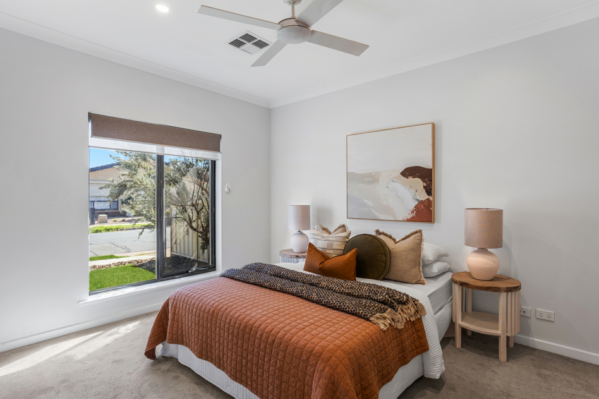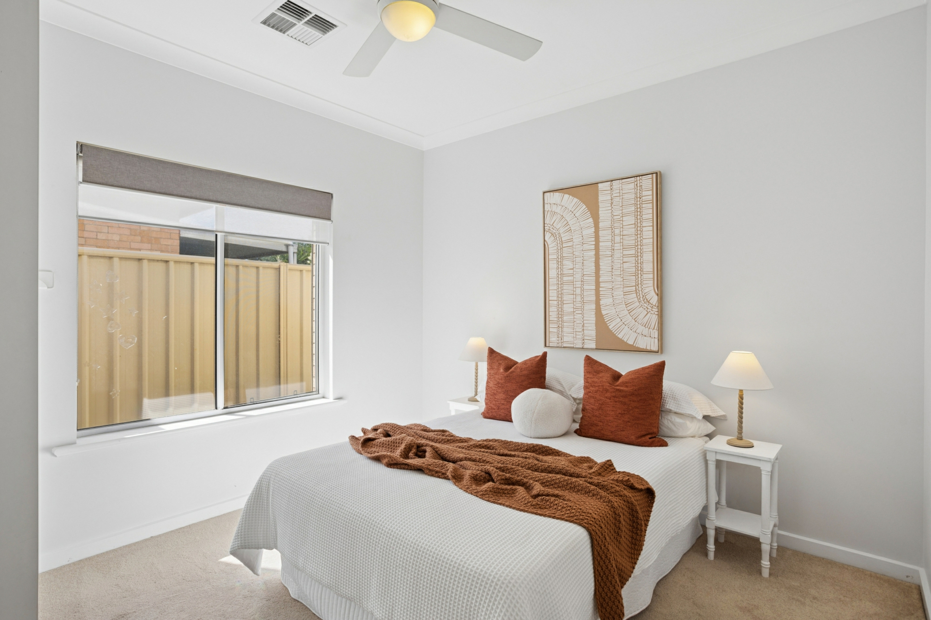 - 3 generously sized bedrooms, all with built in wardrobes, ceiling fans and electric roller shutters