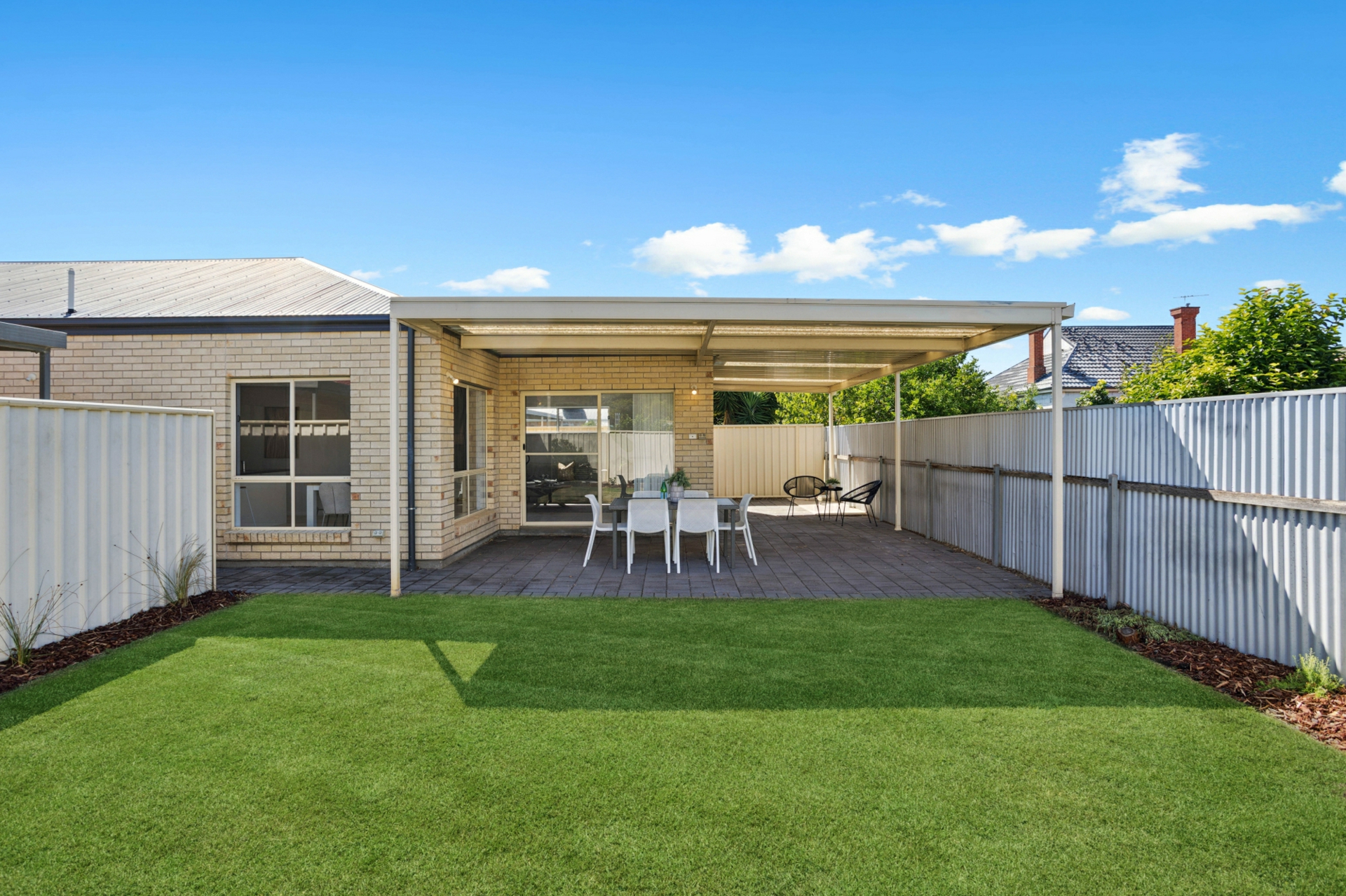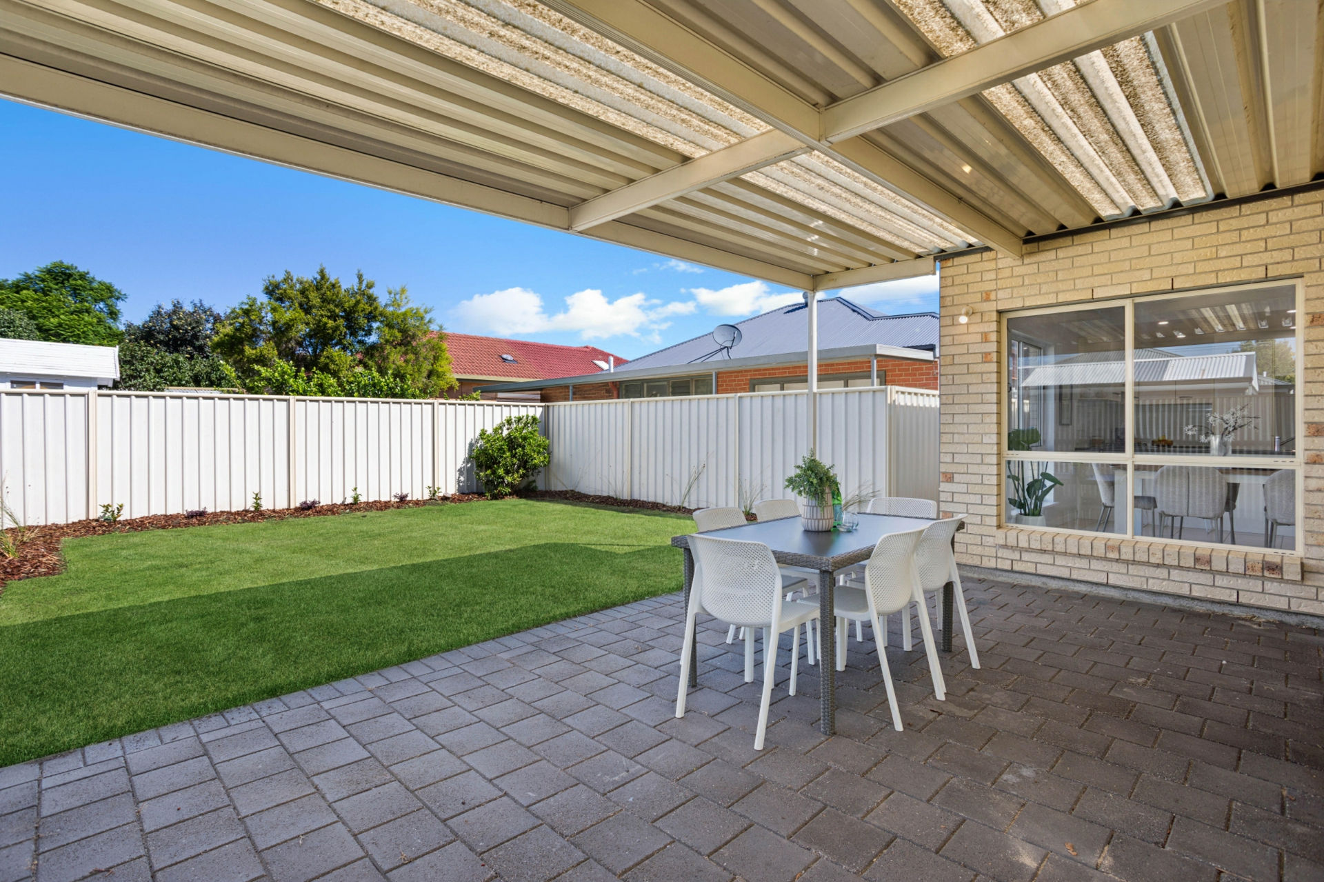 - Fully enclosed backyard with lawn area