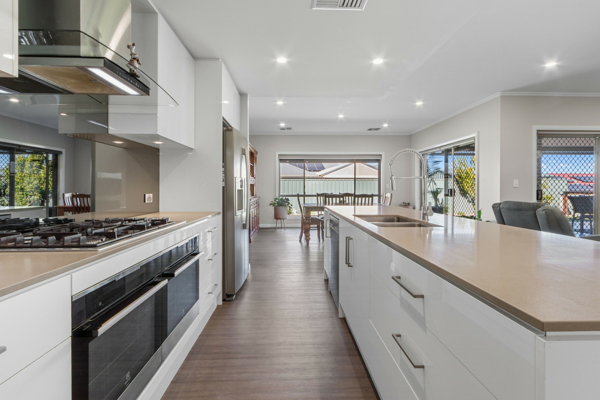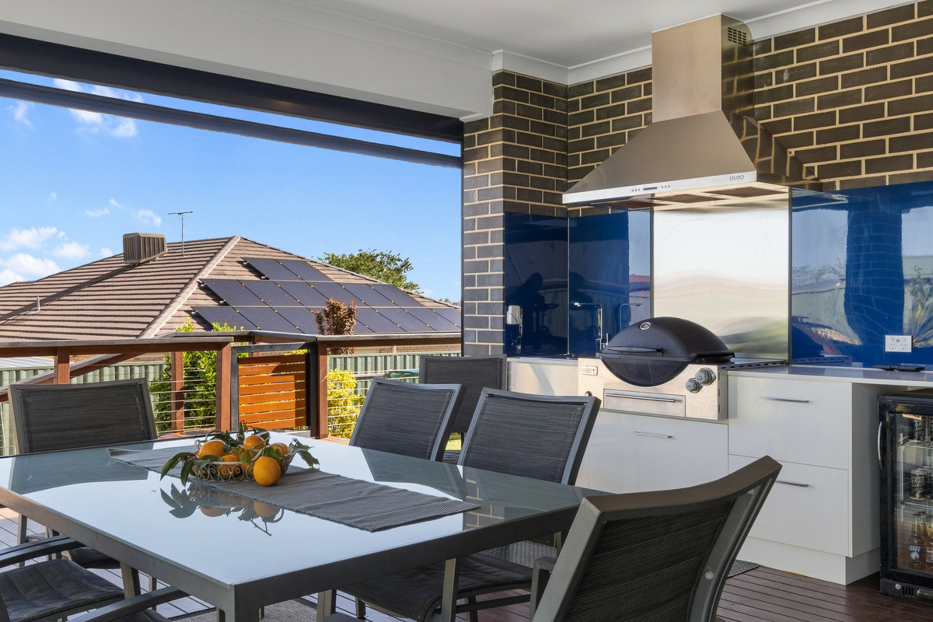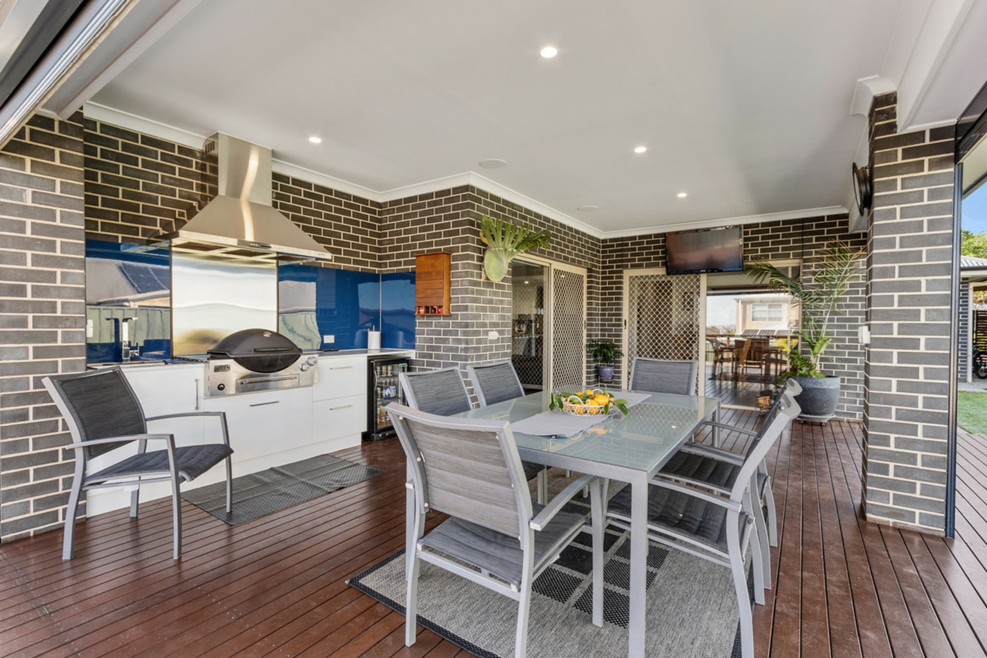 • Decked undercover alfresco entertaining area with built in outdoor kitchen & café blinds for flexible year-round use.