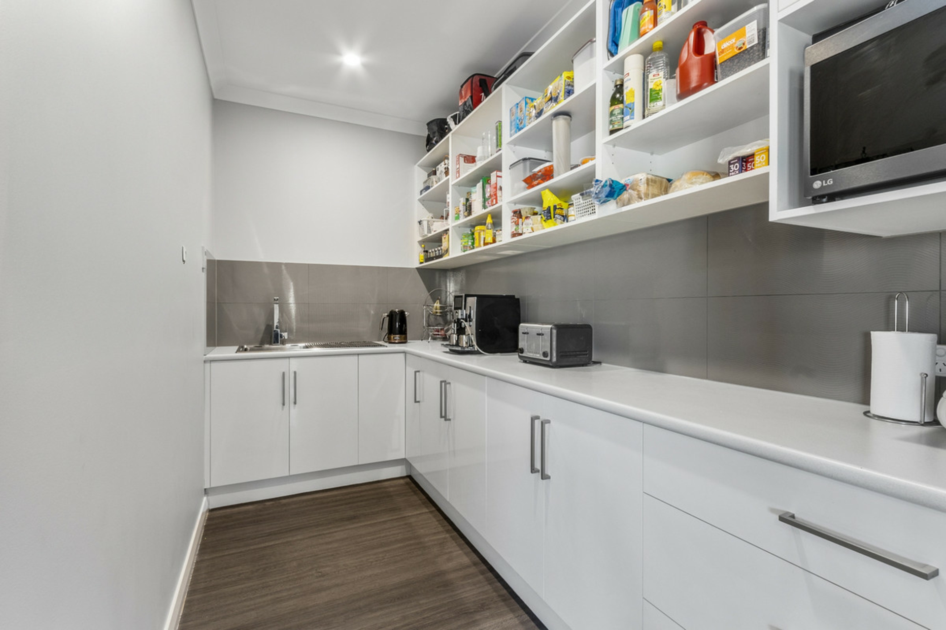 • Modern kitchen with stone bench tops, double ovens, dishwasher & wet butler's pantry.