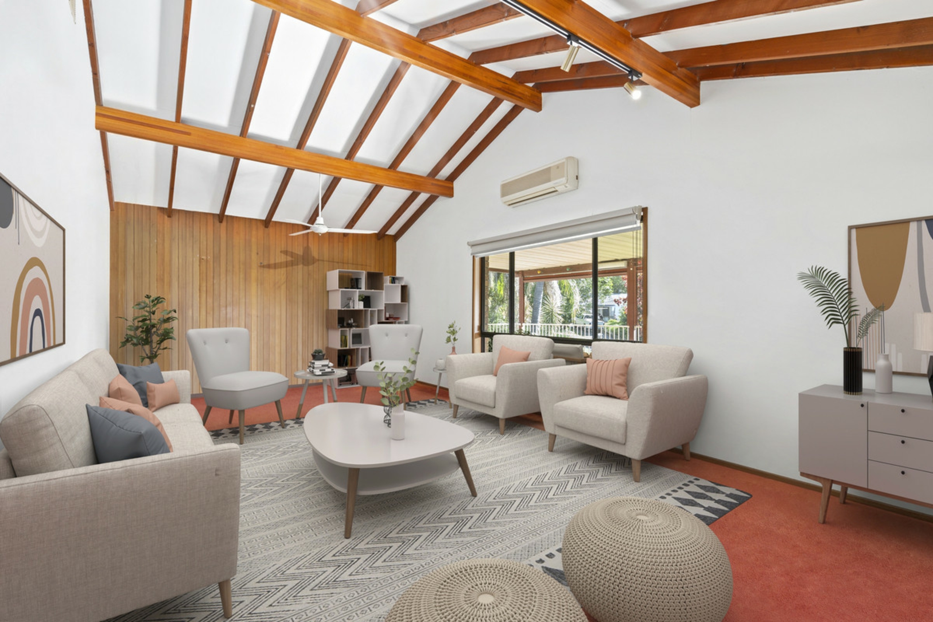 The home features raked ceilings that enhance the sense of space in the main living area, air conditioning throughout parts of the home, and a welcoming front timber deck. While the property is in original condition and can certainly do with some updating, it offers a fantastic foundation to renovate and create your dream home with such a big block and multiple car accommodation. The current owner had a huge pergola fitted to the side of the home and fully enclosed to make another living area, and all with council approval.