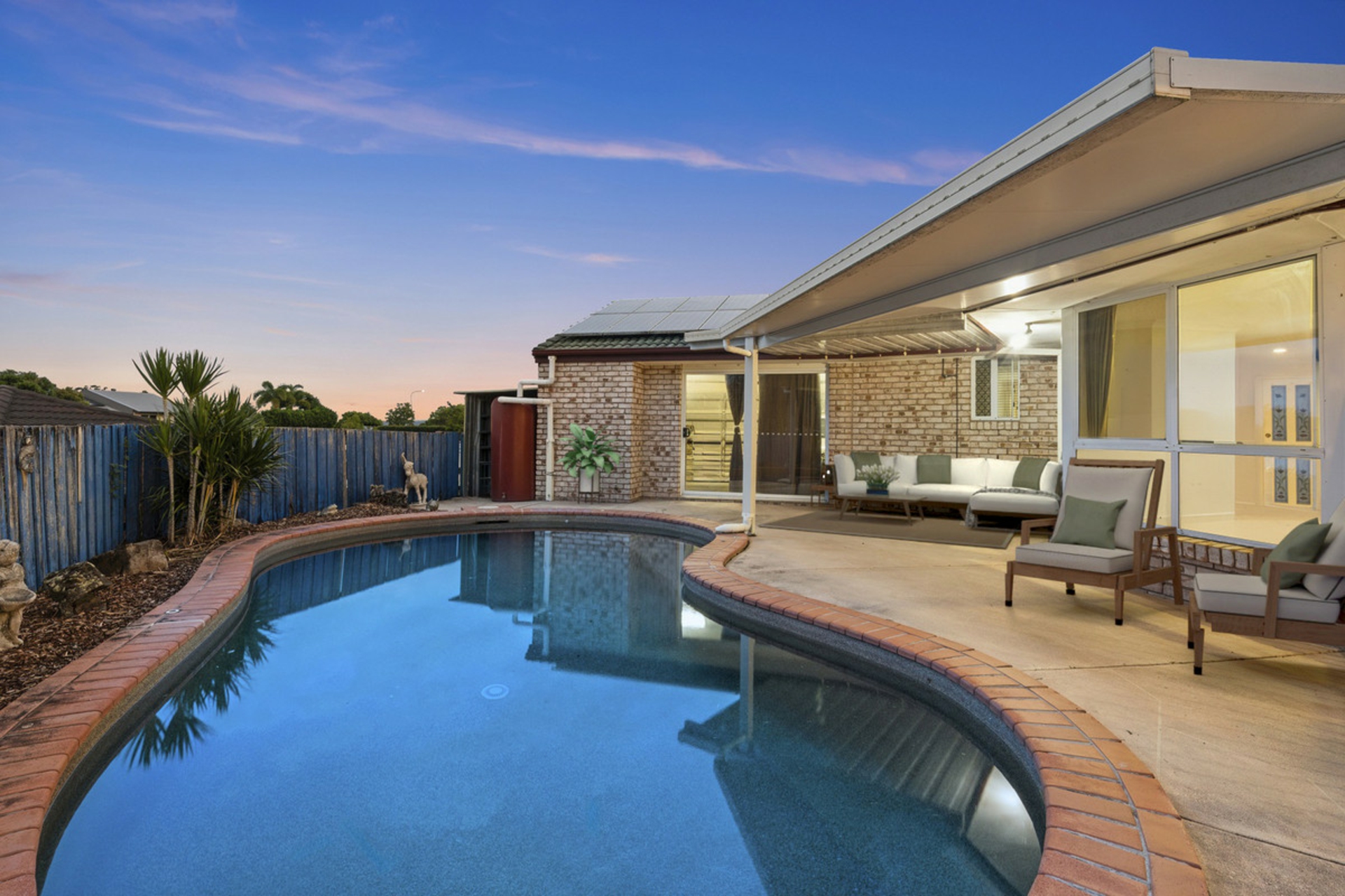 Set on a 600m� elevated block with panoramic views, the residence features four bedrooms, two bathrooms, two separate living areas, a double lock-up garage, and an inground pool. The entertainer-sized kitchen flows seamlessly to the living spaces, creating a home that is perfect to move into and enjoy straight away.
