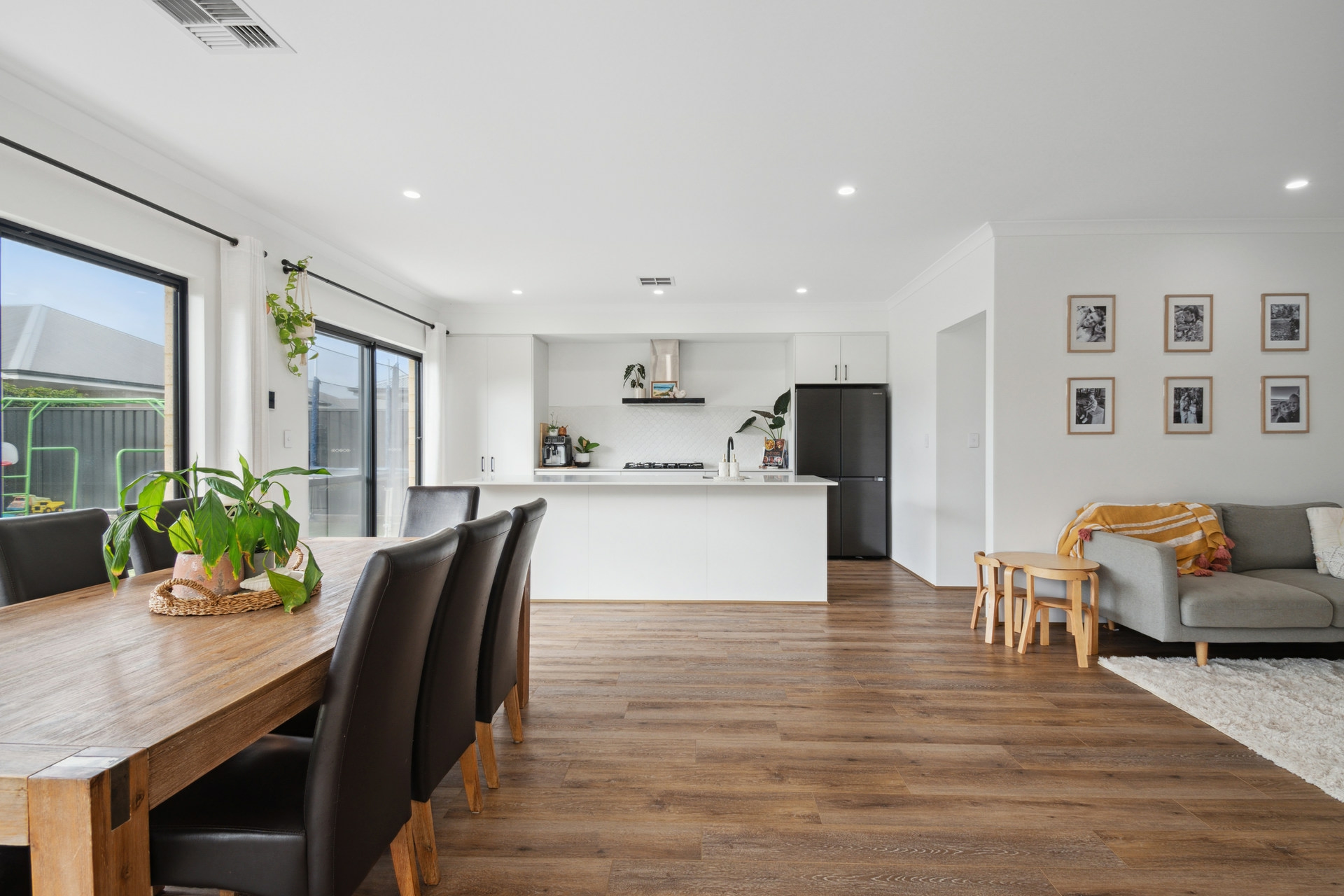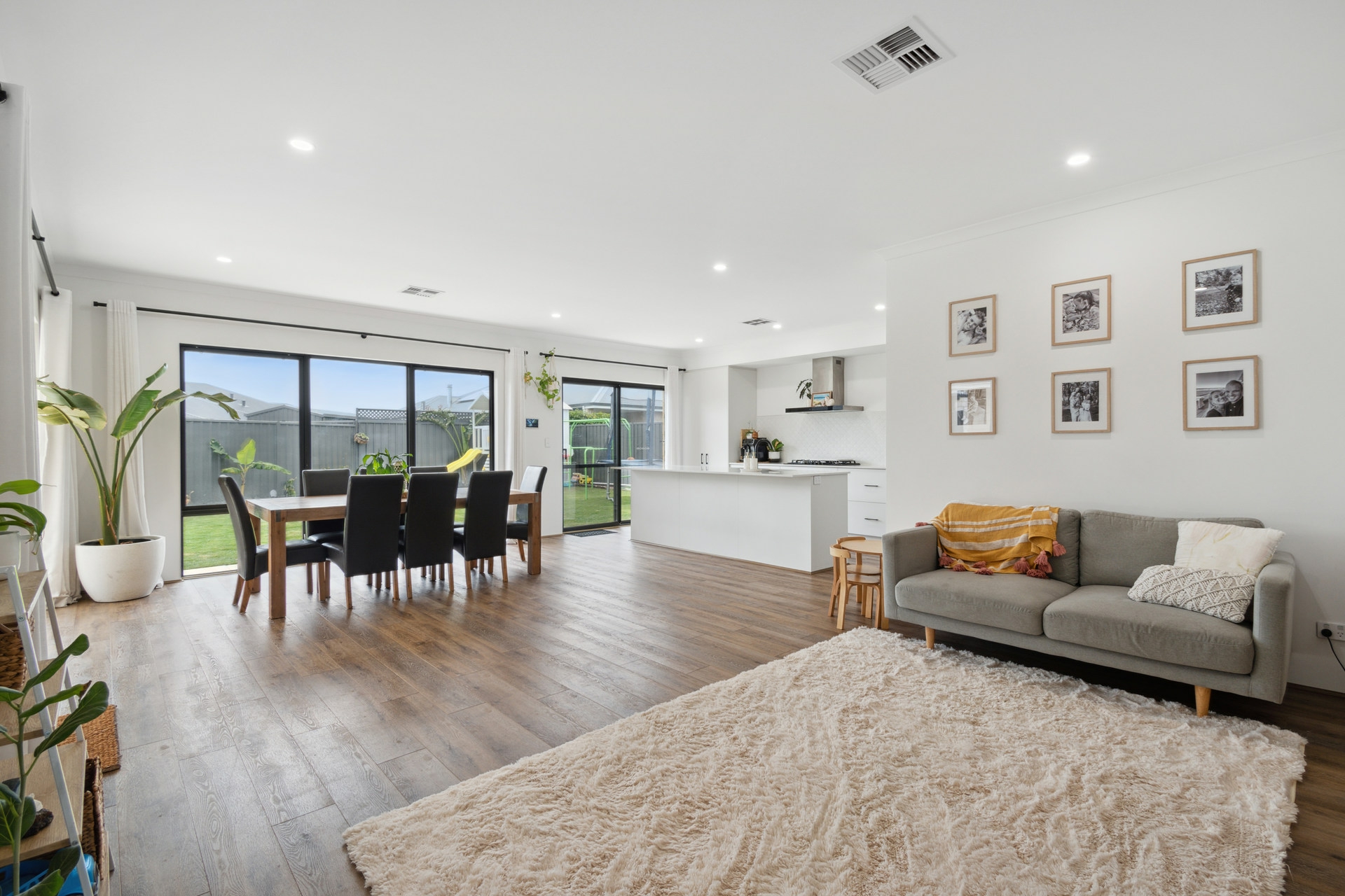 - Open plan living, kitchen and dining