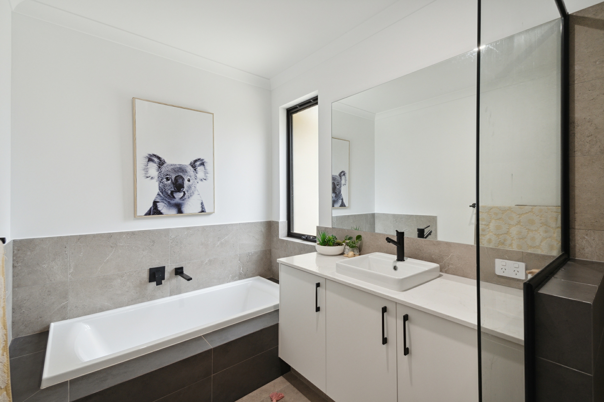 - Black fixtures throughout