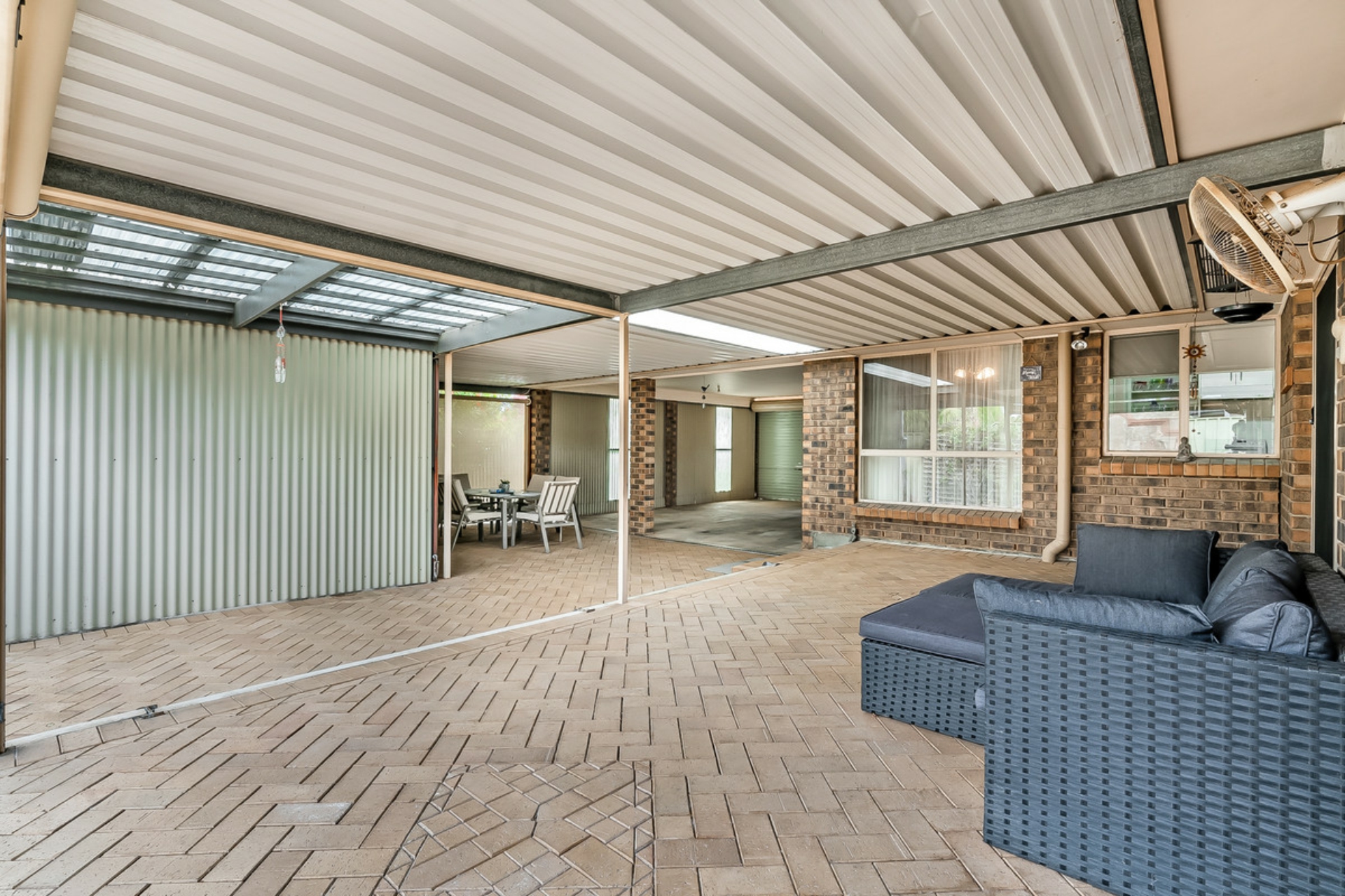 The outdoor area is a real treat that ensures that kids of all ages have plenty of space to play and entertain themselves while you enjoy a Sunday afternoon BBQ. Large easy care paved area with drive through carport for secure undercover parking.