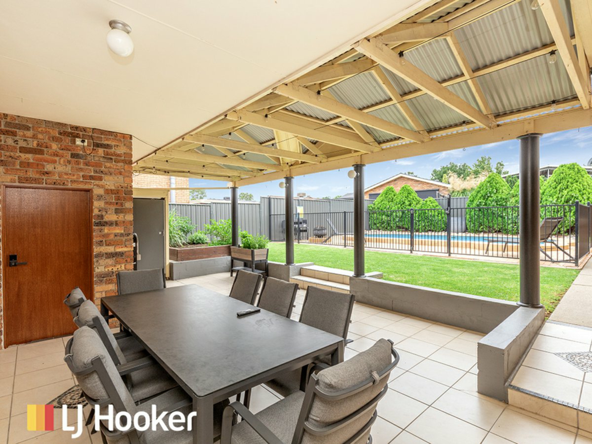 The practical floorplan flows seamlessly to a large undercover outdoor entertaining area — ideal for hosting family and friends — overlooking the sparkling inground pool, creating the ultimate backyard retreat.