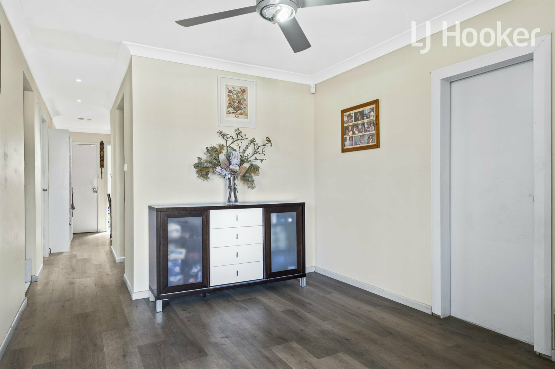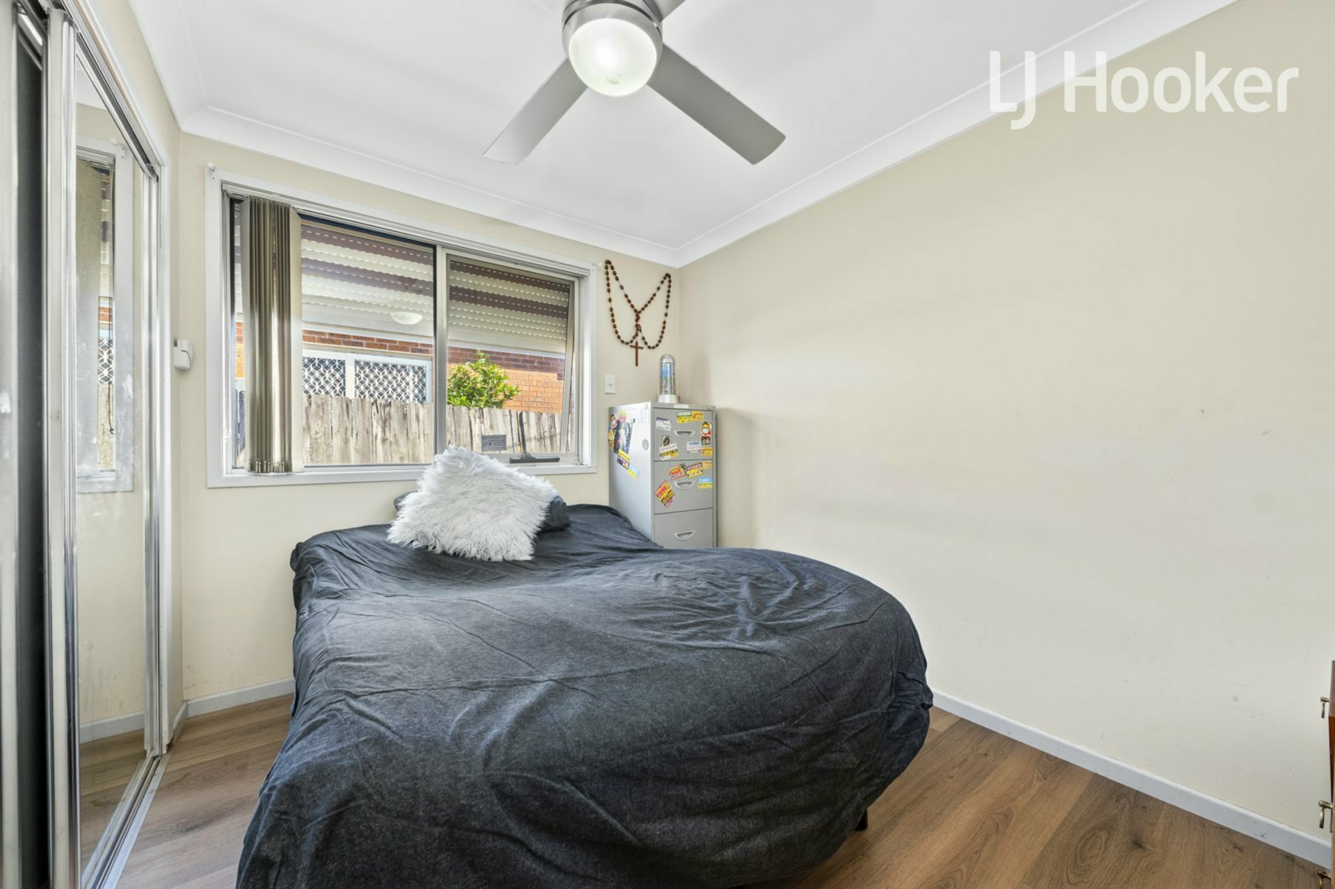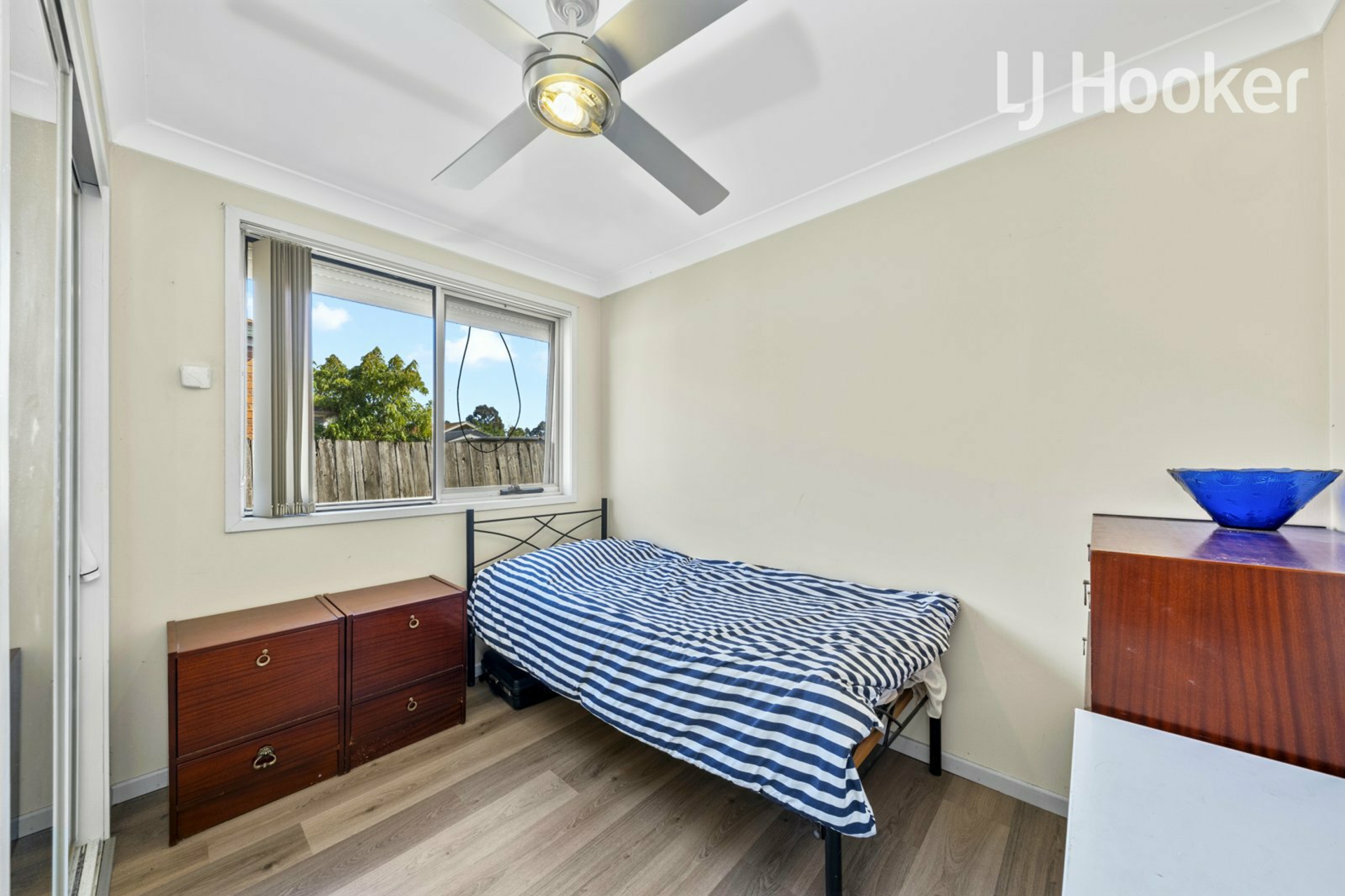 - 3 bedrooms all have mirrored built-ins and ceiling fans