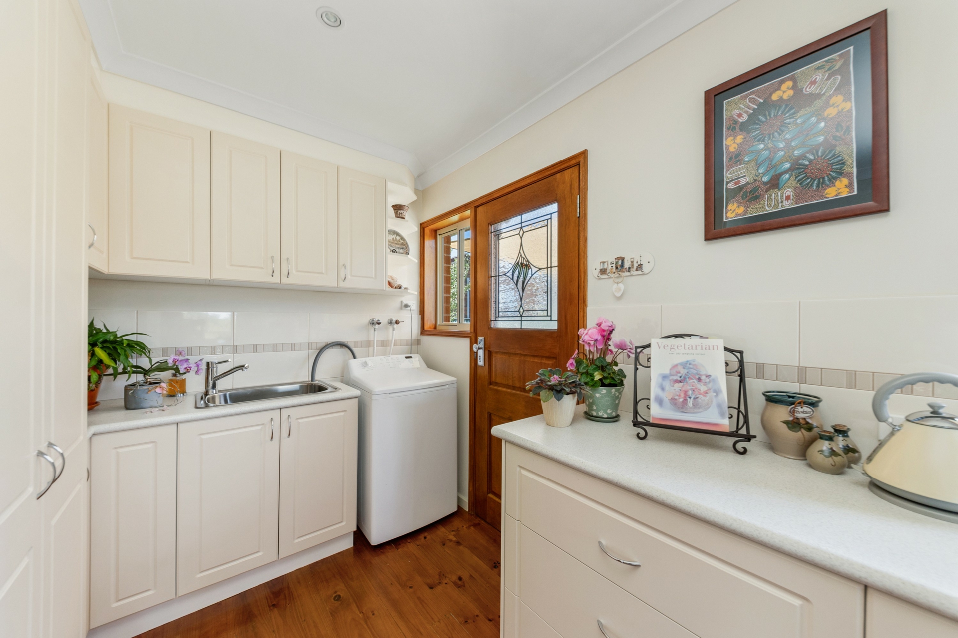 - Renovated laundry with ample storage and direct garden access
