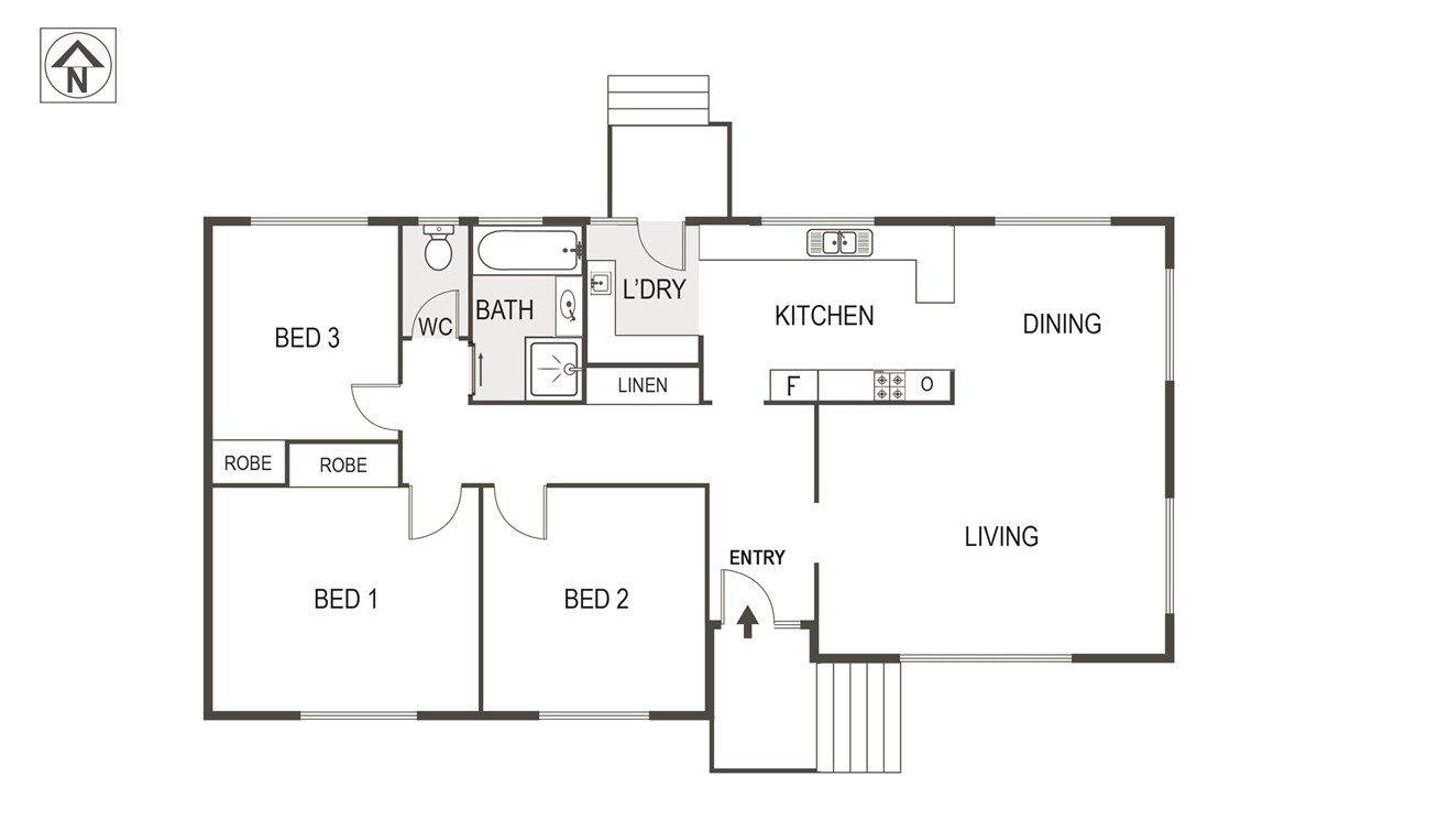 - Three bedrooms, two with built-in robes and leafy outlooks